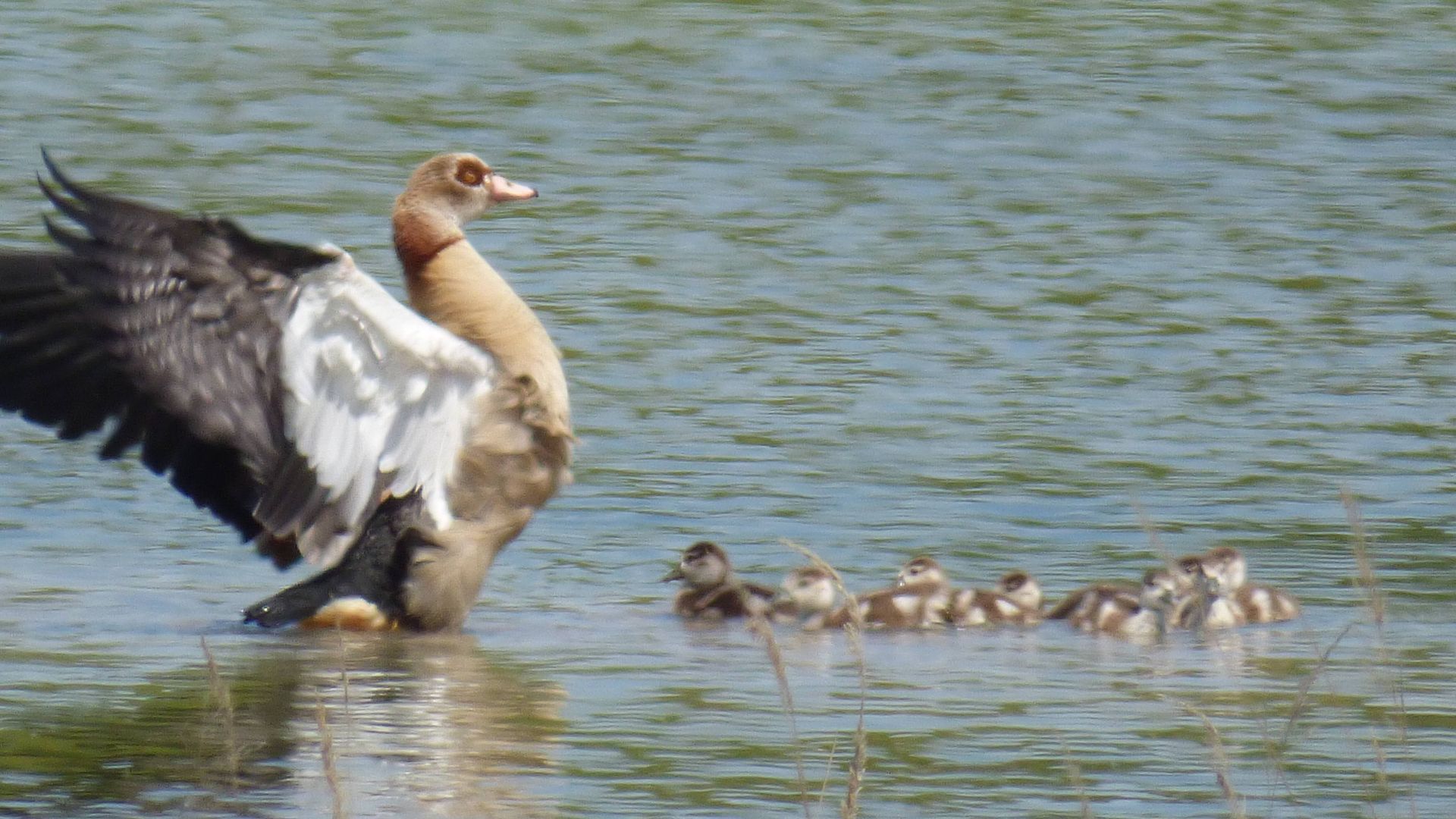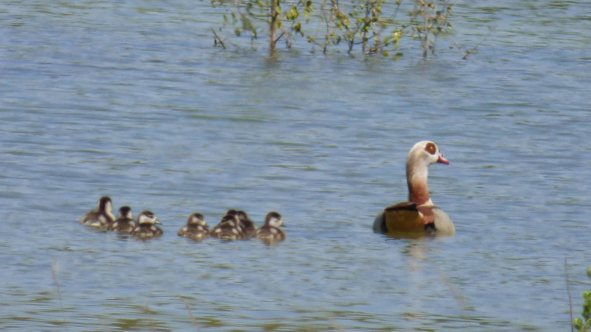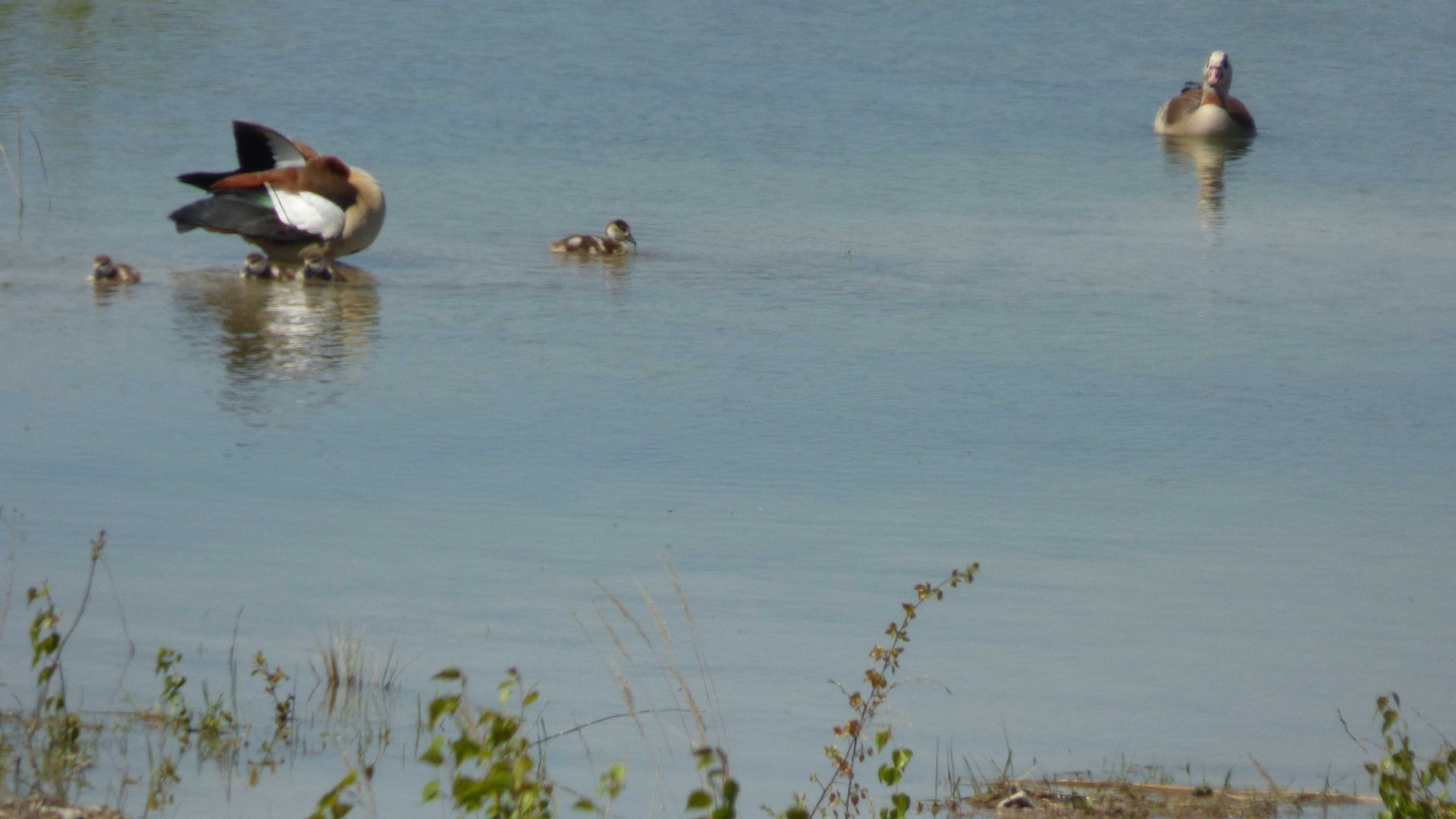 Sogar ein Seeadler wurde darauf aufmerksam und tauchte immer wieder auf den schwimmenden Schwarm der Nilgänse die schreiend abflogen.
