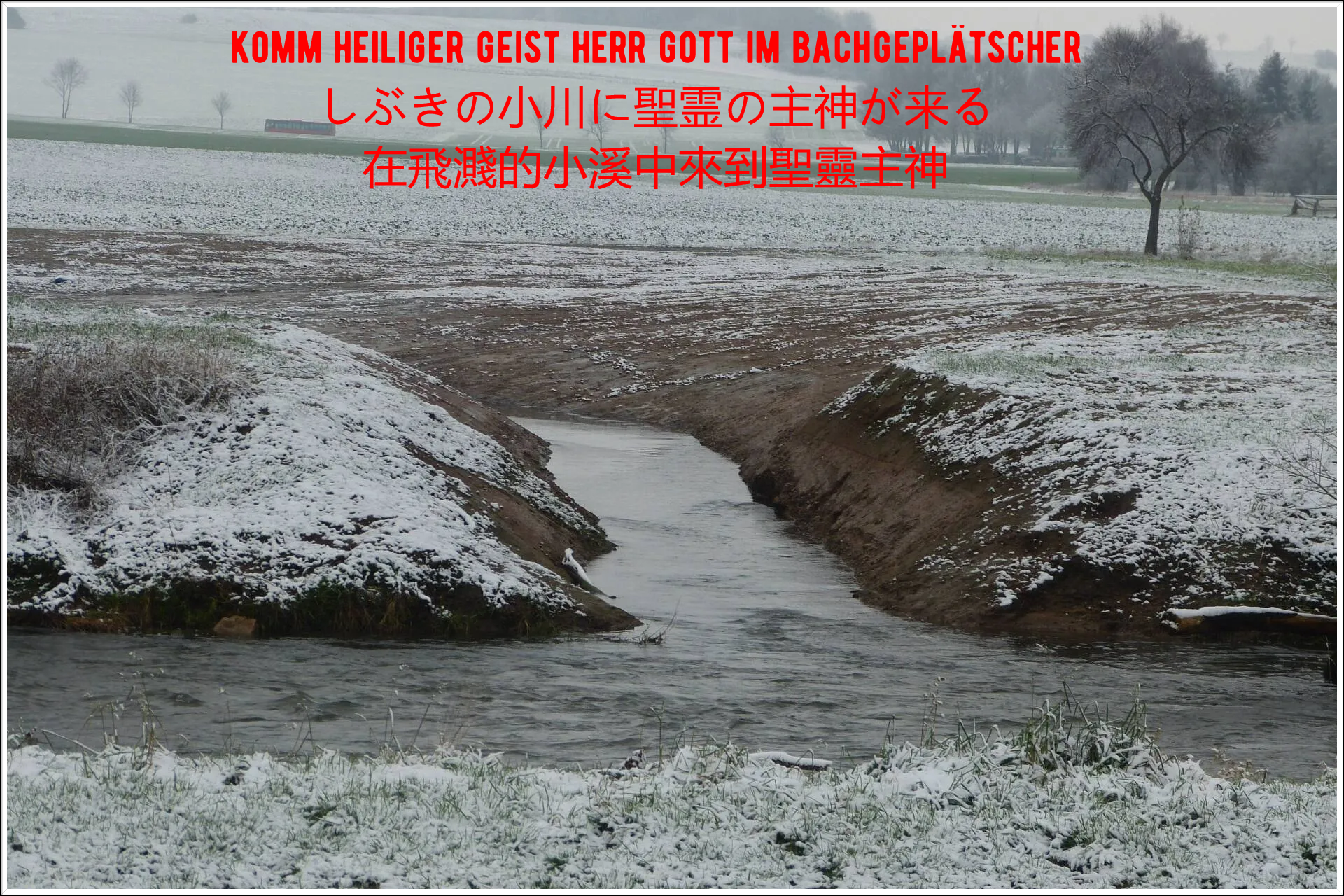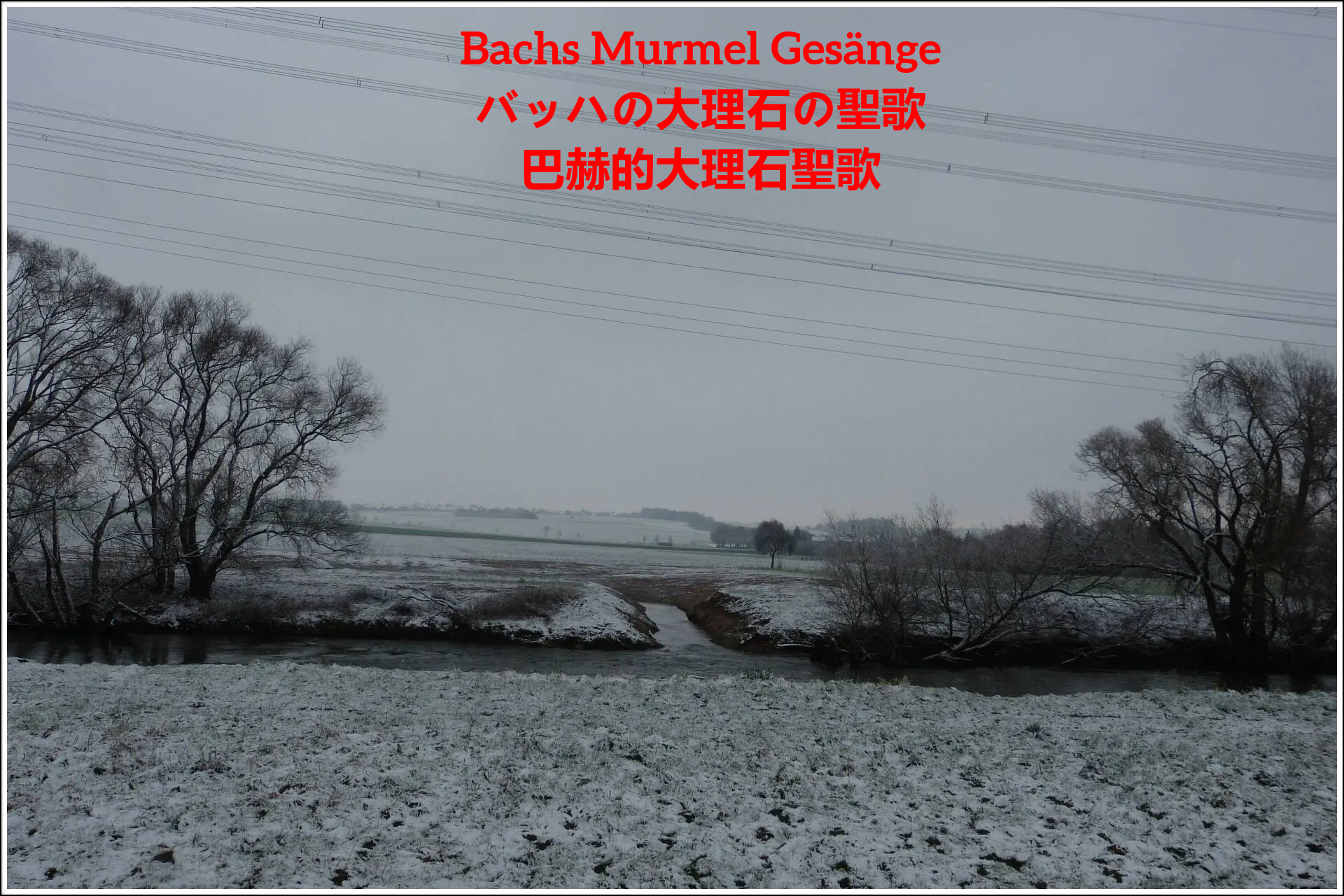 Und diese neuen Schwalm Ausweitungen diese neuen Bäche der Schwalm, die neue Inseln formten, sie murmelten alle den winterlichen Bach Gesang der Matthäus Passion am Bach mit Bach vom Bach.