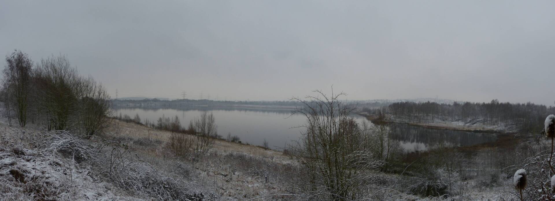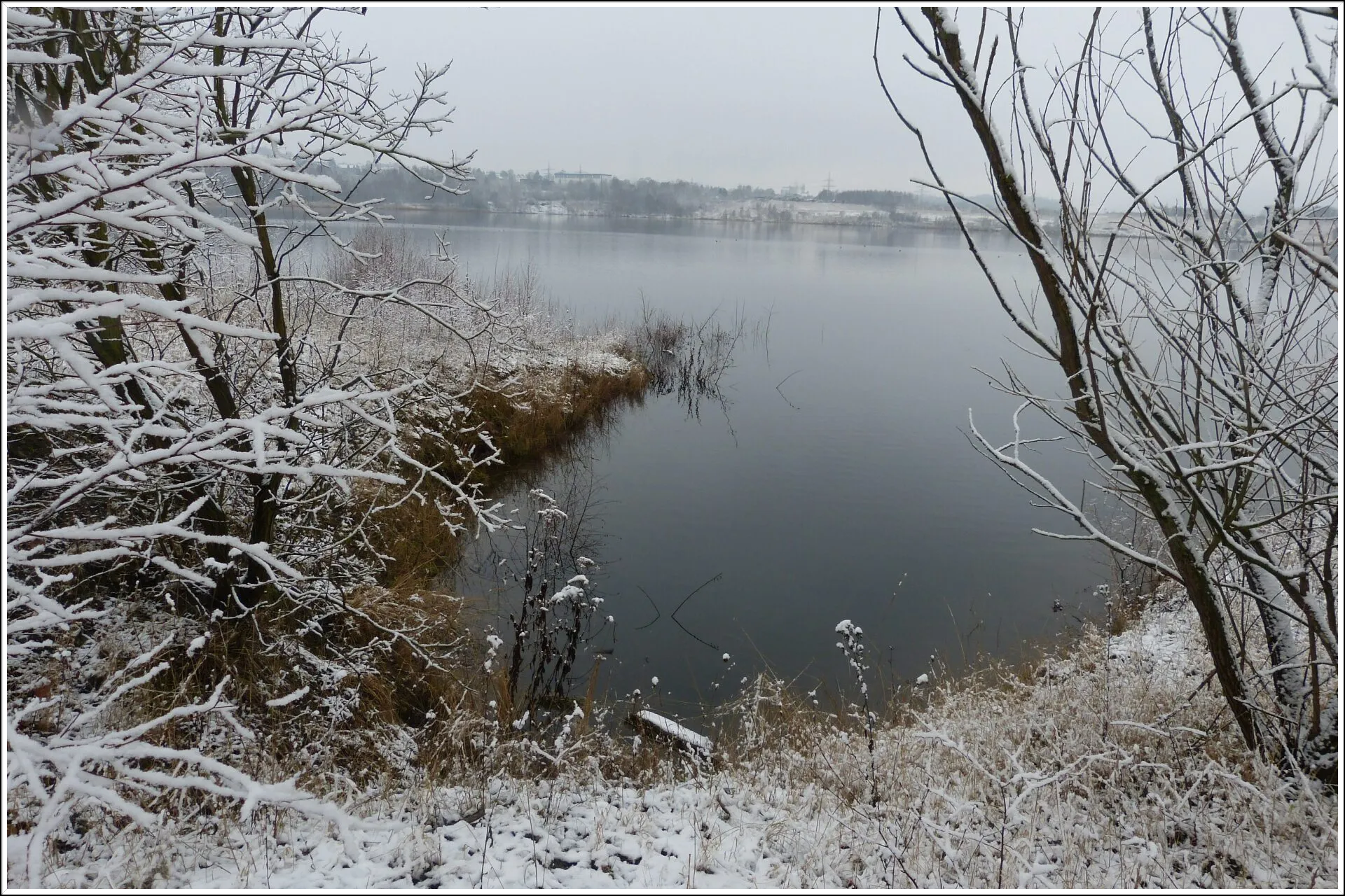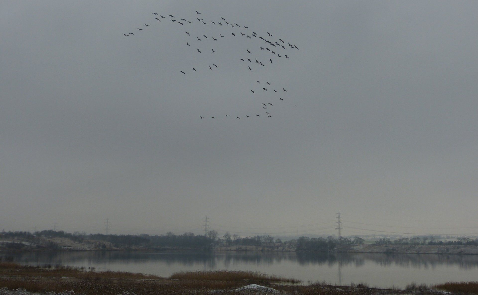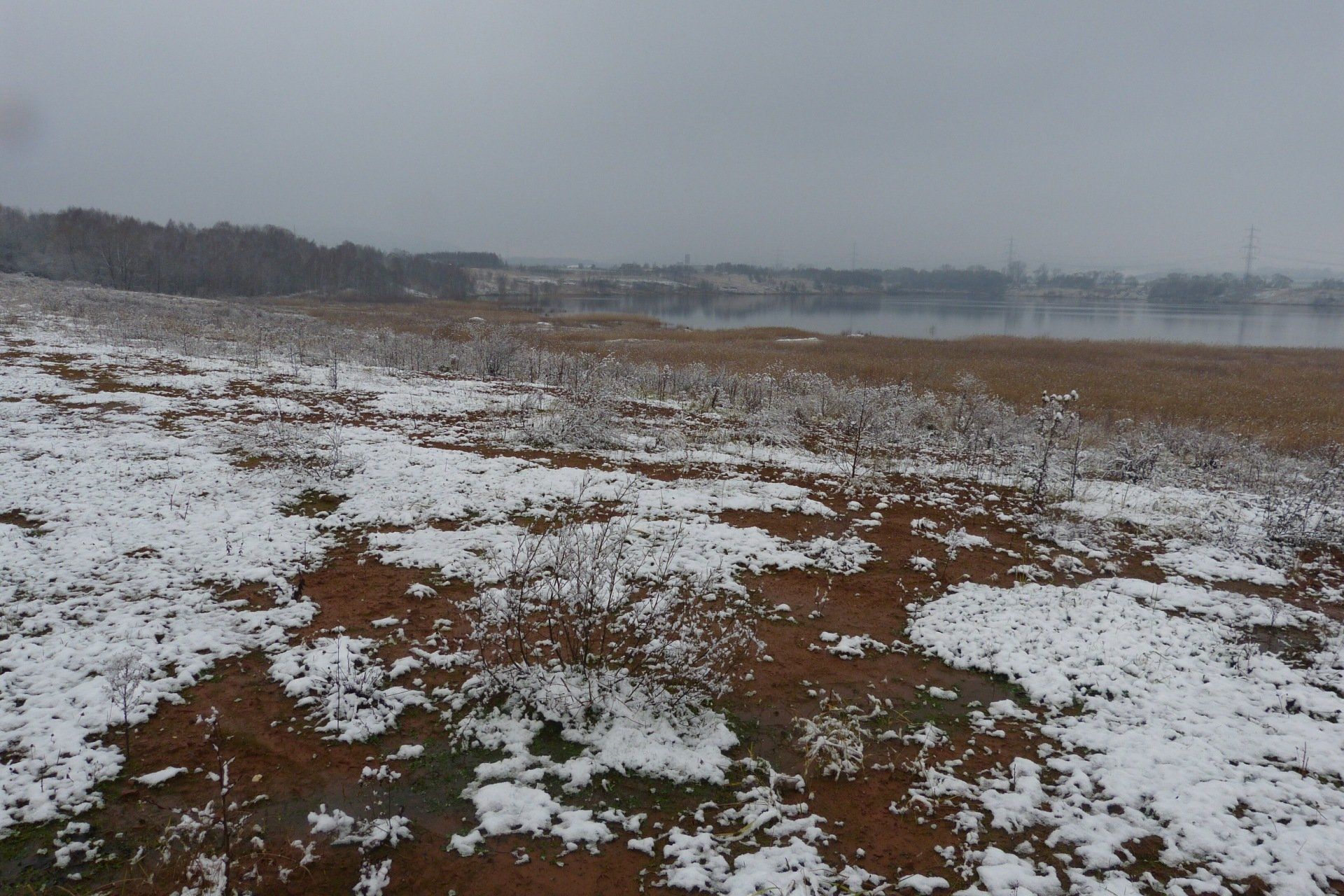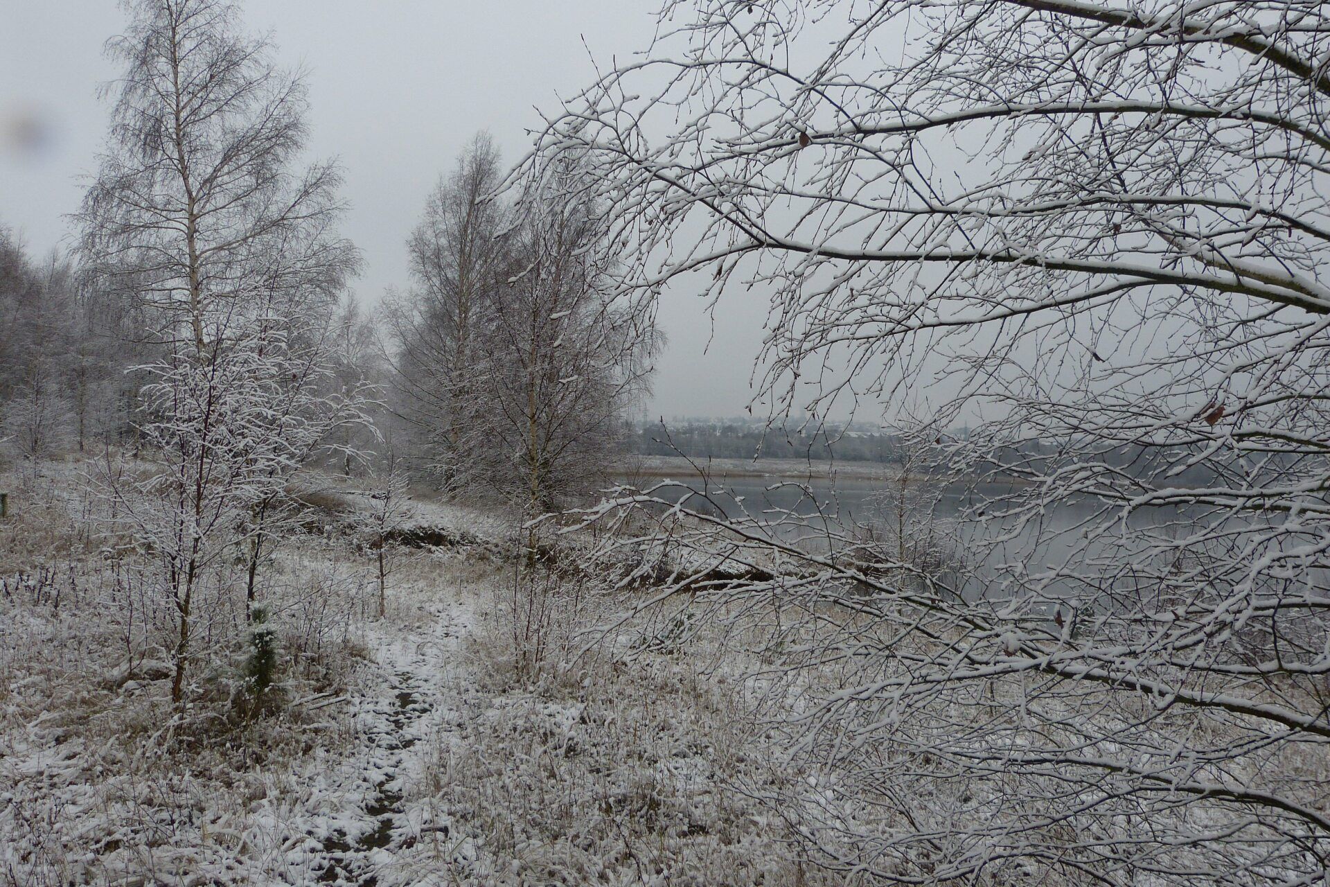 Und diesen Weg musste ich hinunter schlendern von der Ostufer Seite mit Blick auf das Westufer, um zum wachsenden Gombeth See zu kommen, um einen besseren Blick auf die Kraniche zu bekommen, die irgendwo dahinten, links, unten, am SüdUfer waren, und ihre Gesänge nun schon lauter schallten. Es hörte sich nach sehr vielen Kranichen an ein guter Chor für Bachs Nachweihnachtsoratorium.