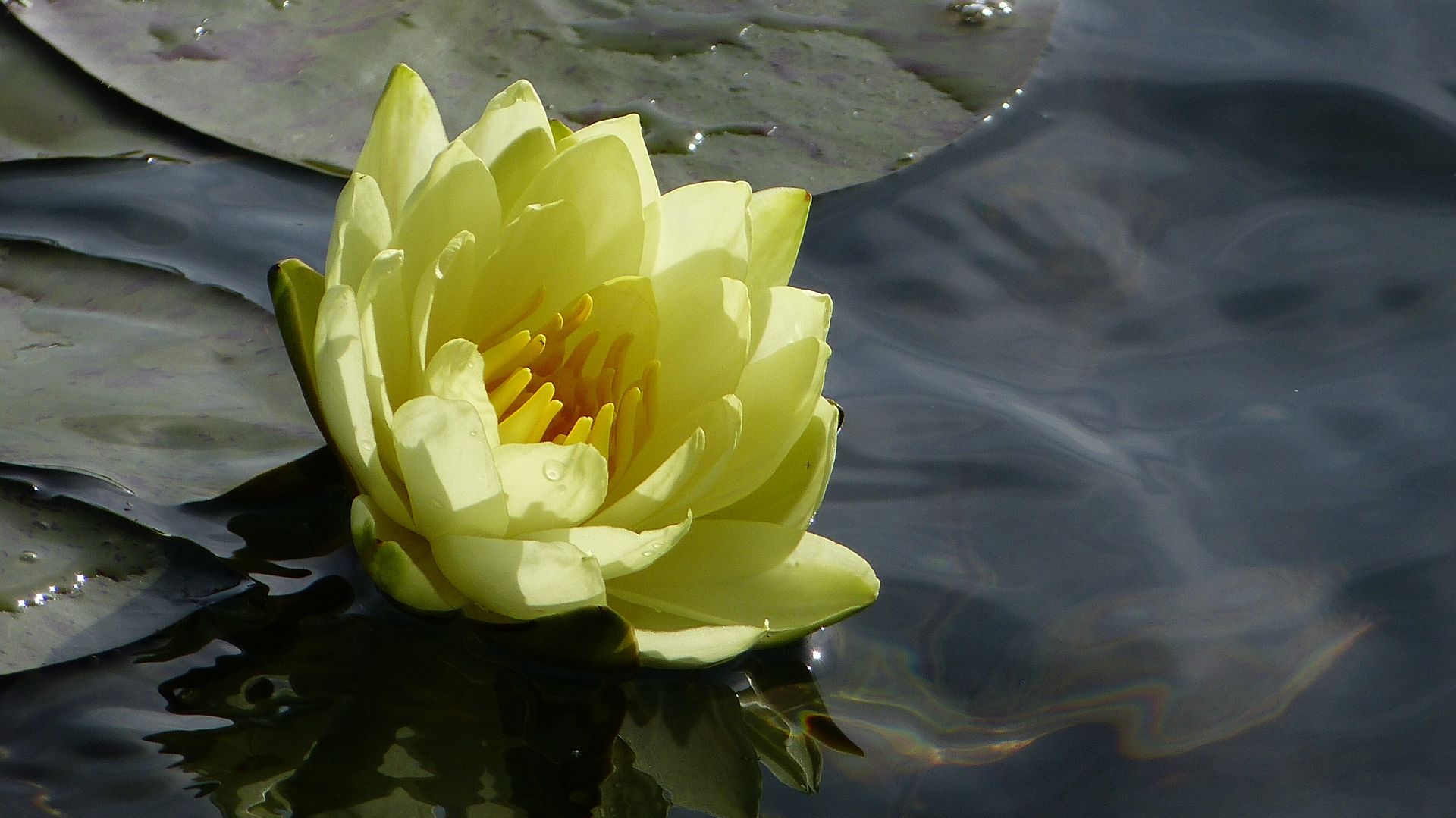 Diese Seerose, zwei Stück, die waren am Südufer gepflanzt. Es wurden Stöcke um die Pflanzen gesteckt, das half, zwei Monate, dann wurden auch diese beiden zerfleddert und abgerissen, aber auch wieder nicht die Blätter gefressen, bloß abgerissen. Es ist schwierig hier SeeRosen zu etablieren, die den See verschönern, bereichern würden.