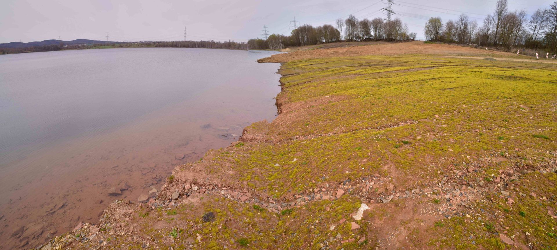 Hier ist nochmal Black Beach, diese Schlacke die dort abgelagert wurde, an der SüdSeite des Gewässers. Auf der die seltenen Heuschrecken mit orangenen oder hellblauen Flügeln lebten. Und heute ist mit dem vielen Wasser bloß noch ein kleines Stück dieses Black Beach Gesteins übrig und wird wohl in einigen Jahren nur noch ein kleiner schmaler Streifen am Südufer sein.