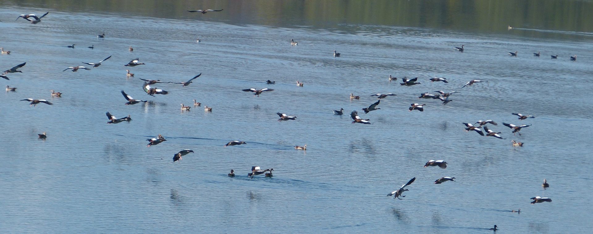Ostufer im September 2022 mit fliegenden Nilgänsen