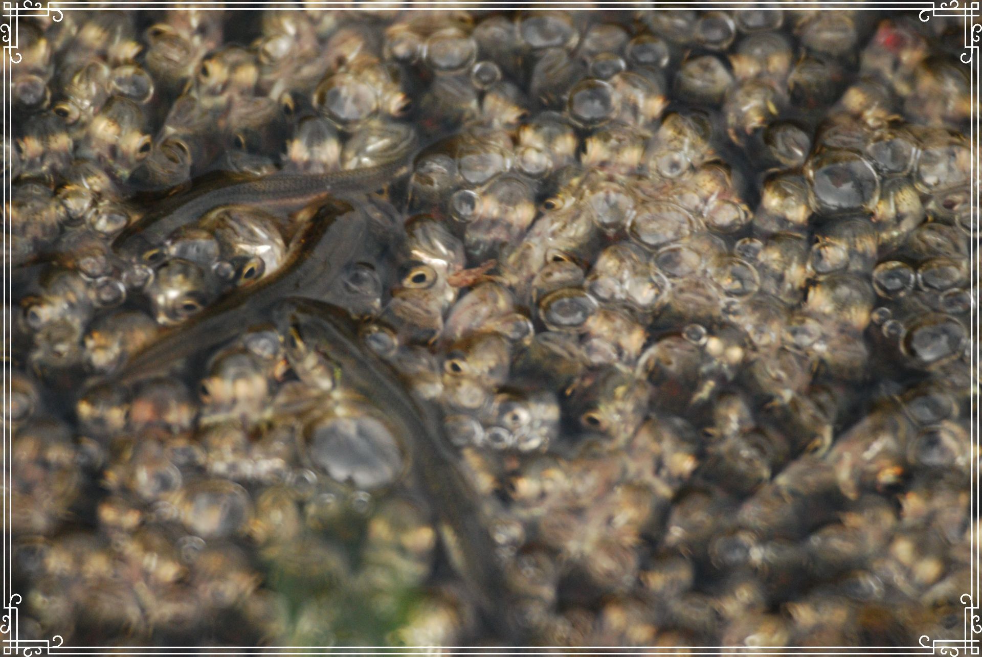 Ihr spirituelles zusammenkommen habe ich schon einmal an den Twinfalls am Churchill River auf meiner monatelangen Kanutour von Saskatchewan nach Nord Manitoba erlebt, wo ich fast im einem gigastrudelteig Strudel mit meinem 5,5 Meter langem Kanu reingezogen wurde. Und als ich dann das Gigaloch sah, dreimal so groß wie die Länge meines Kanus dachte ich auch-Showtime Wolfgang Showtime oder es ist zu Ende mit Showtime für Dich, und ich paddelte wie ein Wahnsinniger, damals da an den Twinfalls auf dem Churchill River und auch da waren Millionen Millionen Moderlieschen zusammengekommen zum spirituellen Treff.