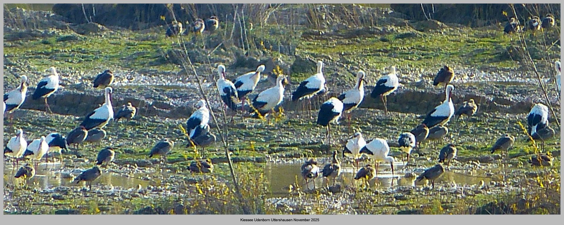 Unten im Foto die Störche an einem der naheliegenden Kiesseeen am 24 September fotografiert.