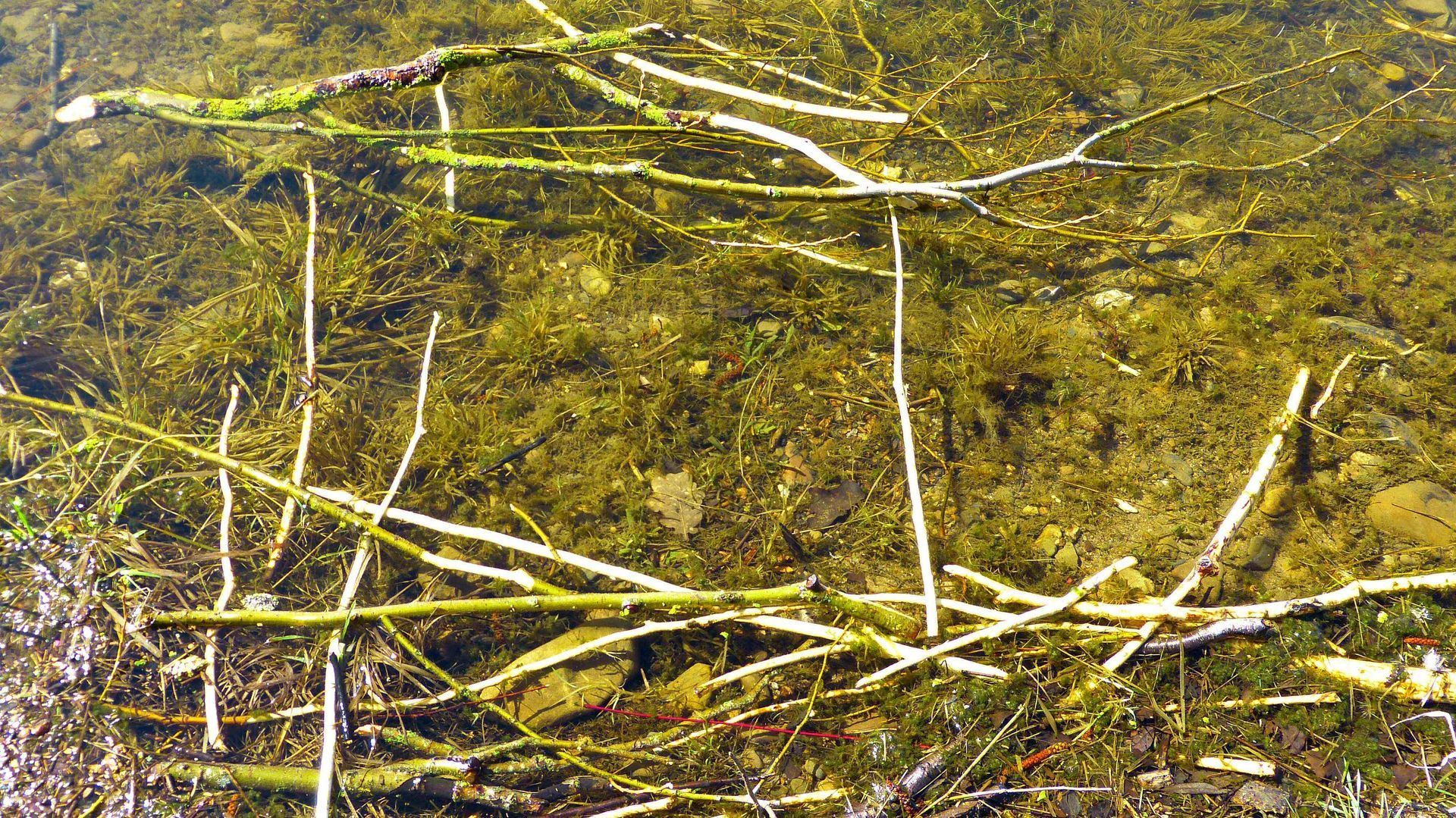 Es war der Biber der hier geknabbert hatte und den Weg nun verbauen wollte.