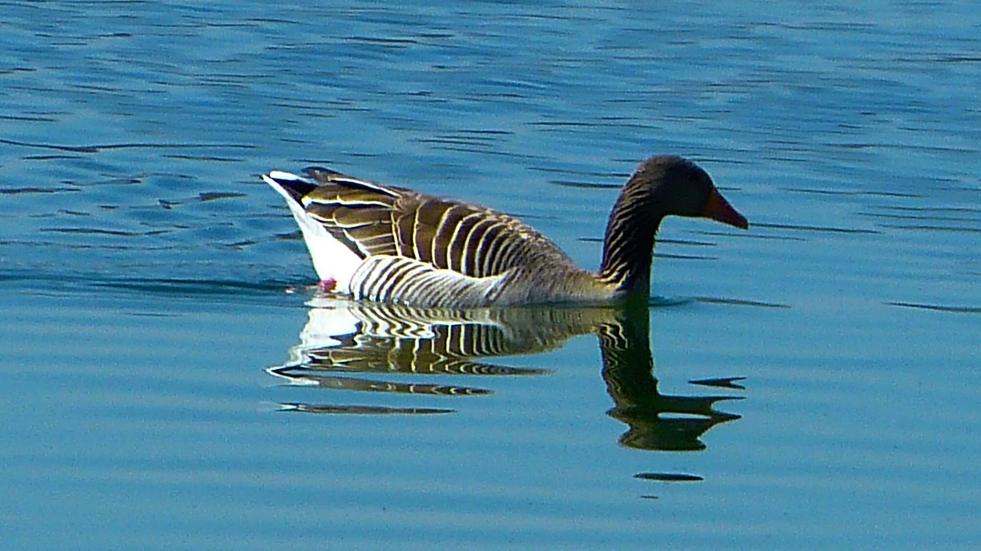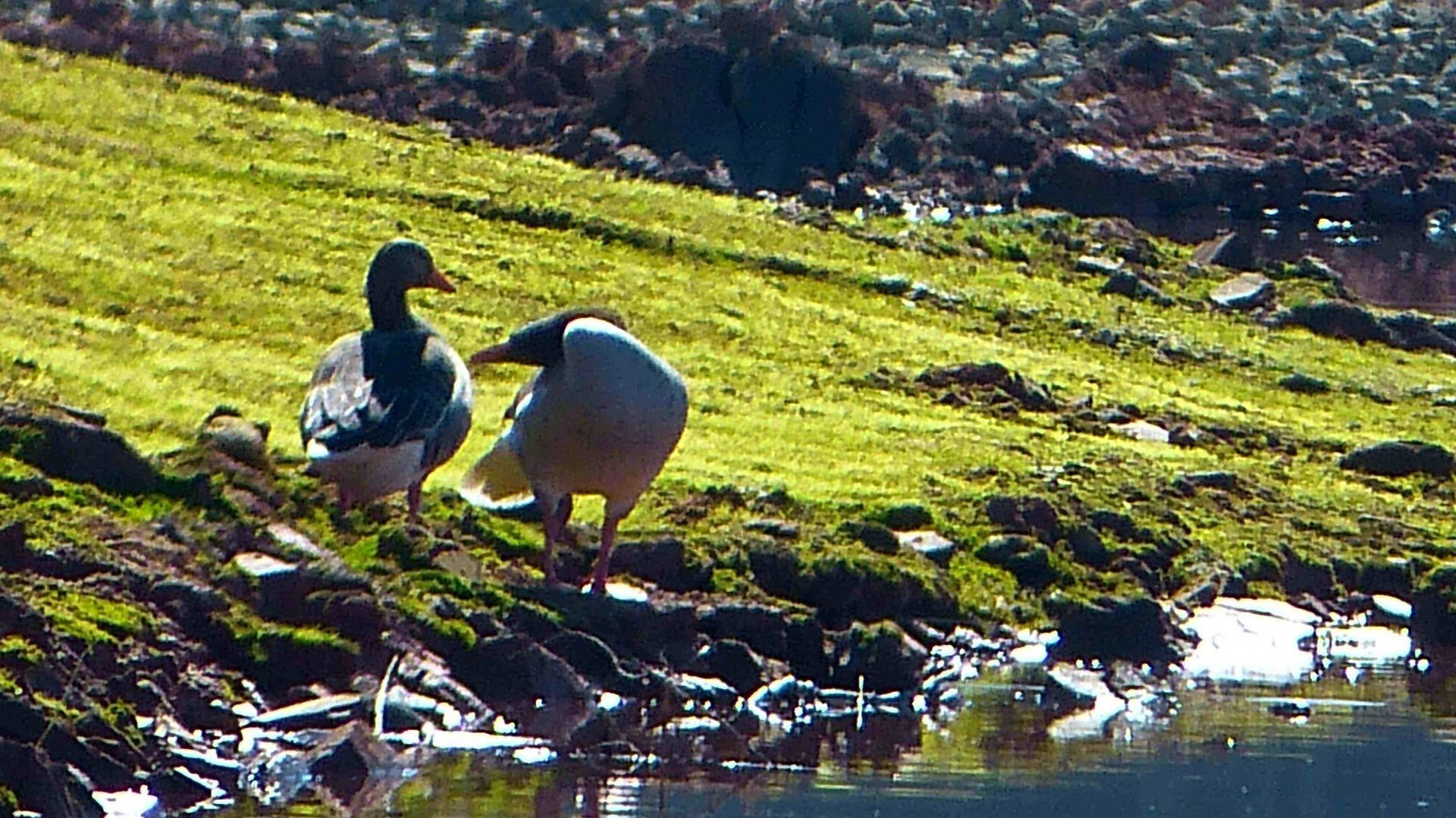 Aber auch Graugänse tüftelten da ruhig auf dem See herum.