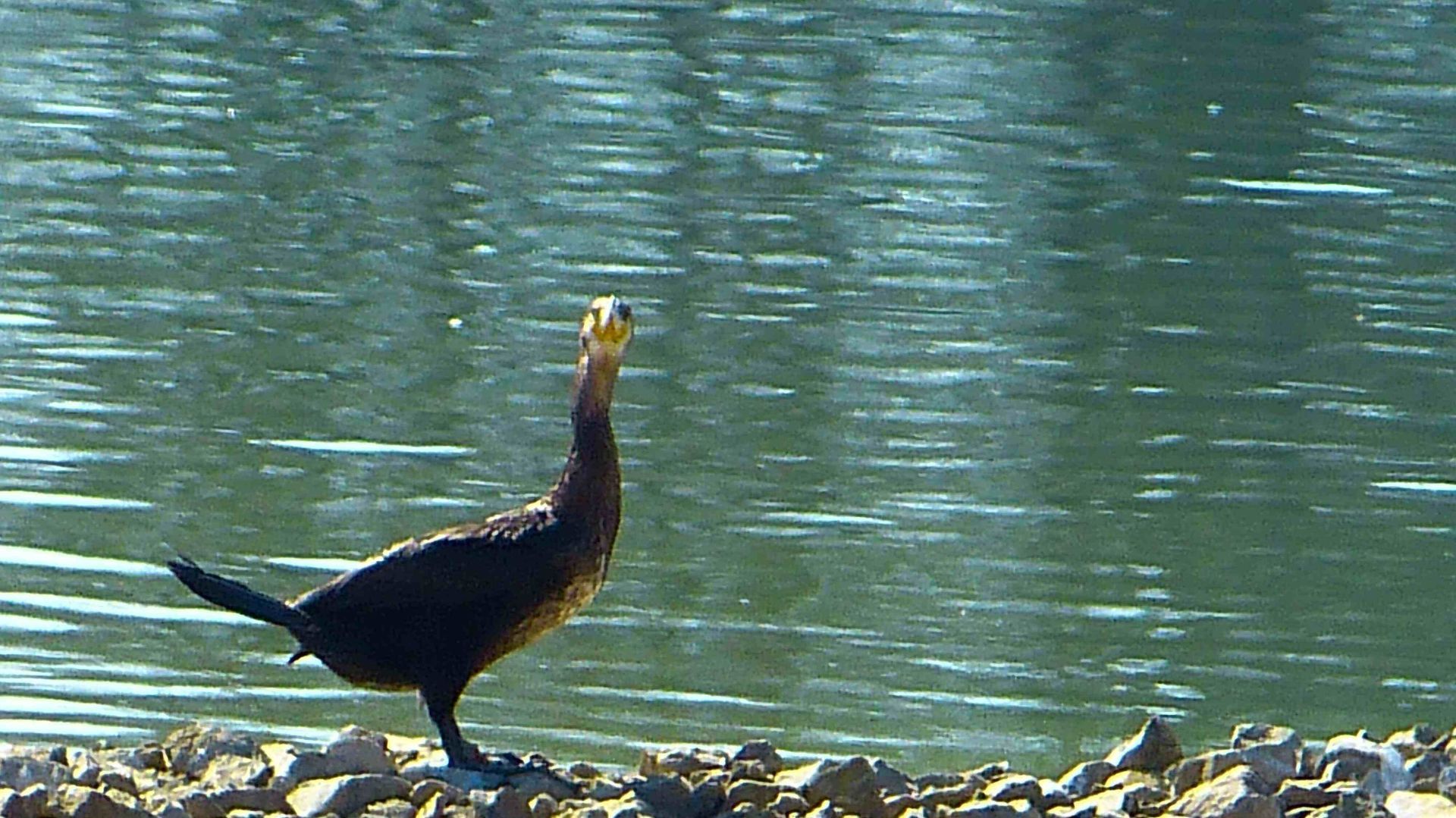 Inzwischen ist ja das glatte OstUfer für die immer größer werdende Gänse und Kormoran und Entengemeinde, wie Reiherenten oder Tafelenten und sehr selten Löffelenten, ein favorisierter Rastplatz. Es hat schon 4-6 hundert Gänse und Enten und Störche und Kormies dort am Ufer gegeben. Und die Gruppen wachsen jedes Jahr.