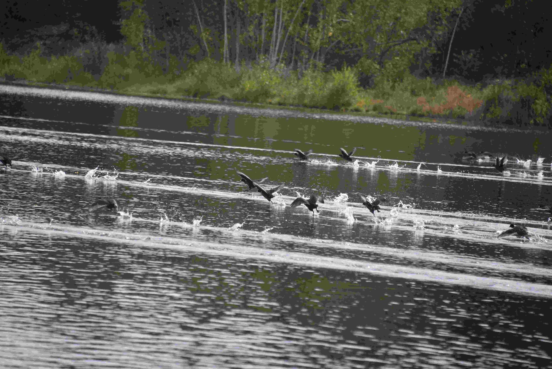 Das lieben diese neuen Mengen an Wasservögel an dem OstUfer das schön glattgewalzt wurde.