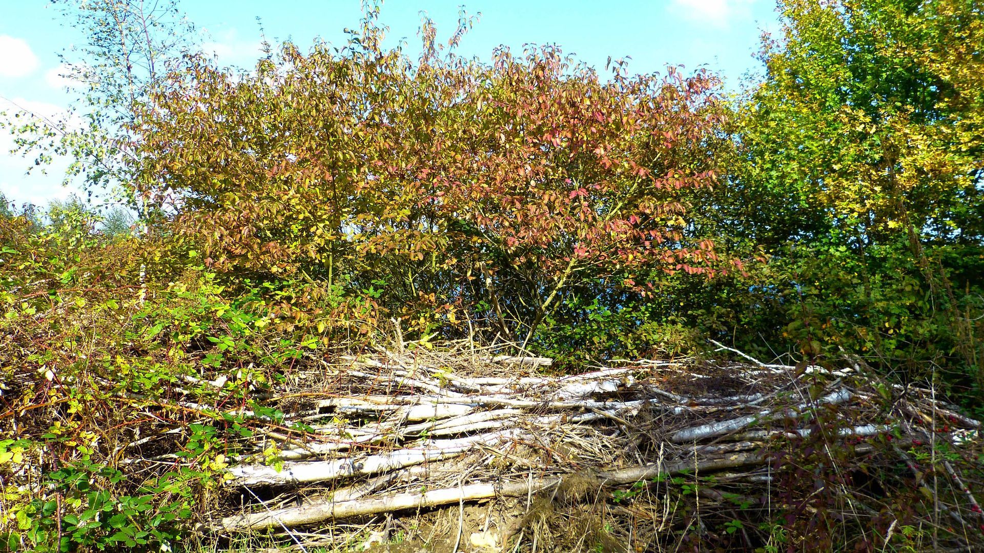Der Hartriegel der sich stark ausbreitet leuchtete in seine rötlichen Farben.