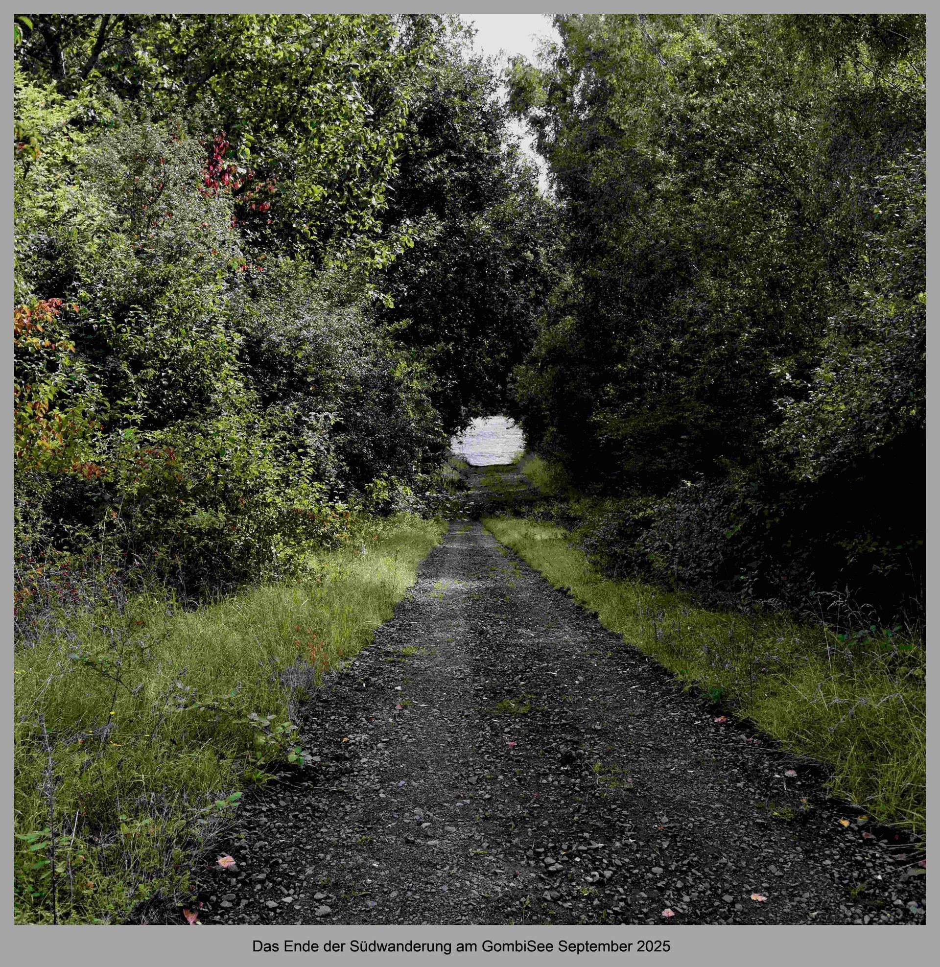 Und unten im Foto wieder das Ende der ehemaligen Rundwegalleeee Oleeeeee an der Südseite, des weiter wachsenden Gombethsees im April 2025
