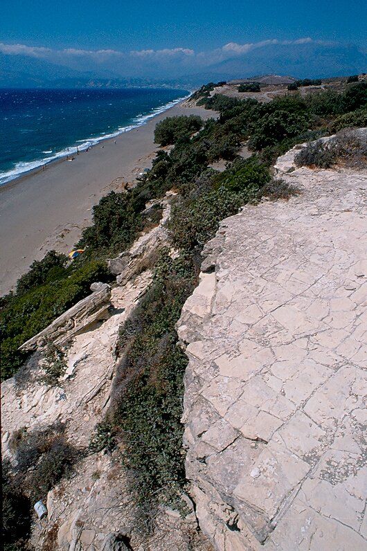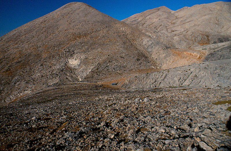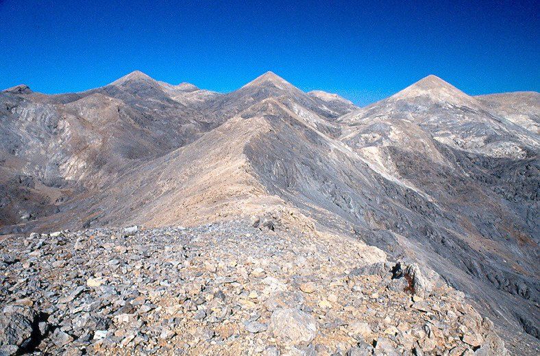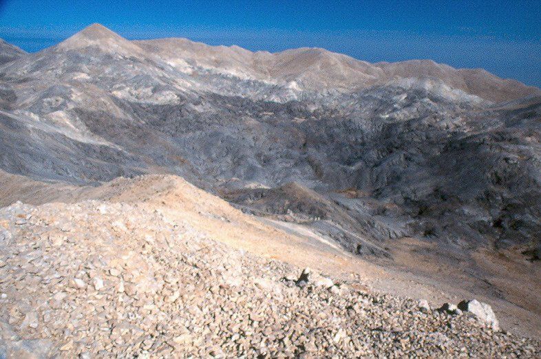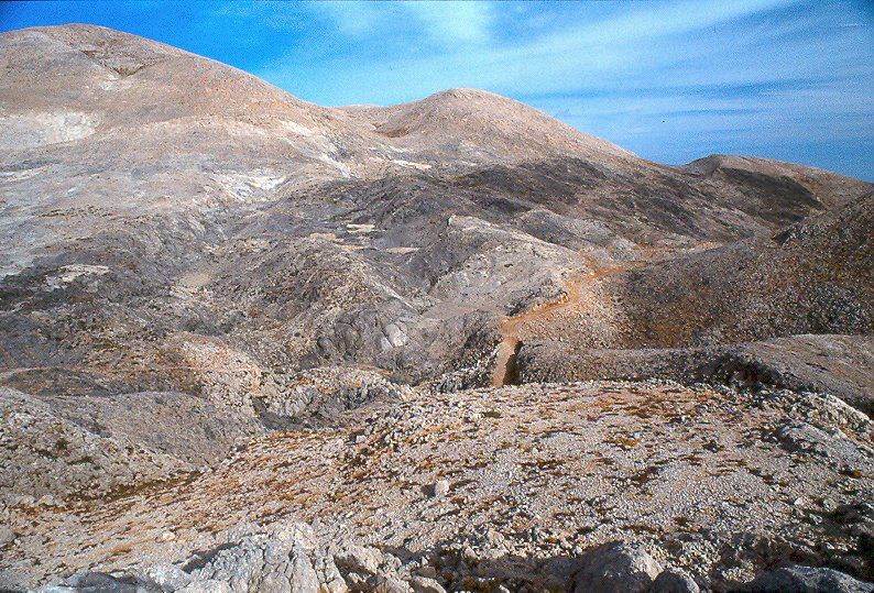 Es ist auch möglich, diese Tour ein wenig anspruchsvoller zu gestalten: Wenn wir am ersten Tag von Agios Ioannis starten, bringt uns ein Fahrzeug hoch zum Plateau von Kroussia, wo wir um den Fuß des Zaranokefala über der Schlucht von Eligias auf einem Muli-Pfad wandern, wo sich unglaubliche Ausblicke auf das Meer (1900 m unter uns!) bieten. Dann durchqueren wir eine mondähnliche Landschaft, bevor wir an der Südseite des Pachnes zu seinem Gipfel aufsteigen. Die ist eine etwas längere Tour, aber mit Sicherheit die schönste Wanderung, die die "Weissen Berge" zu bieten haben. (Ca. 8 Stunden Wanderung bis zu Schäfer-Hütte).