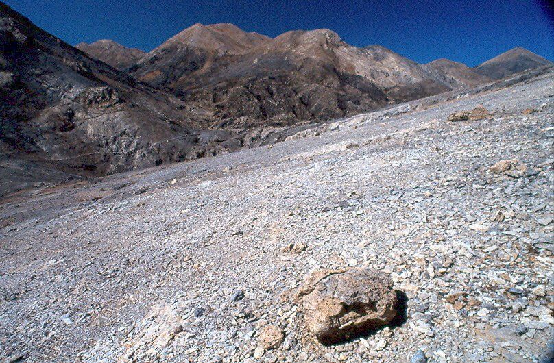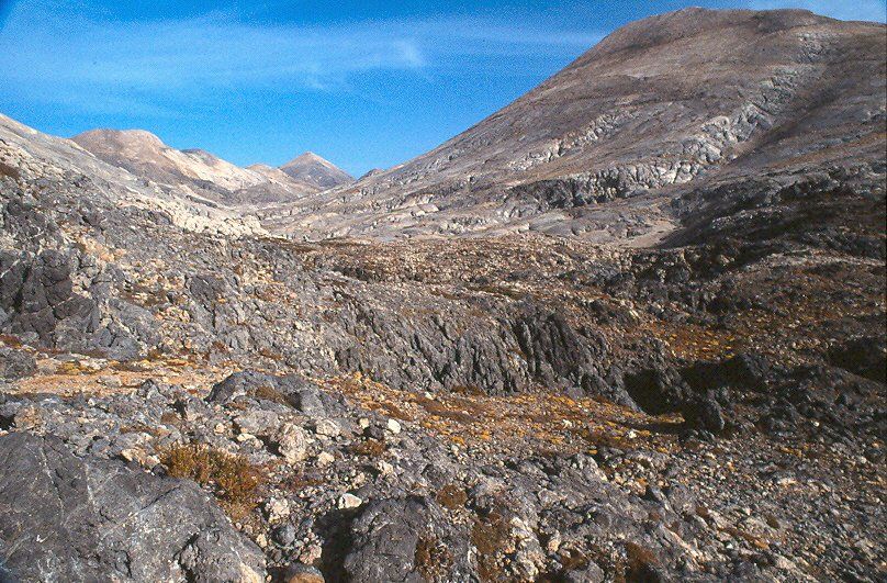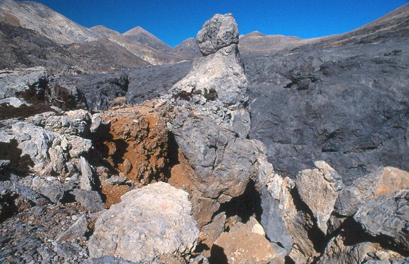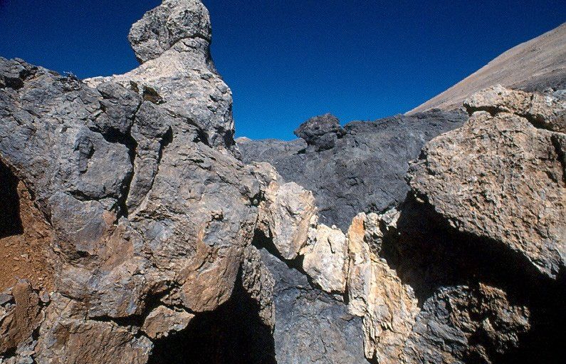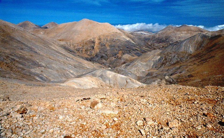 Ein verdammt heißer Platz im Sommer da zwischen den Feuerlöchern der erloschenen Vulkan Schlote ein wunderbarer Ort zum meditieren. So wie die alten tibetanischen Weisen und Heiligen da abgeschieden in den Gebirgshöhlen und Schluchten und meditierten yäääääääääää. prima wunderbare Tage Wochen Monate da auf Kreta. im Sommer 1992. Gänse Geier zischen Bartgeier segeln und rauben keine kleinen Kinder mehr weil sie bloß Knochen schlucken. Und der kleine Zaunkönig huscht tatsächlich hier oben zwischen den Kleinstbüschchen herum und schaut schräg den Kopf angelegt wenn ich vorbei kam und er unter dem winzigsten Gestrüpp hockte.