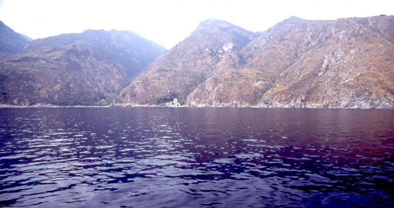 Kurz bevor ich die Schiffsfahrt entlang der Mönchs Kolonie machte hatte ich das Auto am Wegrand abgestellt und wanderte den mit Büschen bewachsenen Hang hoch um etwas von der Gegend ruhig anzusehen und etwas zu entspannen. Ich saß da inmitten der Büsche die stark dufteten und hörte dann einige Schafe die durch das Dickicht gingen und ihre Hufe hatten diesen weichen Sound der ihre Hornfußsohlen auf den Felsen machte .Ein sehr ruhiges schönes Tongemälde. Ich hörte genau hin und nahm ihre Stille Ruhe und Entspanntheit auf. Dieses hohle sanfte Geklapper ihrer weichen vorsichtigen Fußtritte auf dem warmen Felsen. Ein sehr meditatives Ton Gefälle beruhigend wie sie waren diese Gruppe Felsen und Buschwanderer. Und dann kam eine Gruppe Motorradfahrer angedonnert. Ja es kam die Irrenanstalt auf zwei Rädern und der Fahrer das war der Irrenanstaltswärter. Grauenhaft grauenhaft grauenhaft. Die merken aber auch garnichts die sind roh so verstunken so schwerhörig und Jesus würde wohl zu ihnen sagen: