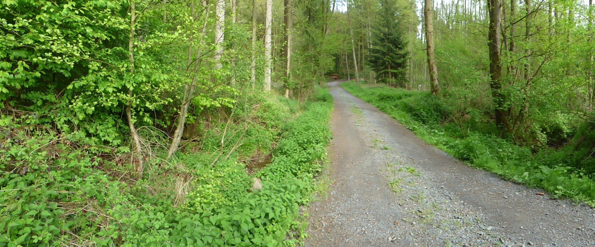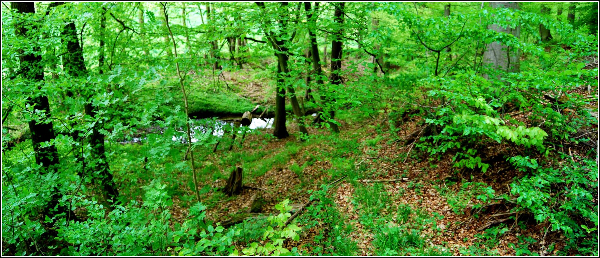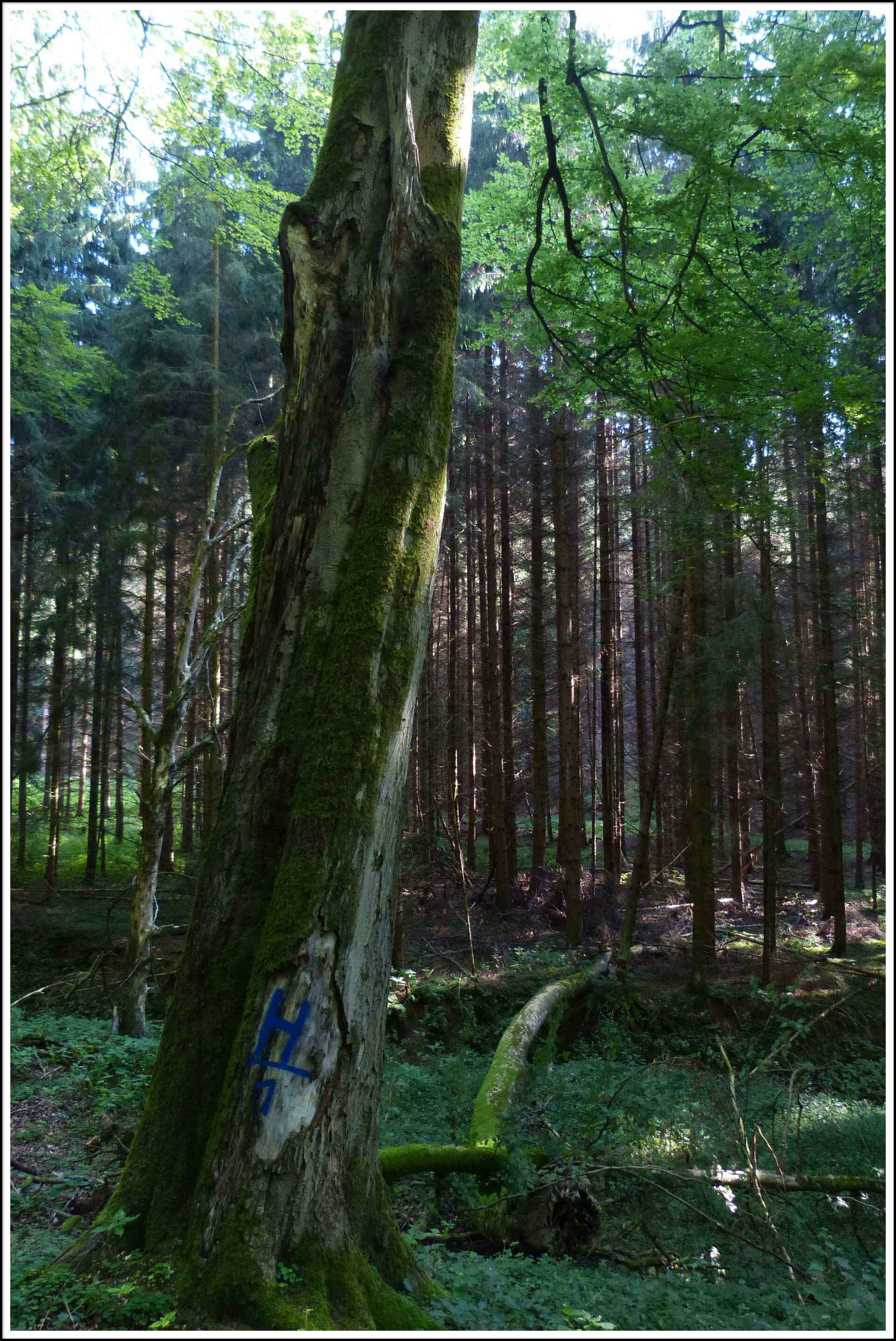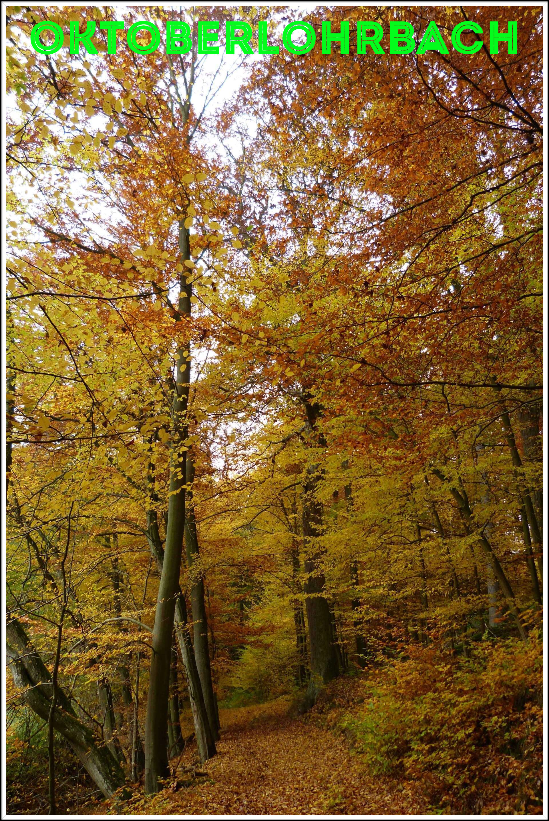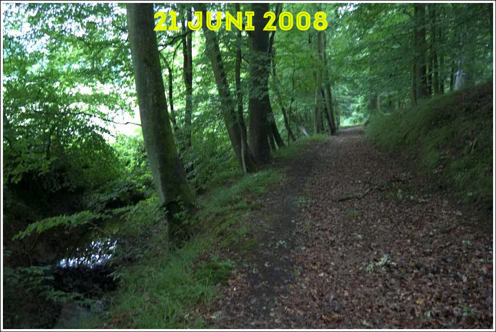 Oben im Foto eine Zusammenfügung von zwei Fotos unten dann die echte unverfälschte Umgebung.Damals war der Waldweg noch unbewachsen.Heute 2021 ist sehr viel zugewachsen mit jungen Buchen und einige schwere Fichten sind zerschmettert worden und liegen quer über diesen ehemaligen guten Waldweg entlang des Lohrbachs.Hier geht praktisch der berühmte "Niemand" entlang außer ich selber.