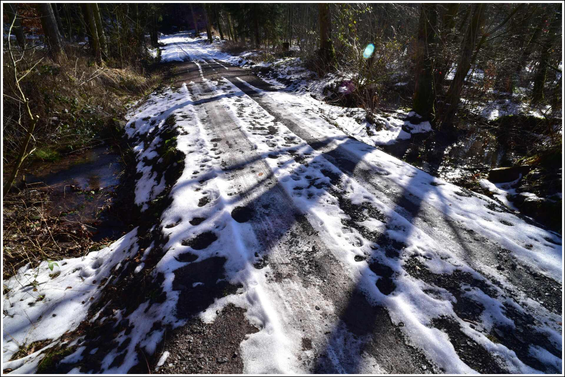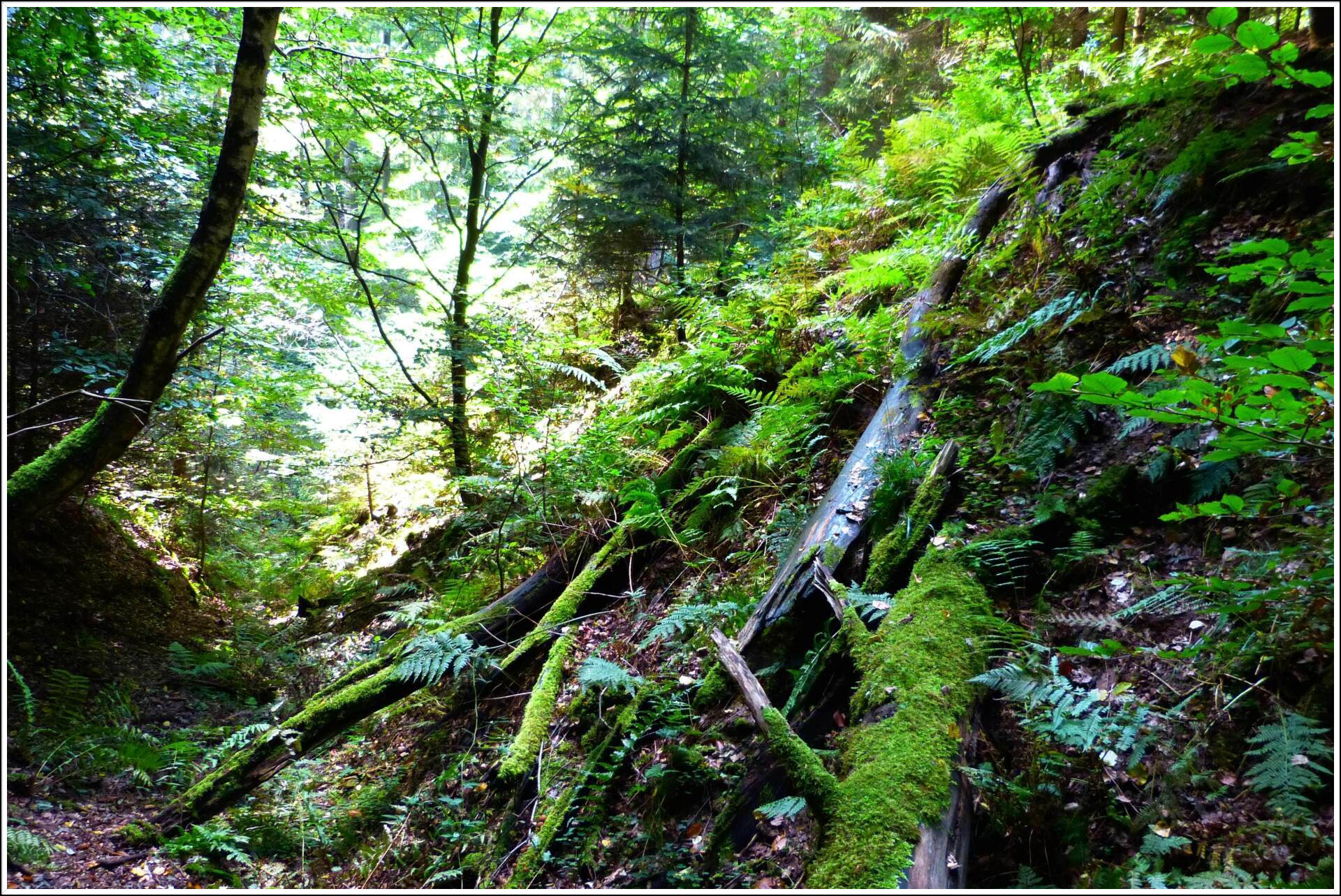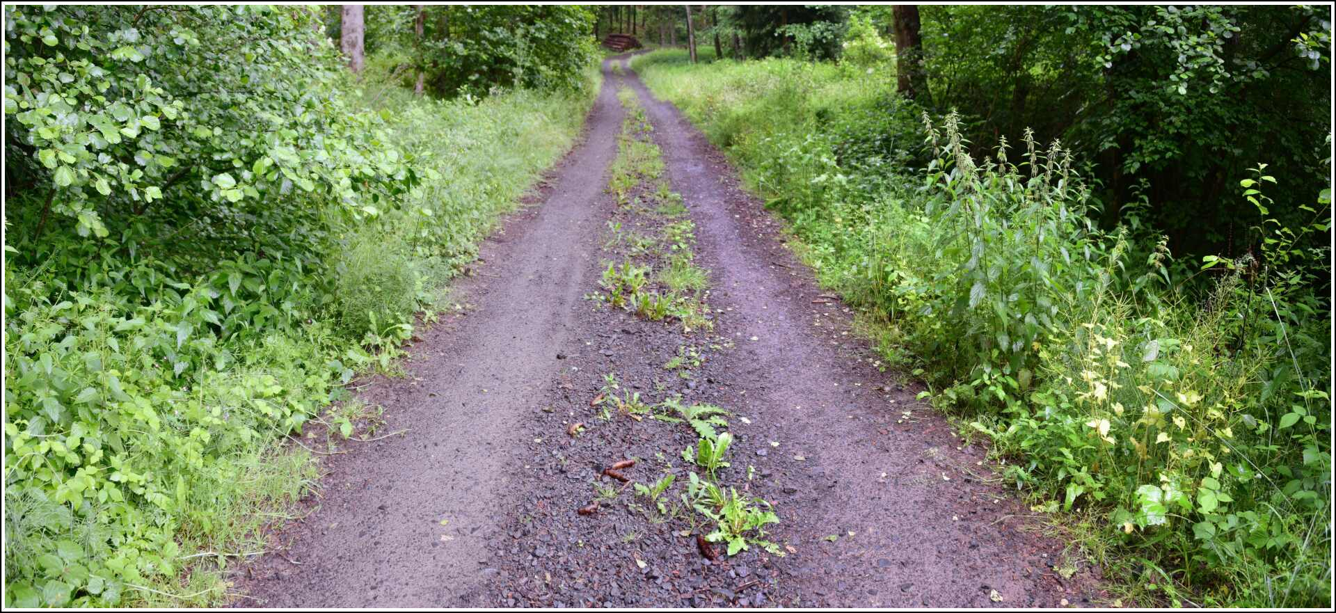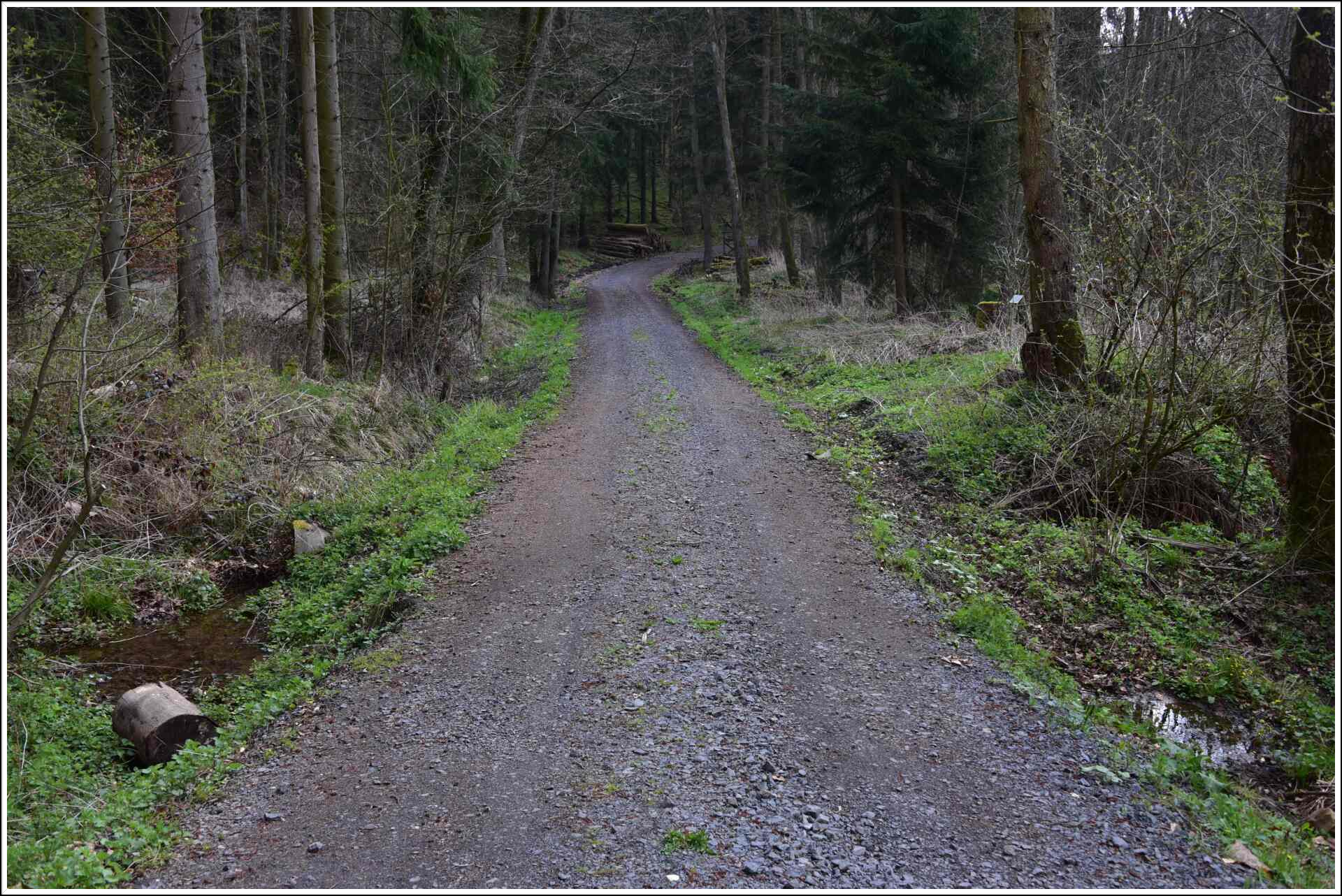 Oben im Foto eine Zusammenfügung von zwei Fotos unten dann die echte unverfälschte Umgebung.Damals war der Waldweg noch unbewachsen.Heute 2021 ist sehr viel zugewachsen mit jungen Buchen und einige schwere Fichten sind zerschmettert worden und liegen quer über diesen ehemaligen guten Waldweg entlang des Lohrbachs.Hier geht praktisch der berühmte "Niemand" entlang außer ich selber.