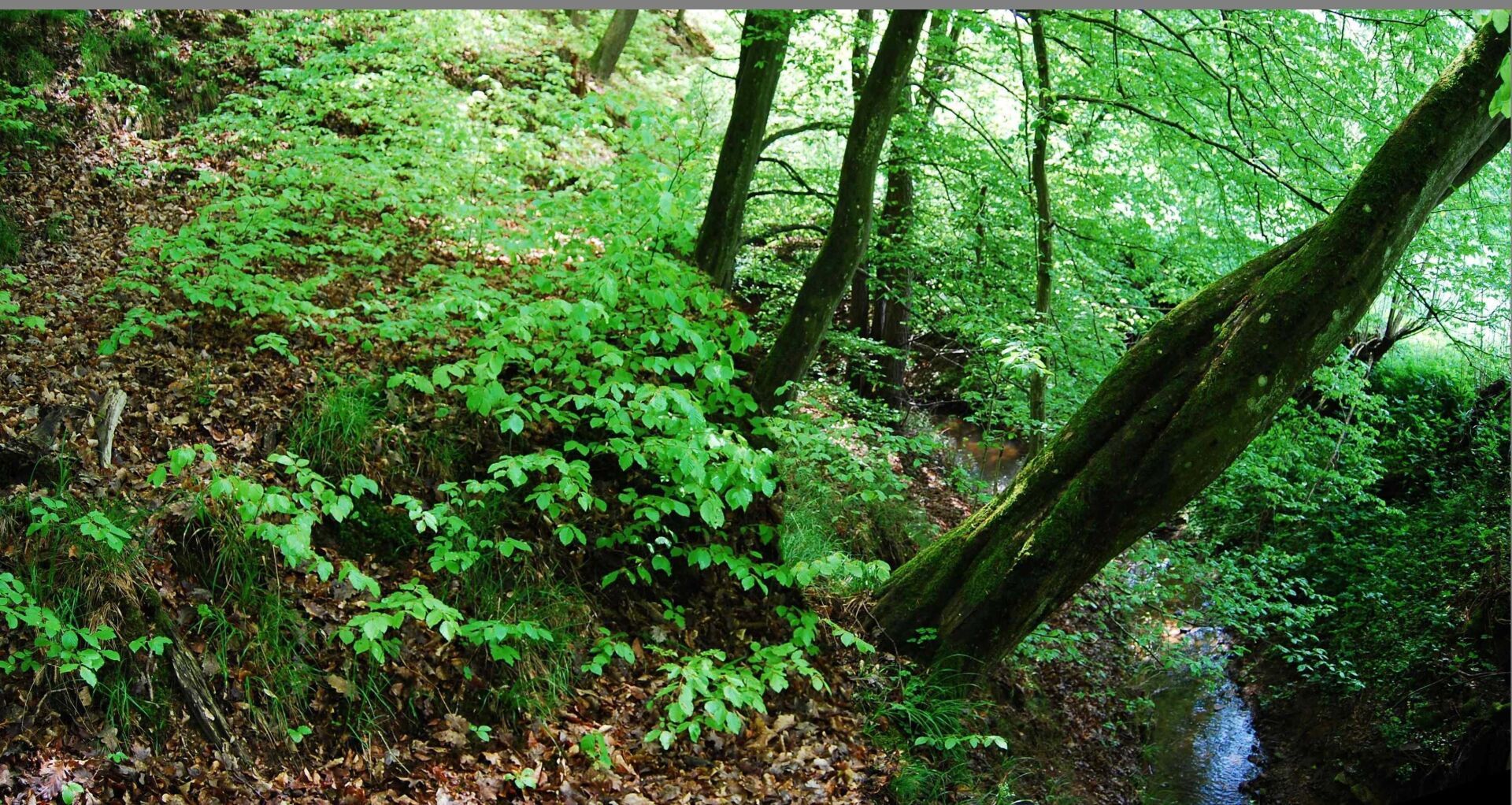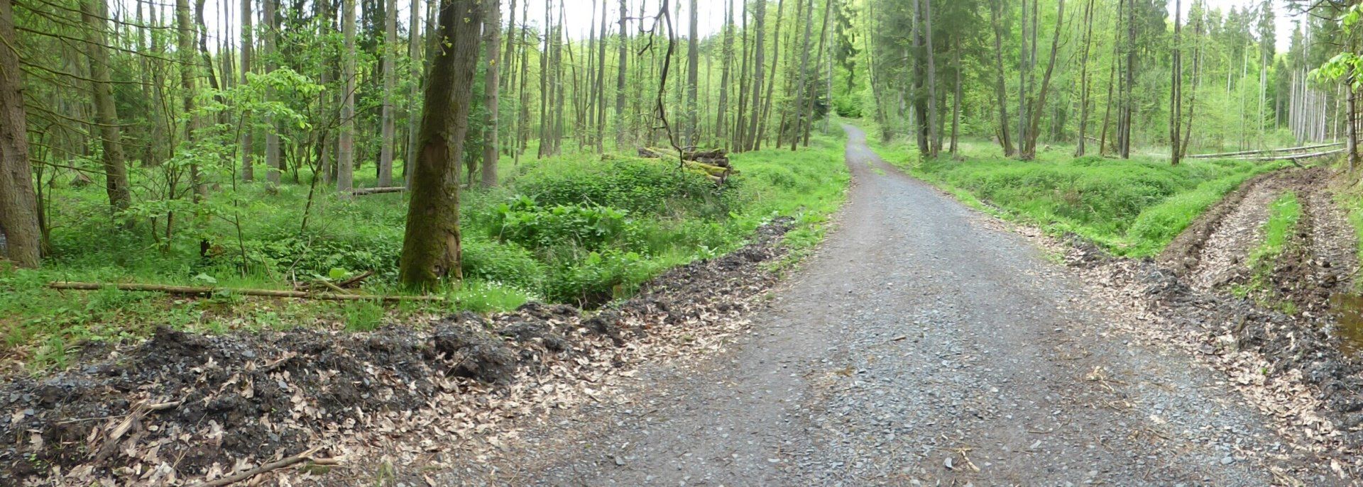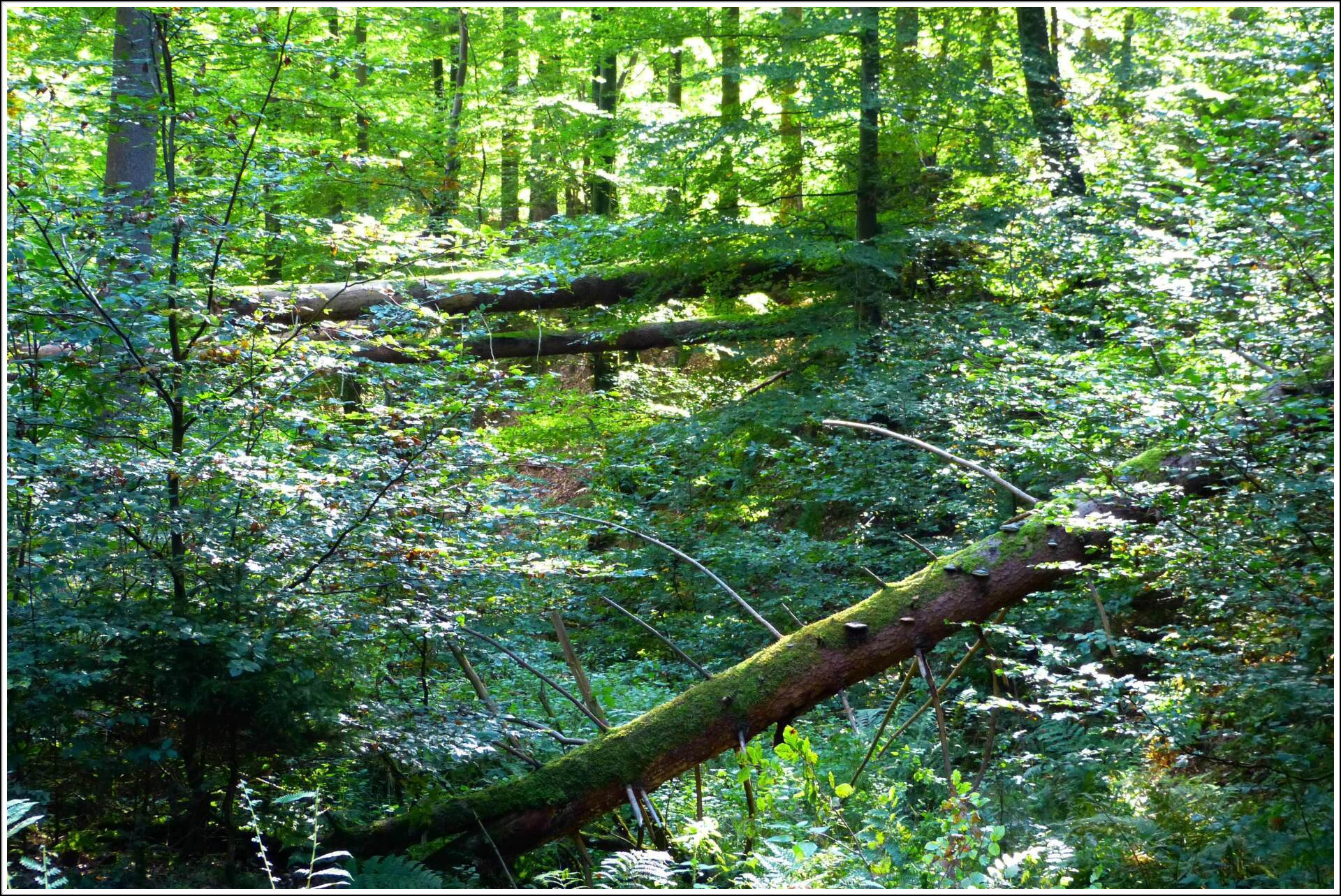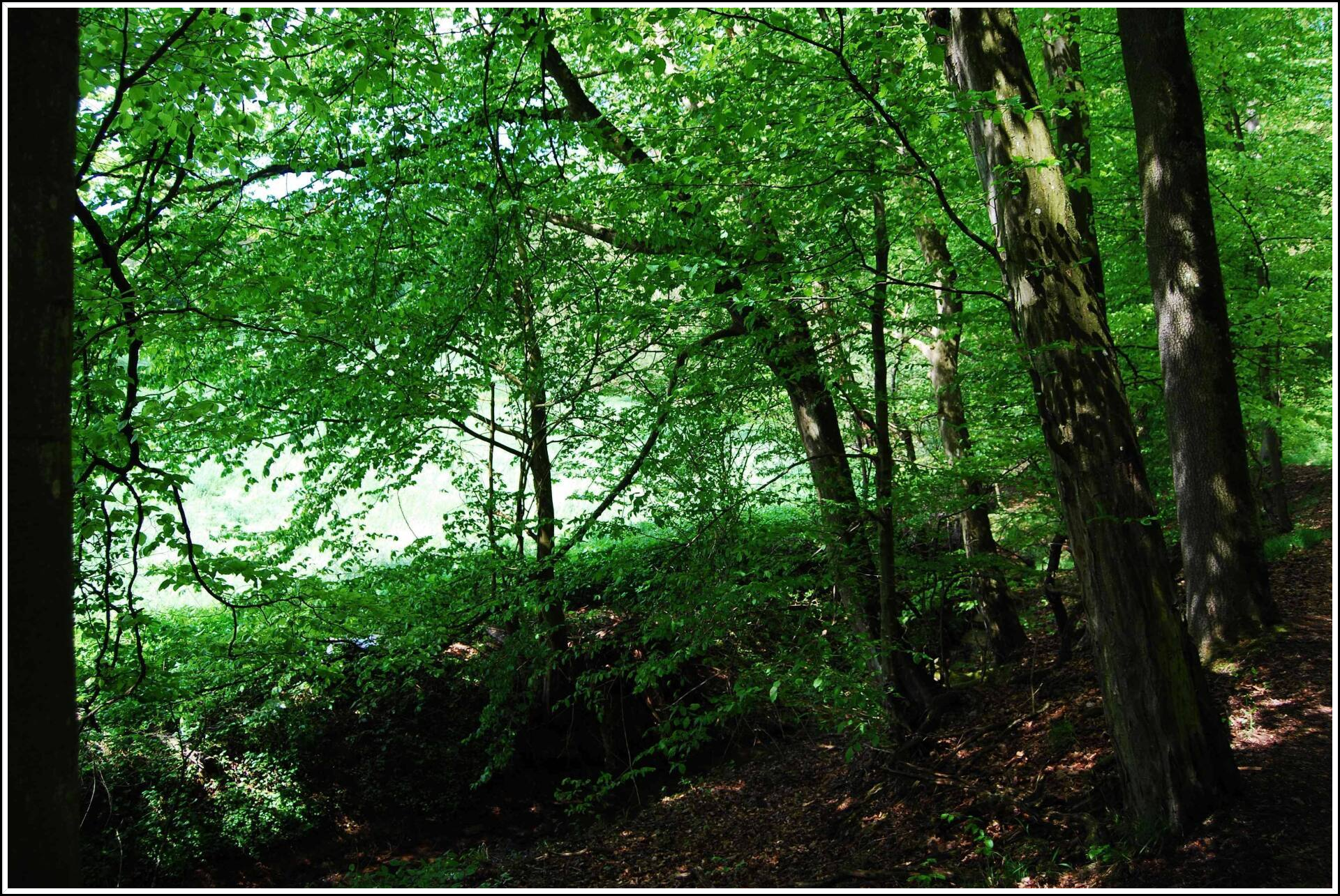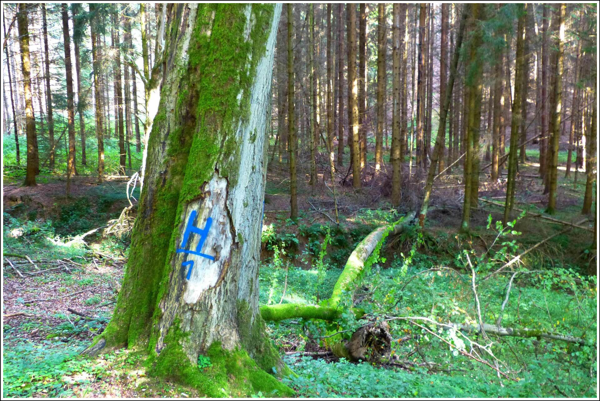 Oben im Foto eine Zusammenfügung von zwei Fotos unten dann die echte unverfälschte Umgebung.Damals war der Waldweg noch unbewachsen.Heute 2021 ist sehr viel zugewachsen mit jungen Buchen und einige schwere Fichten sind zerschmettert worden und liegen quer über diesen ehemaligen guten Waldweg entlang des Lohrbachs.Hier geht praktisch der berühmte "Niemand" entlang außer ich selber.