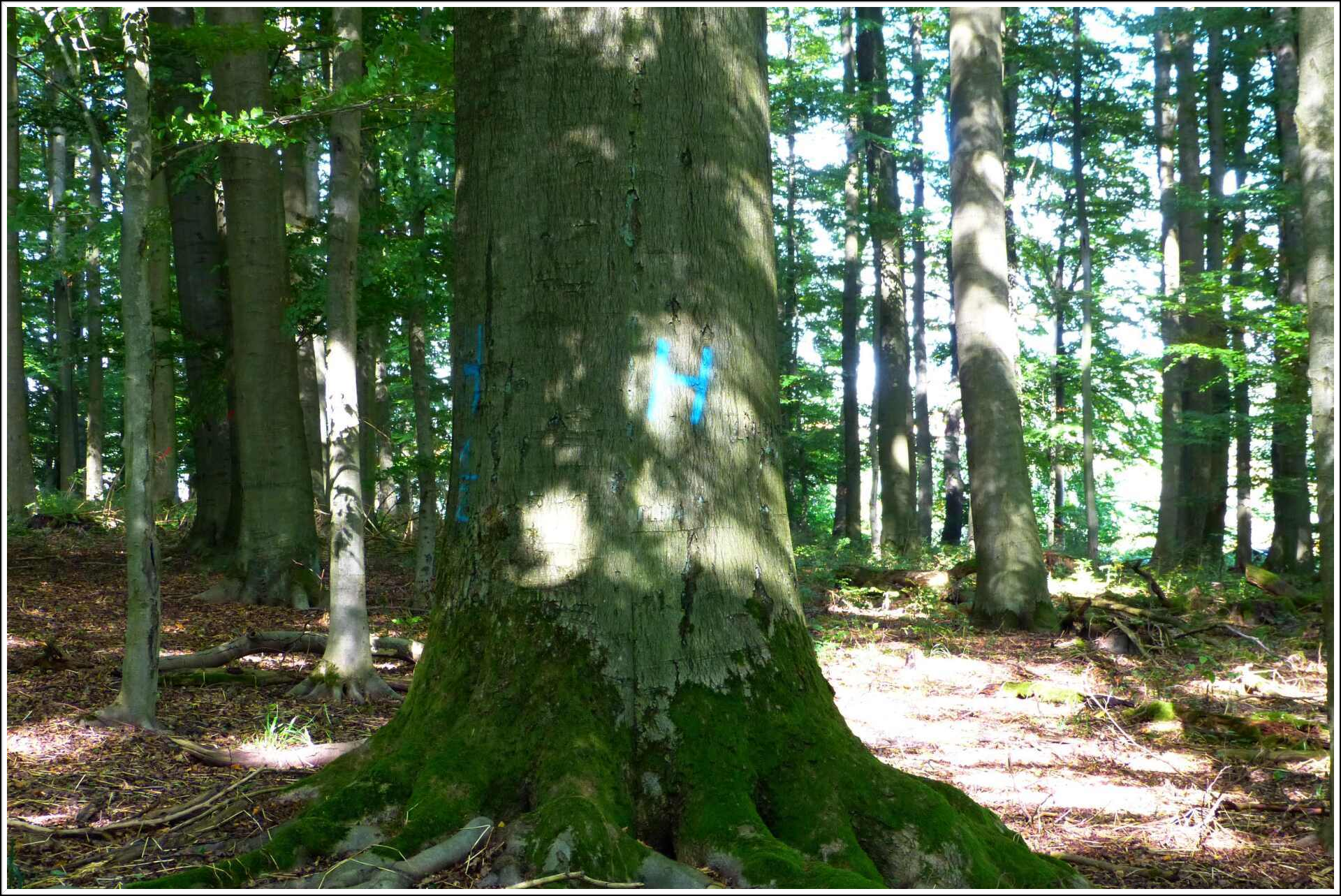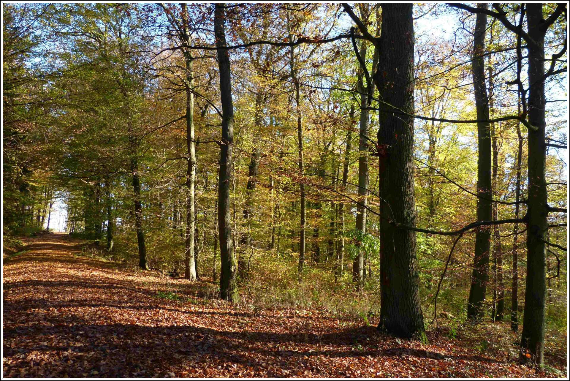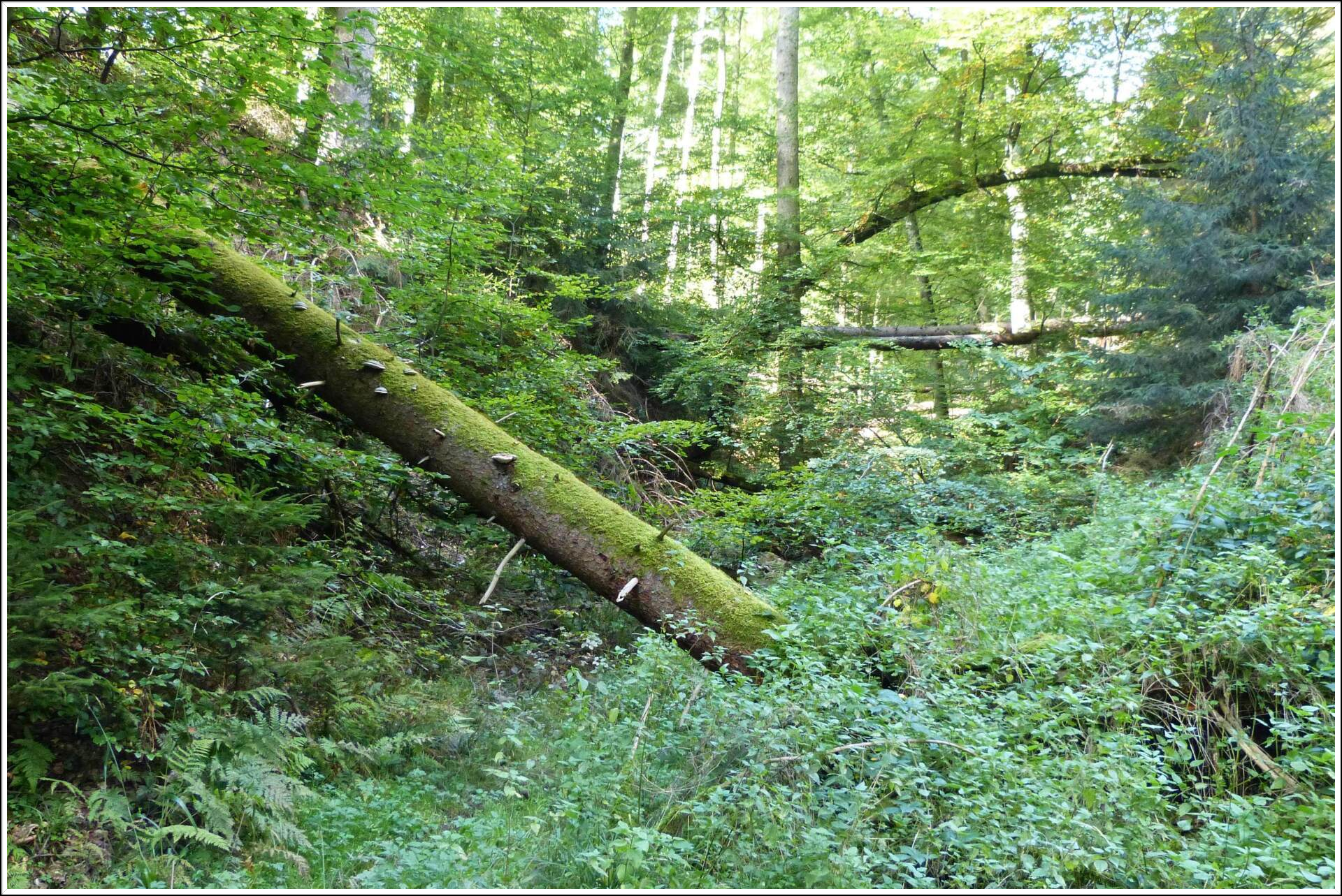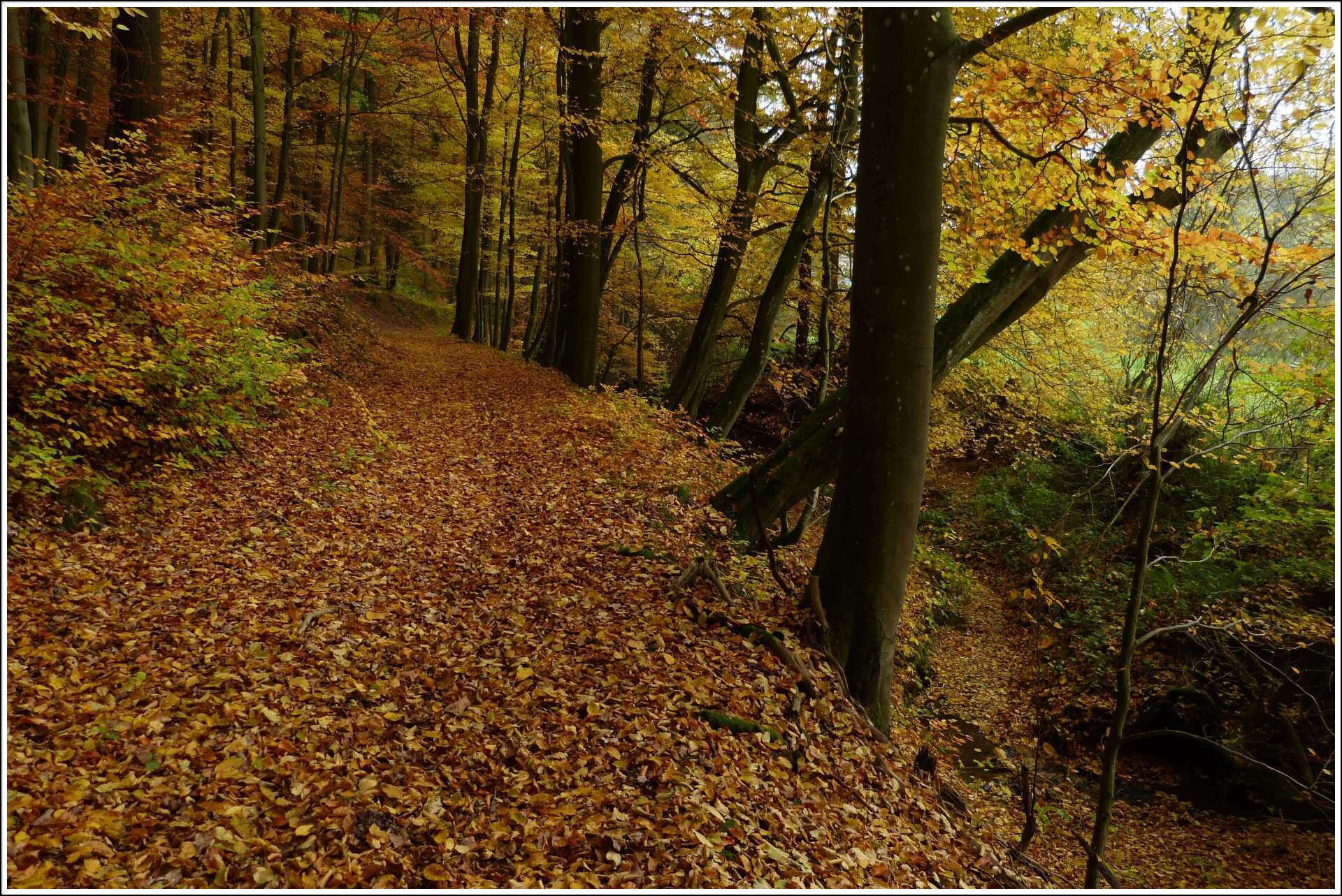 Oben im Foto eine Zusammenfügung von zwei Fotos unten dann die echte unverfälschte Umgebung.Damals war der Waldweg noch unbewachsen.Heute 2021 ist sehr viel zugewachsen mit jungen Buchen und einige schwere Fichten sind zerschmettert worden und liegen quer über diesen ehemaligen guten Waldweg entlang des Lohrbachs.Hier geht praktisch der berühmte "Niemand" entlang außer ich selber.