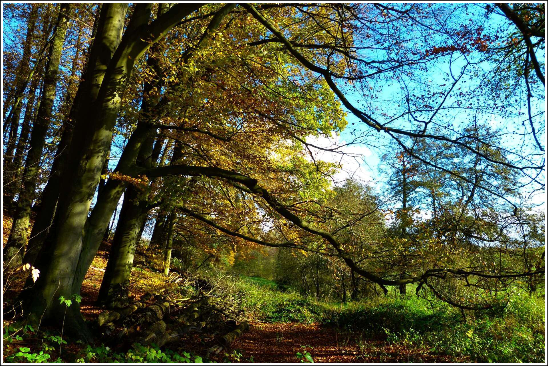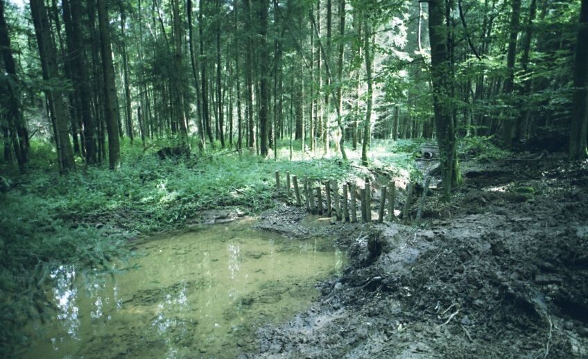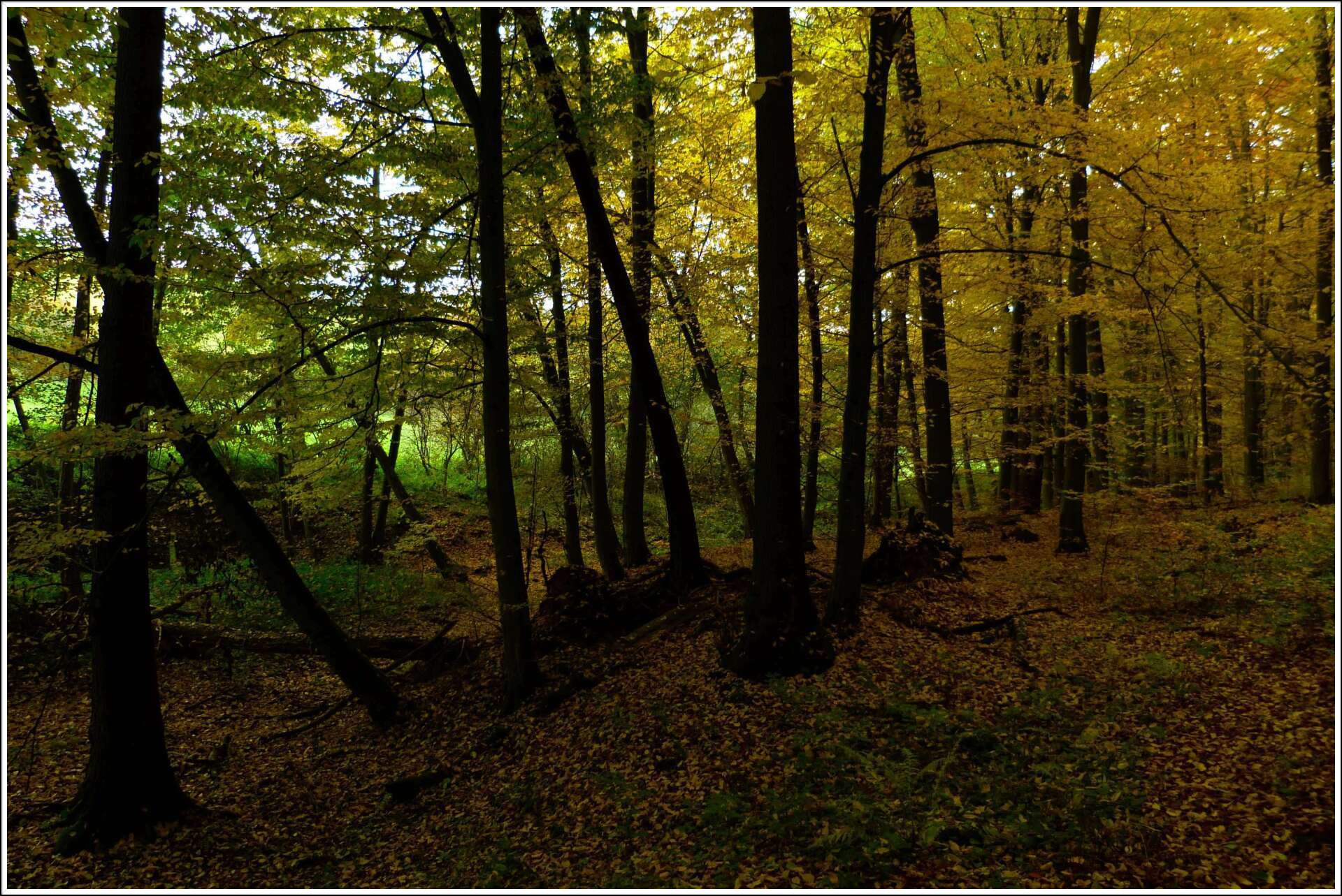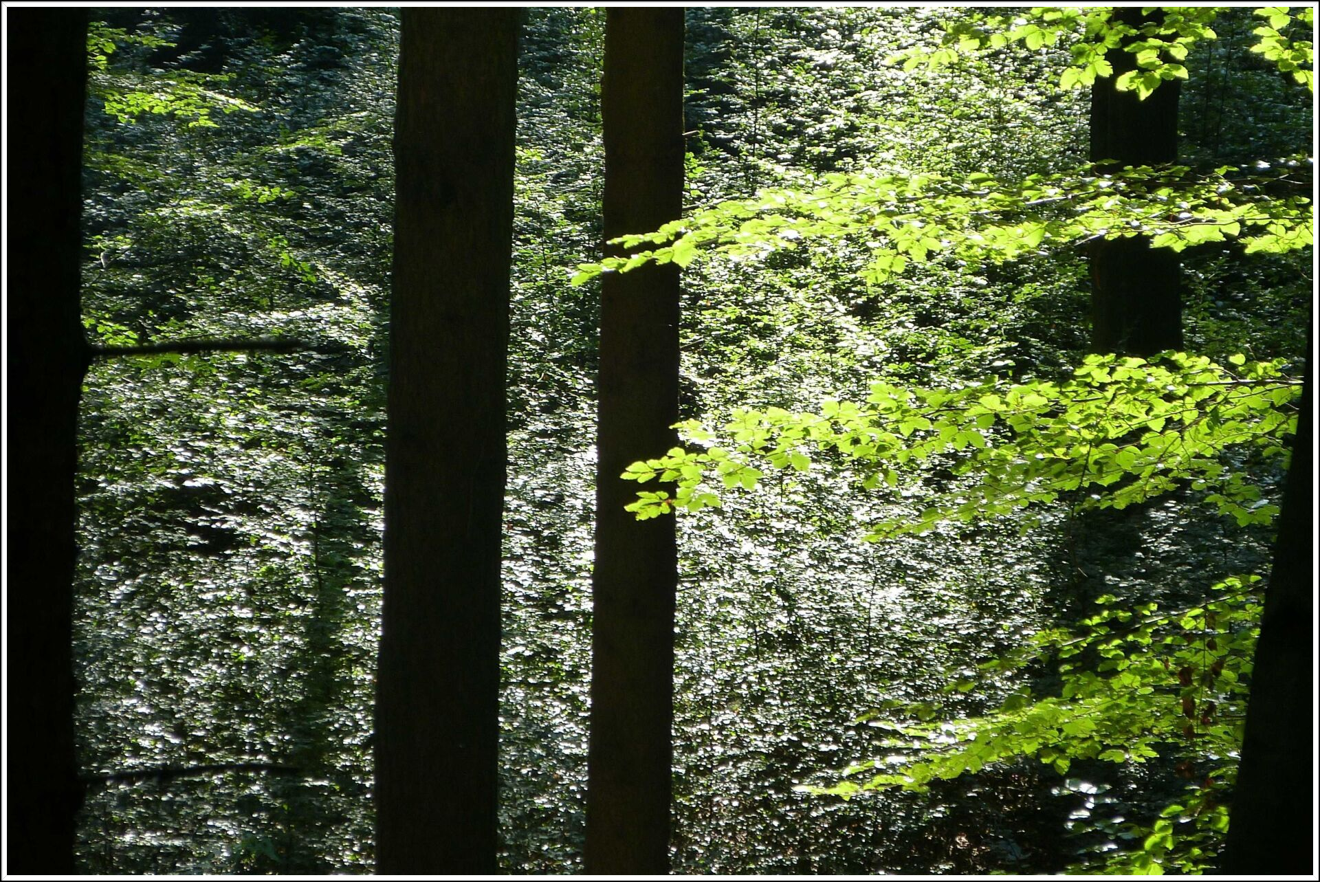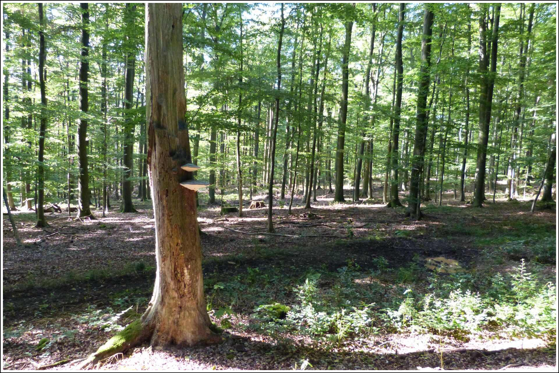 Oben im Foto eine Zusammenfügung von zwei Fotos unten dann die echte unverfälschte Umgebung.Damals war der Waldweg noch unbewachsen.Heute 2021 ist sehr viel zugewachsen mit jungen Buchen und einige schwere Fichten sind zerschmettert worden und liegen quer über diesen ehemaligen guten Waldweg entlang des Lohrbachs.Hier geht praktisch der berühmte "Niemand" entlang außer ich selber.