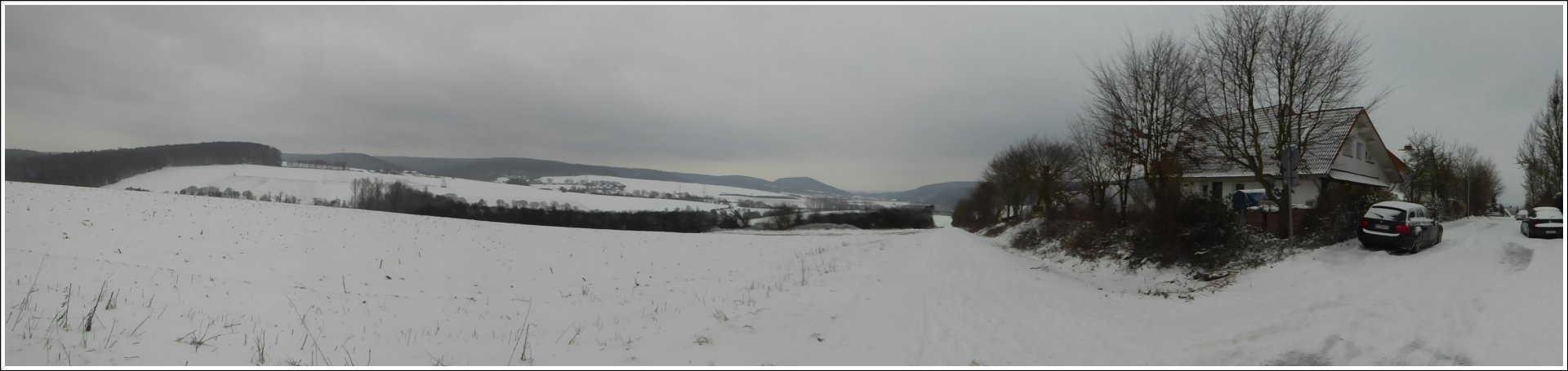 Vom Balkon aus habe ich also diese Rebhühner im Blick oder aber etwas südlicher der Winterblick auf Niederurff.