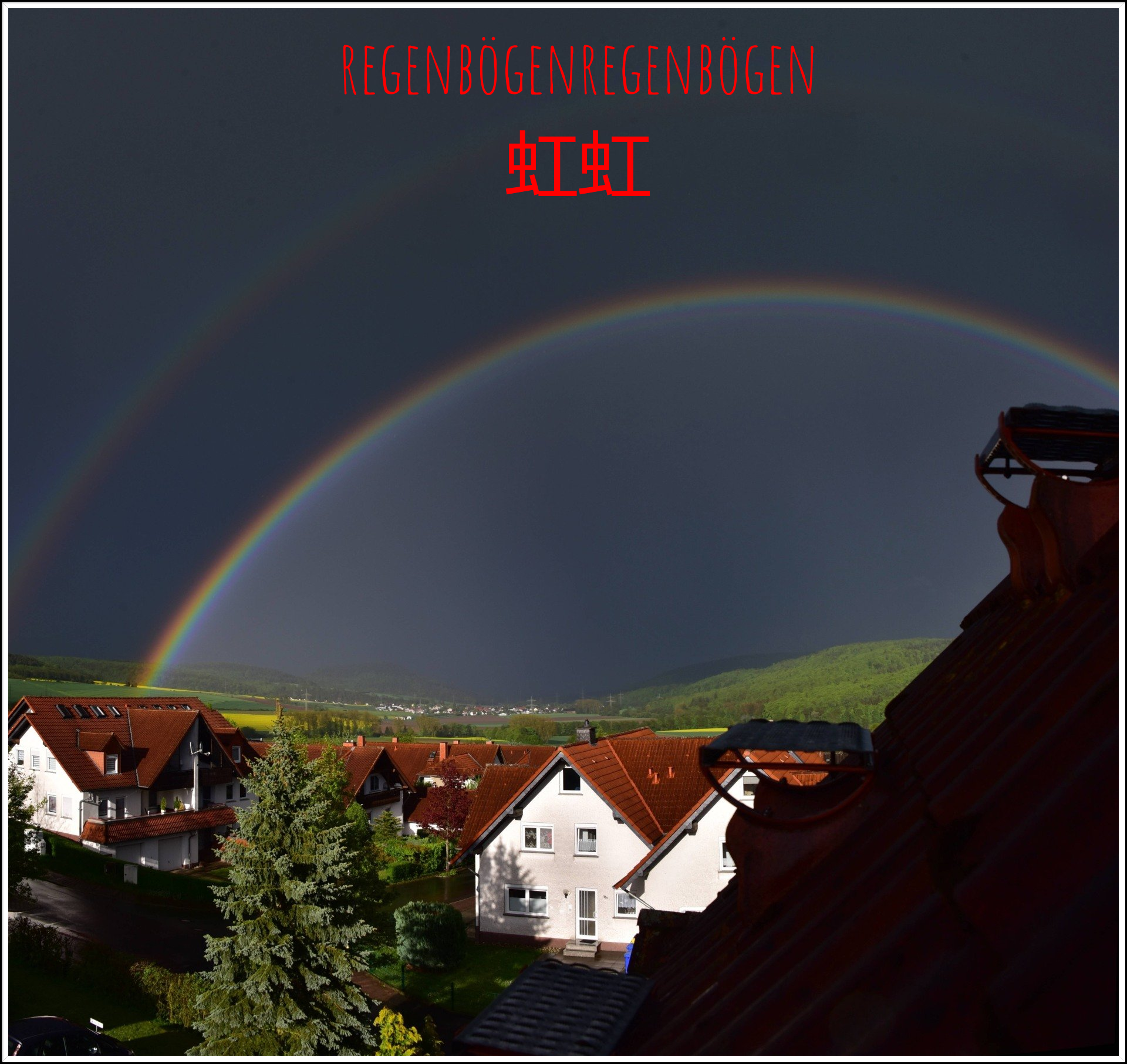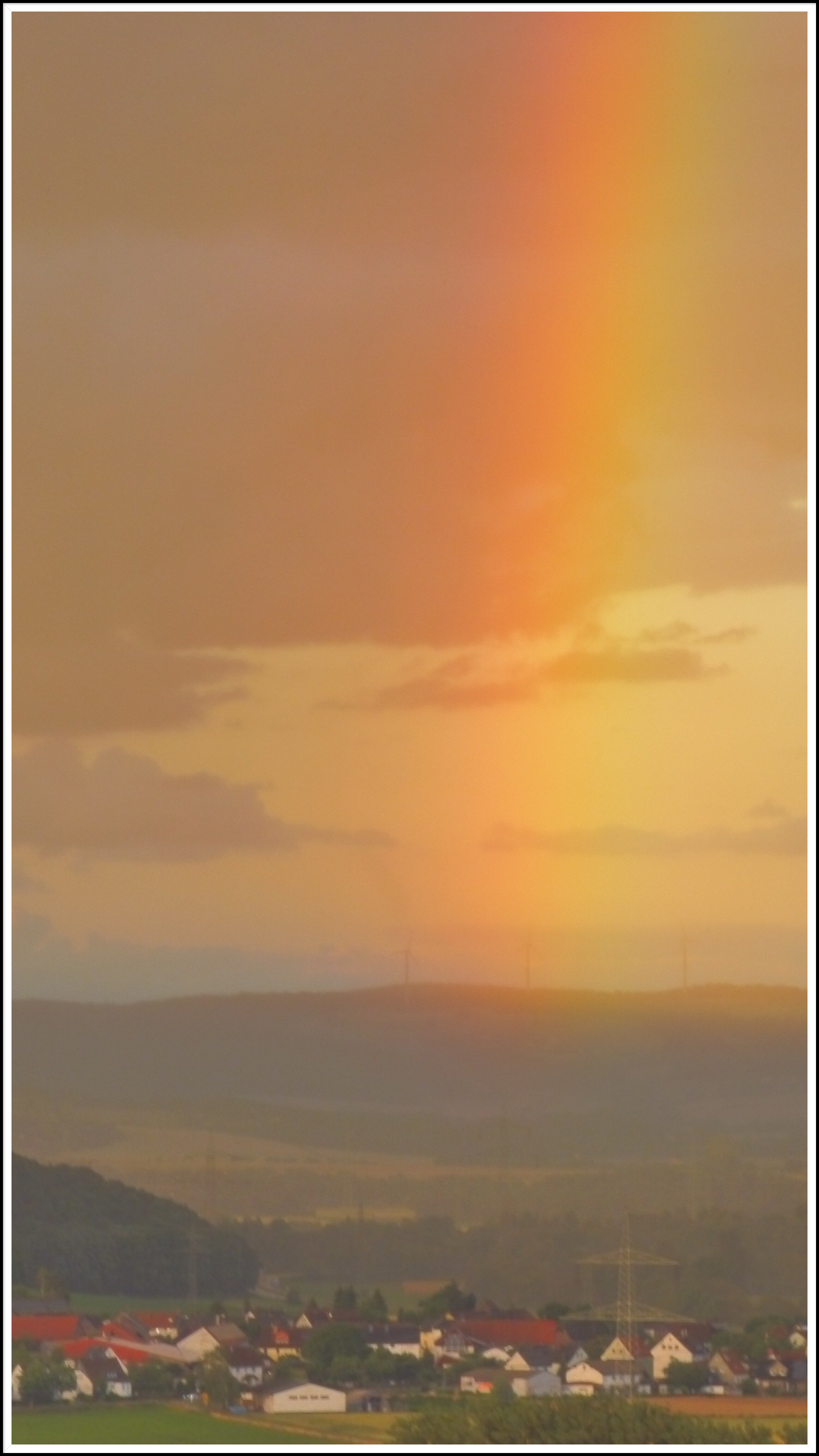 Bis dann der August Regenbogen erschien in einem dunkelblauen Hintergrund um den Abgang der Lohrbach Kirschbaum Wirbelsturm Erhabenheit zu unterstreichen