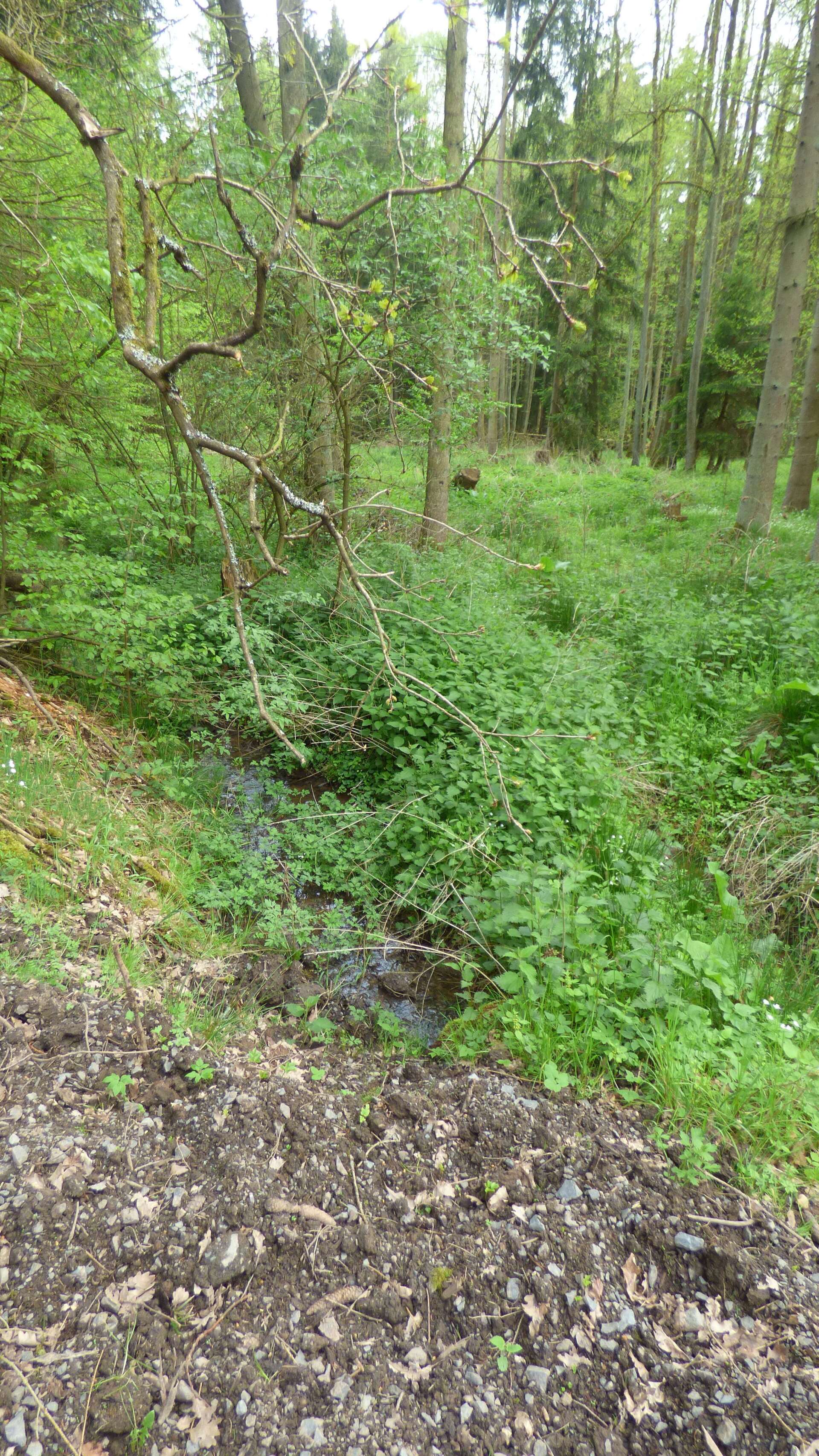 Dort auf der Wiese fängt der Lohrbach an Wasser zu sammeln und wird dann der Bach