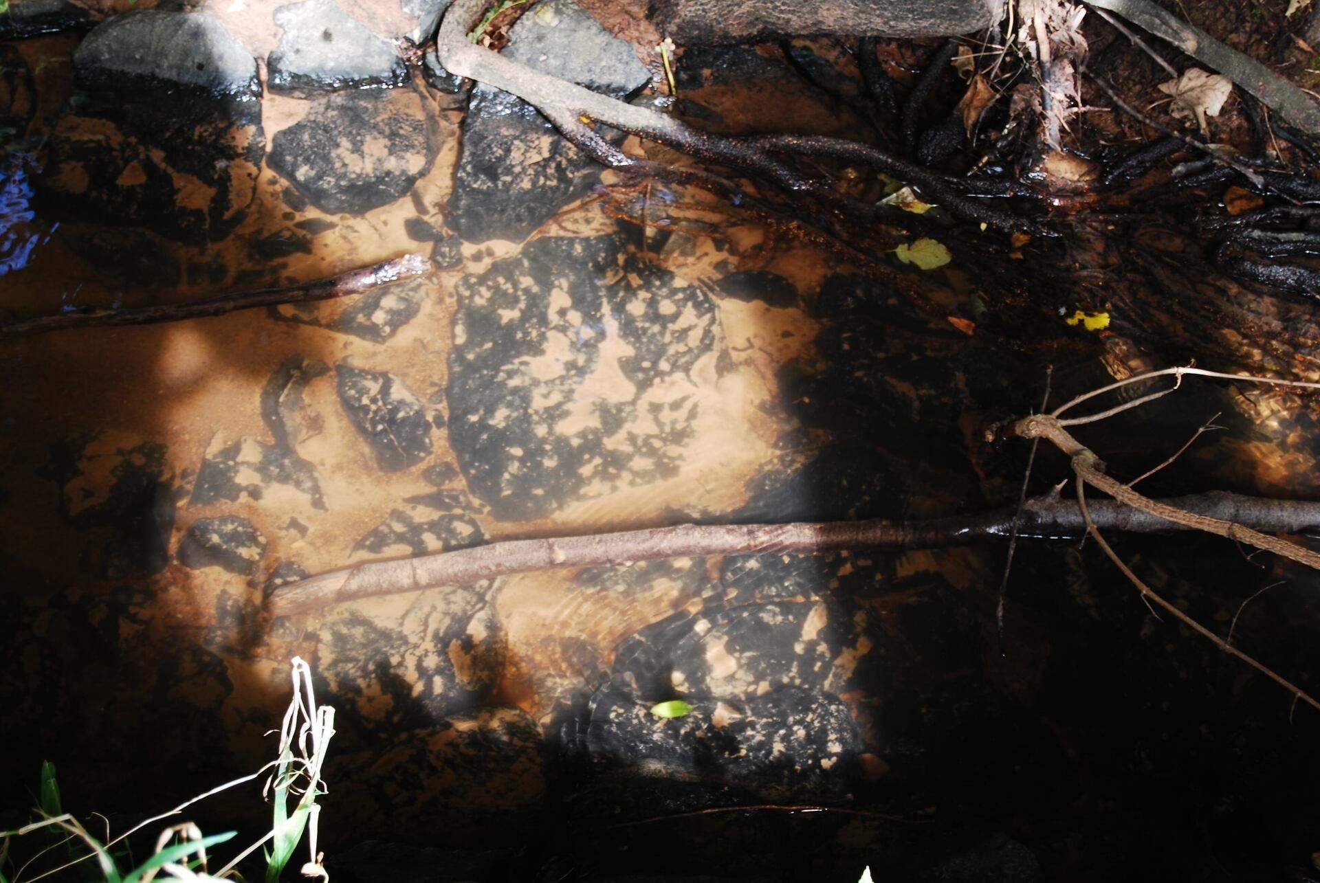 Hier im Urwaldbereich nahe des Endes sind dann diese rötlichen gelblichen Wurzeln frei im Wasser. Und da die Schwarze Erle dort residiert schätze ich das es ihre Wasserwurzeln sind die da leuchten und wedeln.
