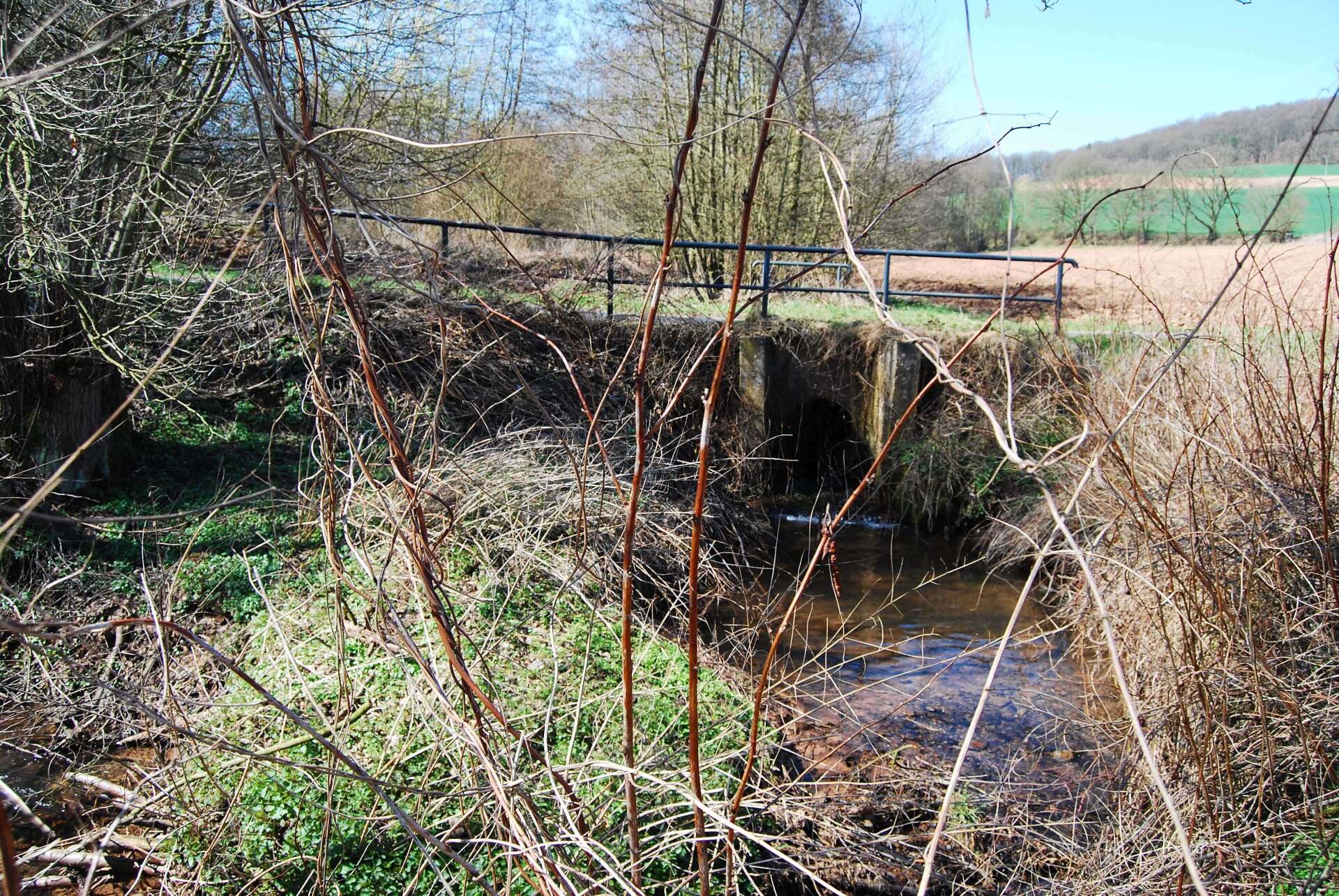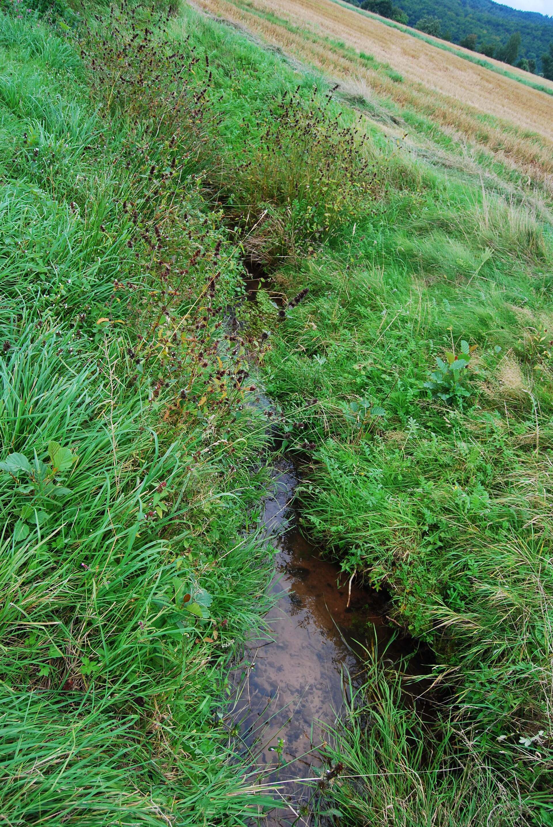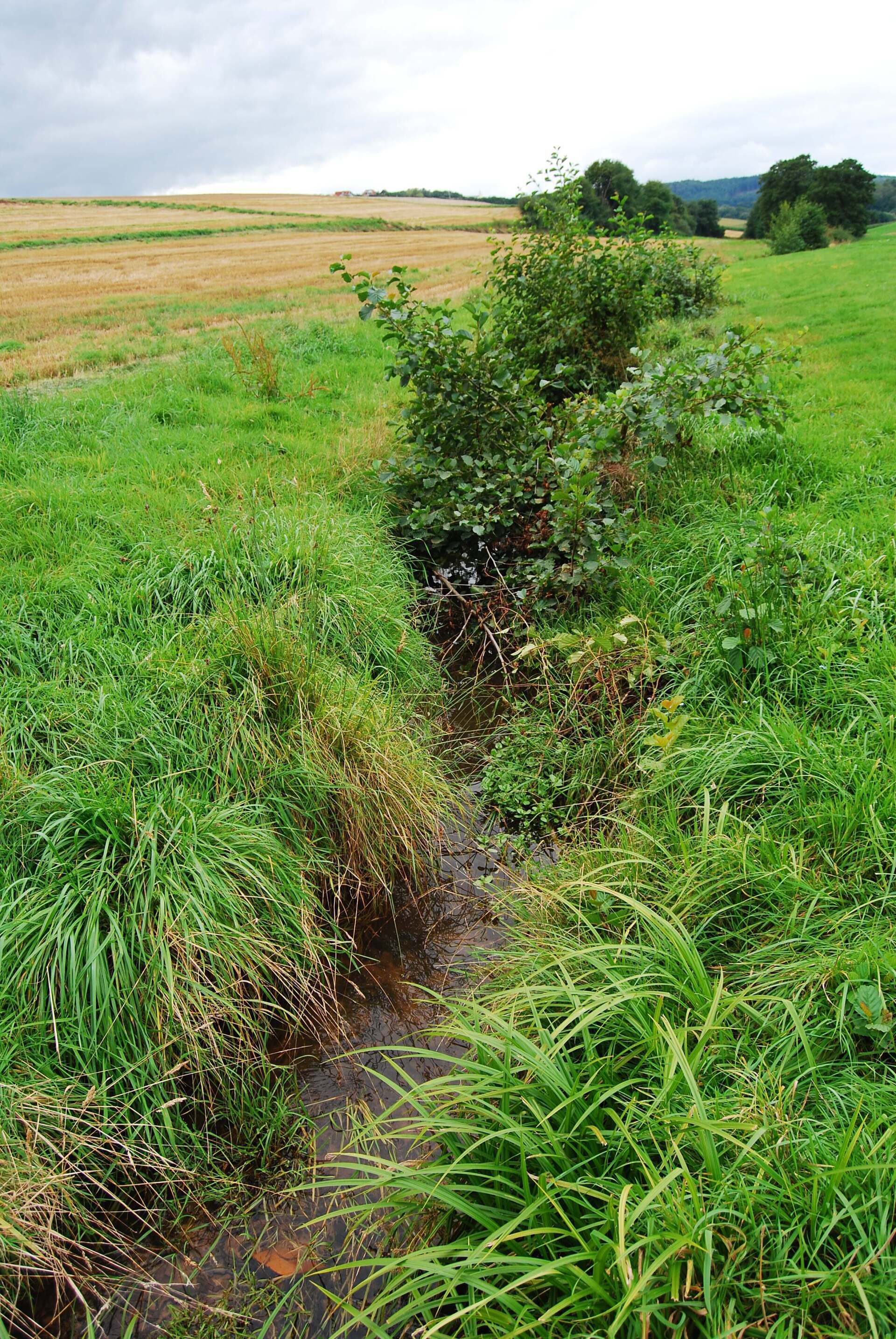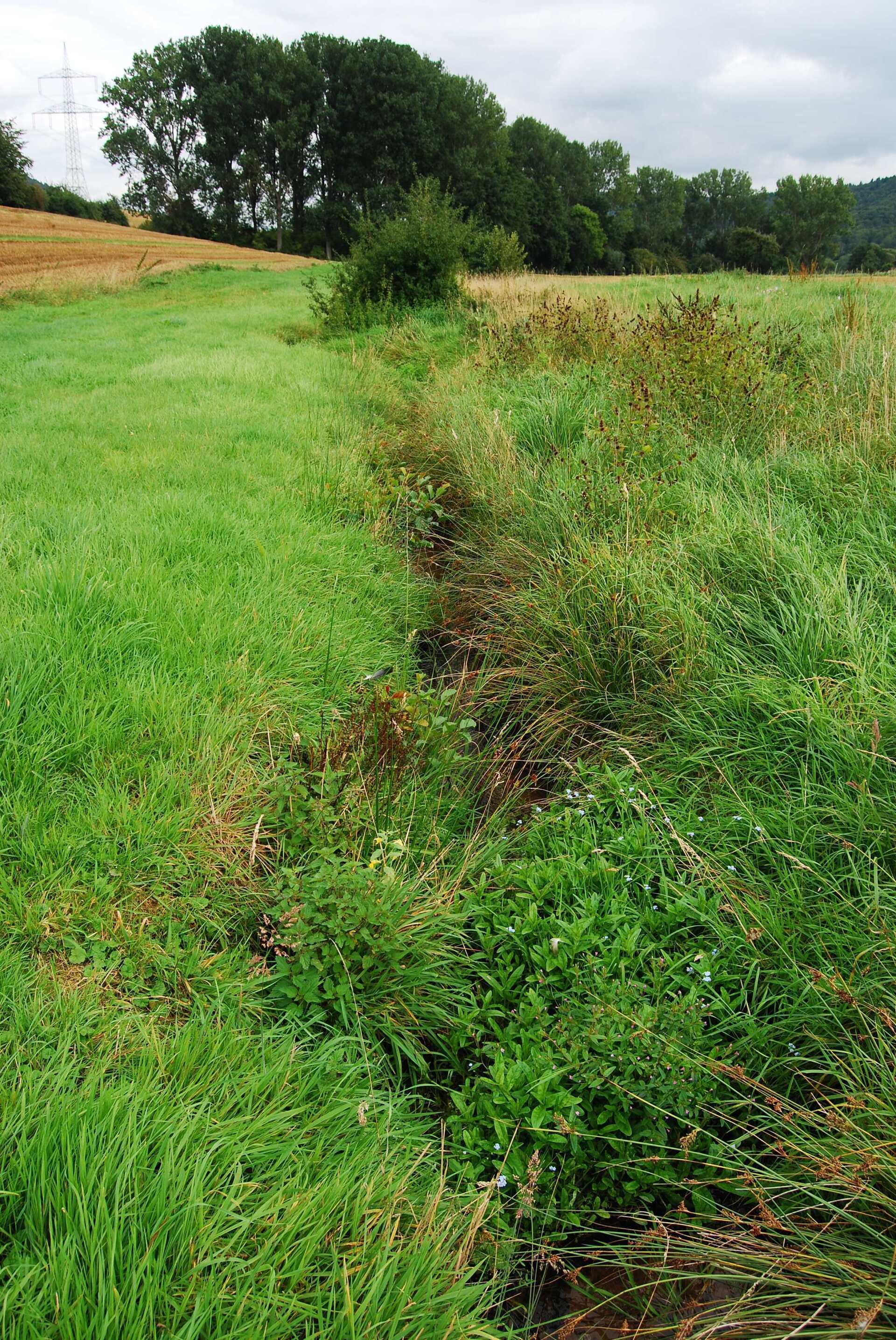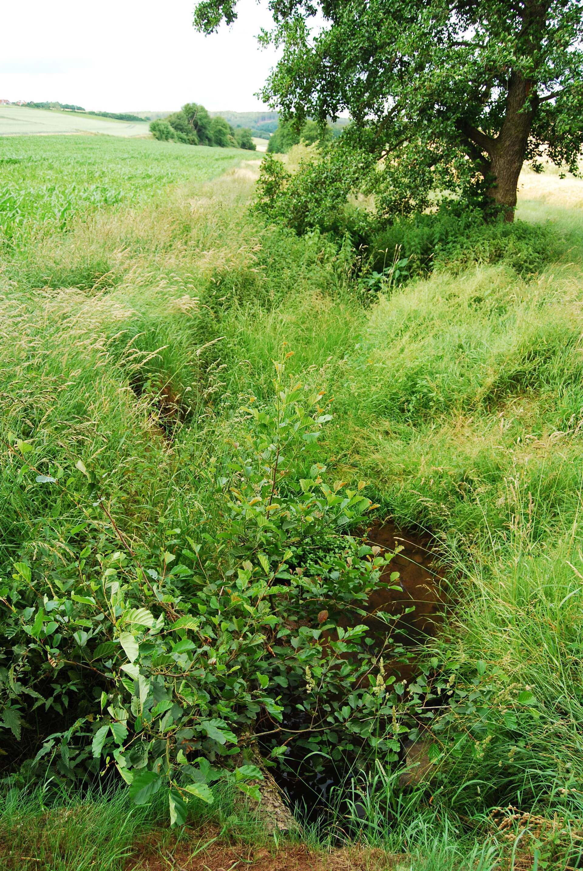 Dieser sehr schmale Streifen entlang des Lohrbachs, das einzig winzige Bändchen von einigermaßen naturbelassenem Erdboden.Rundherum bloß Unlandwirt Konventionelle Landwirtschaft.