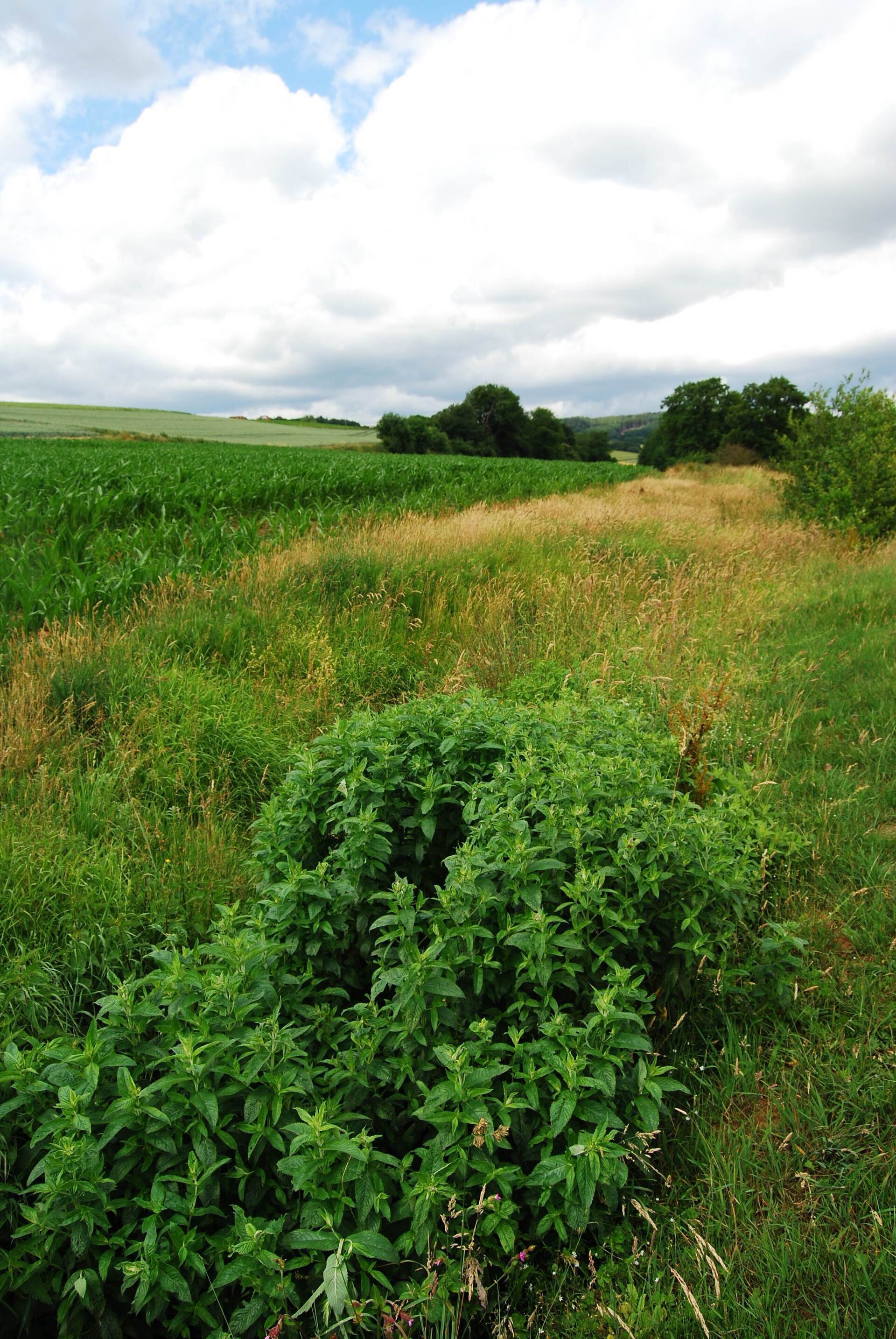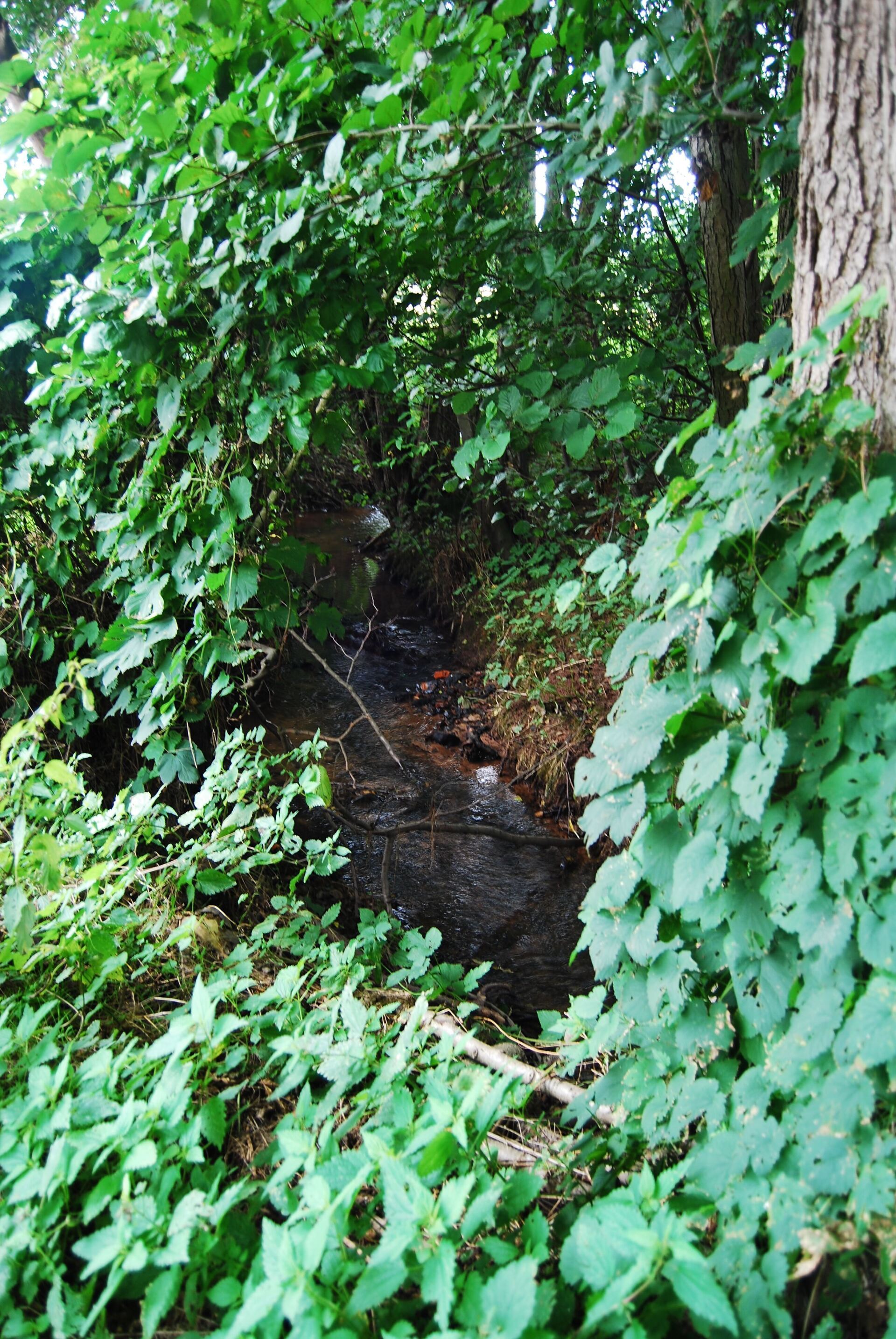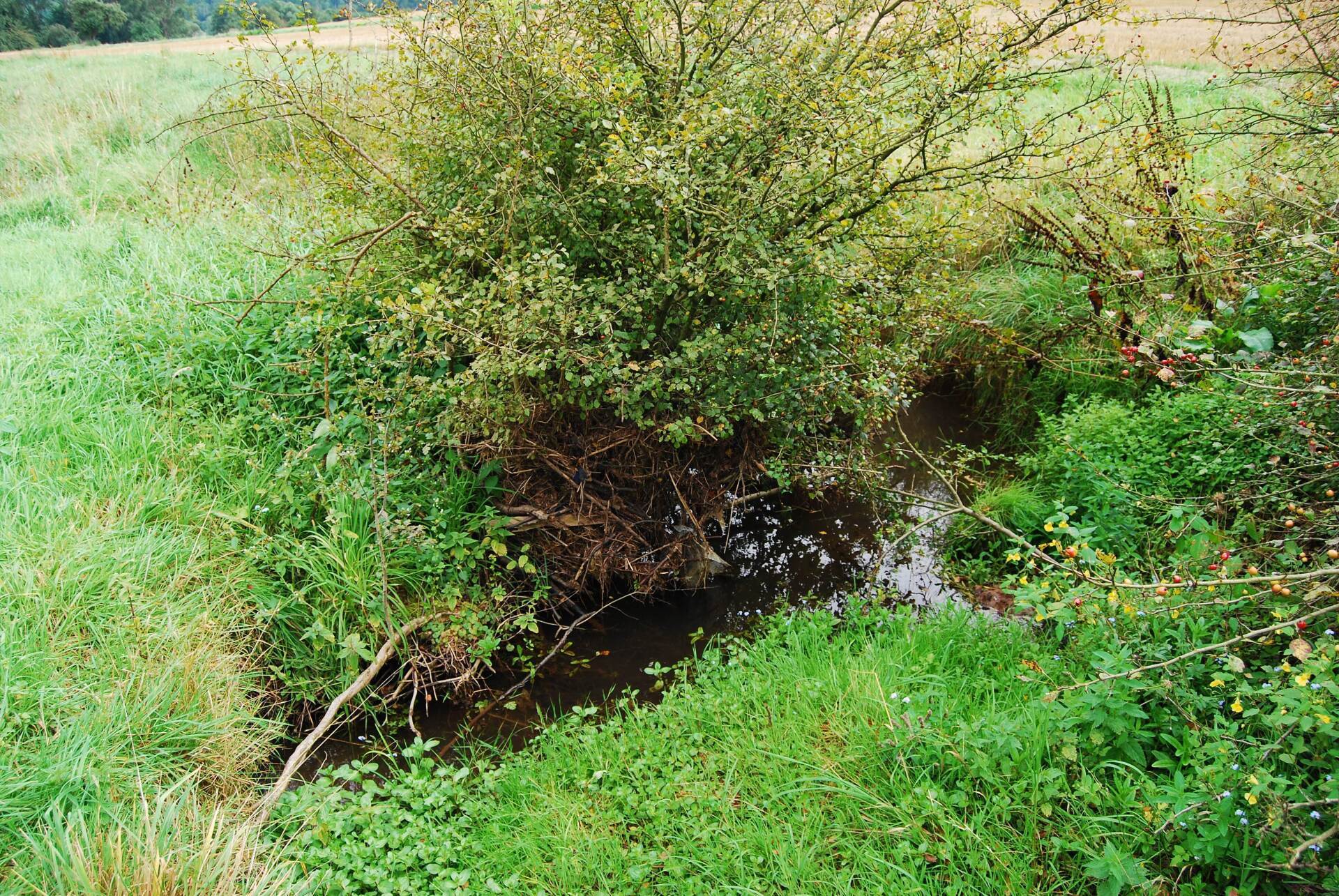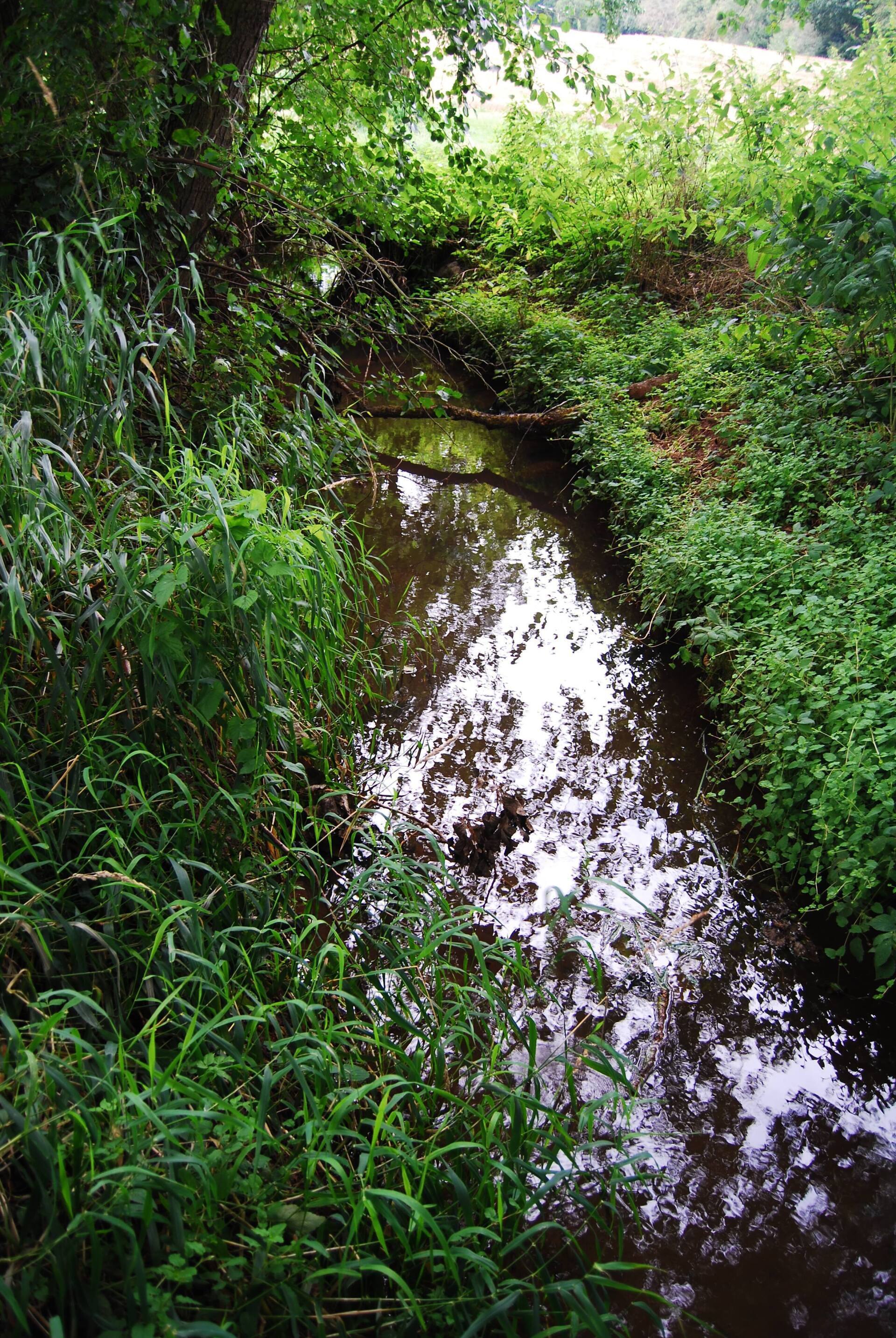 Dieser sehr schmale Streifen entlang des Lohrbachs, das einzig winzige Bändchen von einigermaßen naturbelassenem Erdboden.Rundherum bloß Unlandwirt Konventionelle Landwirtschaft.