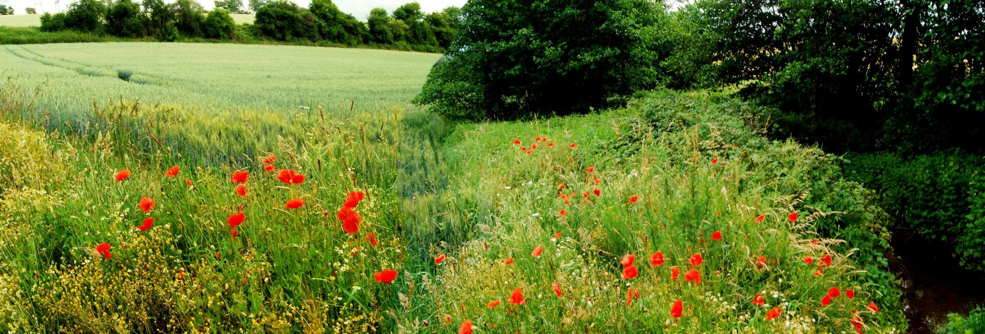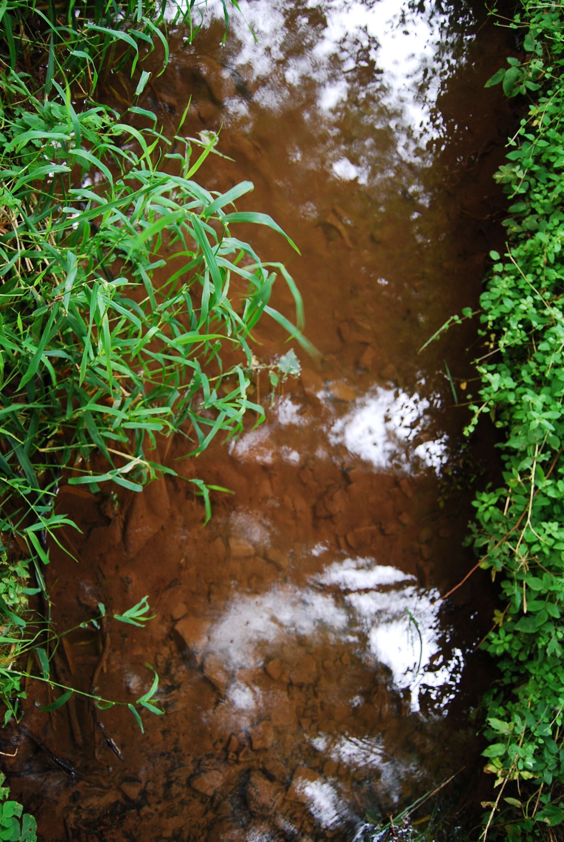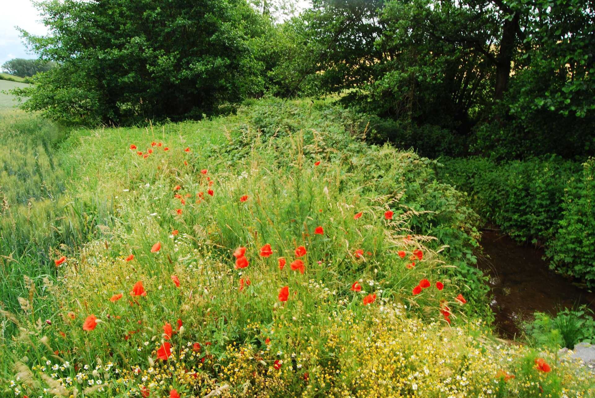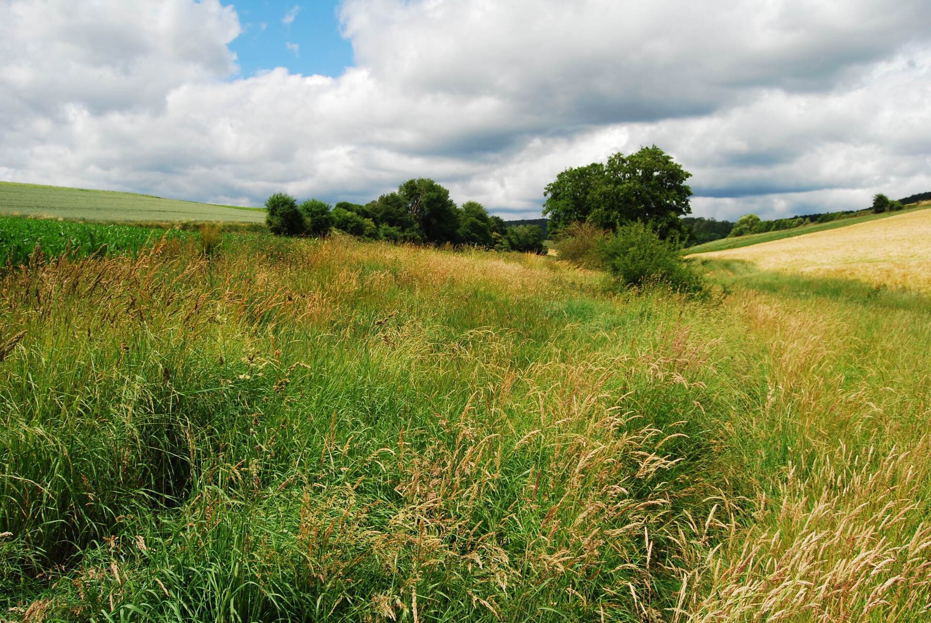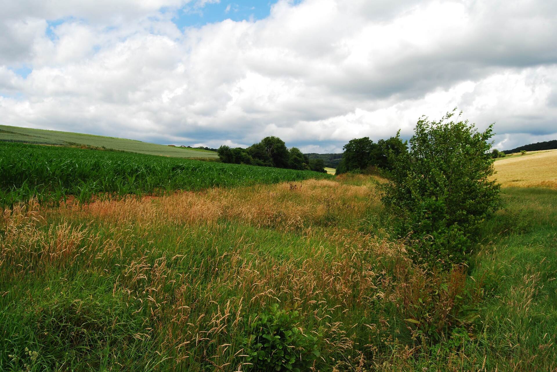 Dieser sehr schmale Streifen entlang des Lohrbachs, das einzig winzige Bändchen von einigermaßen naturbelassenem Erdboden.Rundherum bloß Unlandwirt Konventionelle Landwirtschaft.