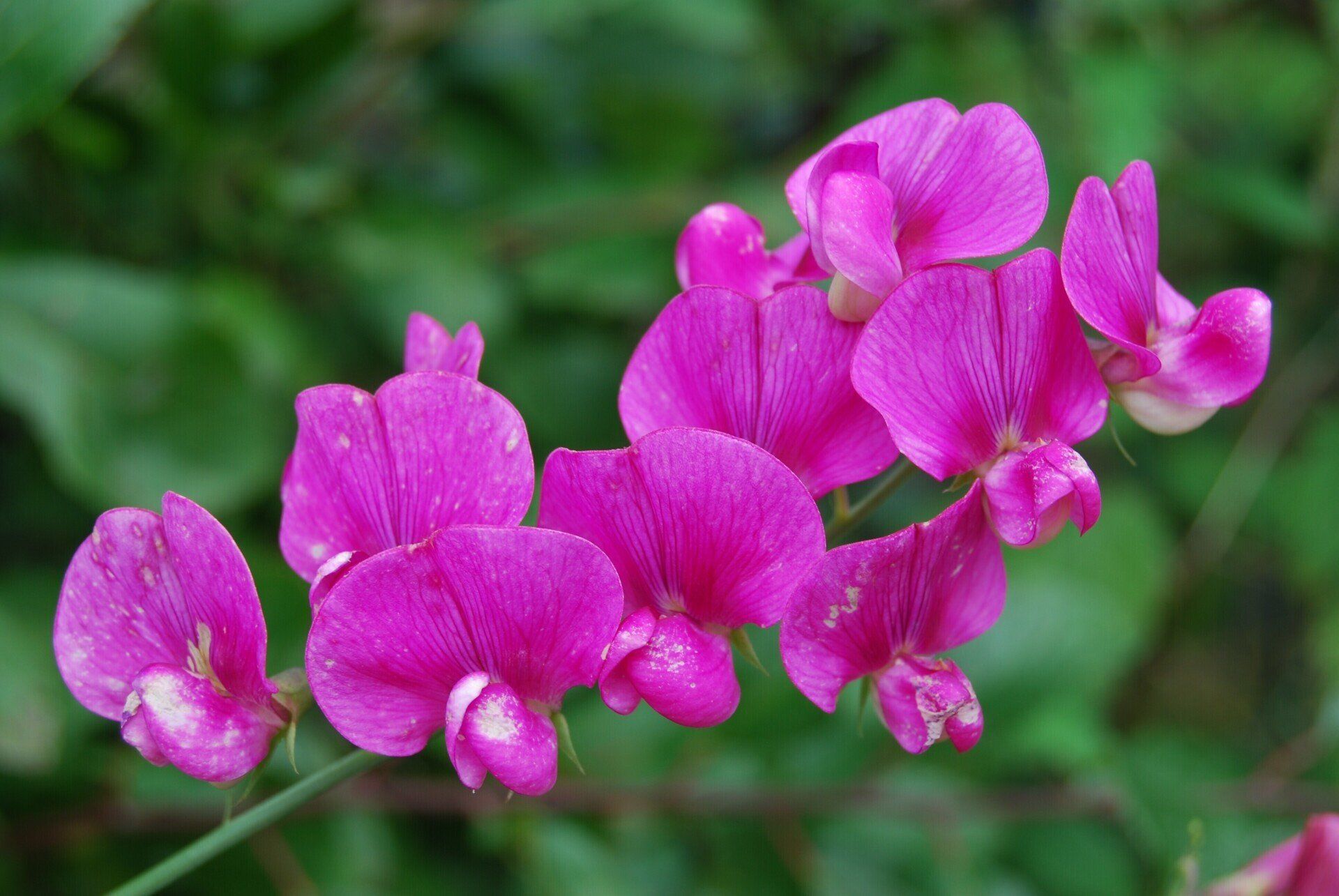 평평한 완두콩은 울타리를 오르고 두꺼운 배는 평평한 곳에서 매달려 있습니다.