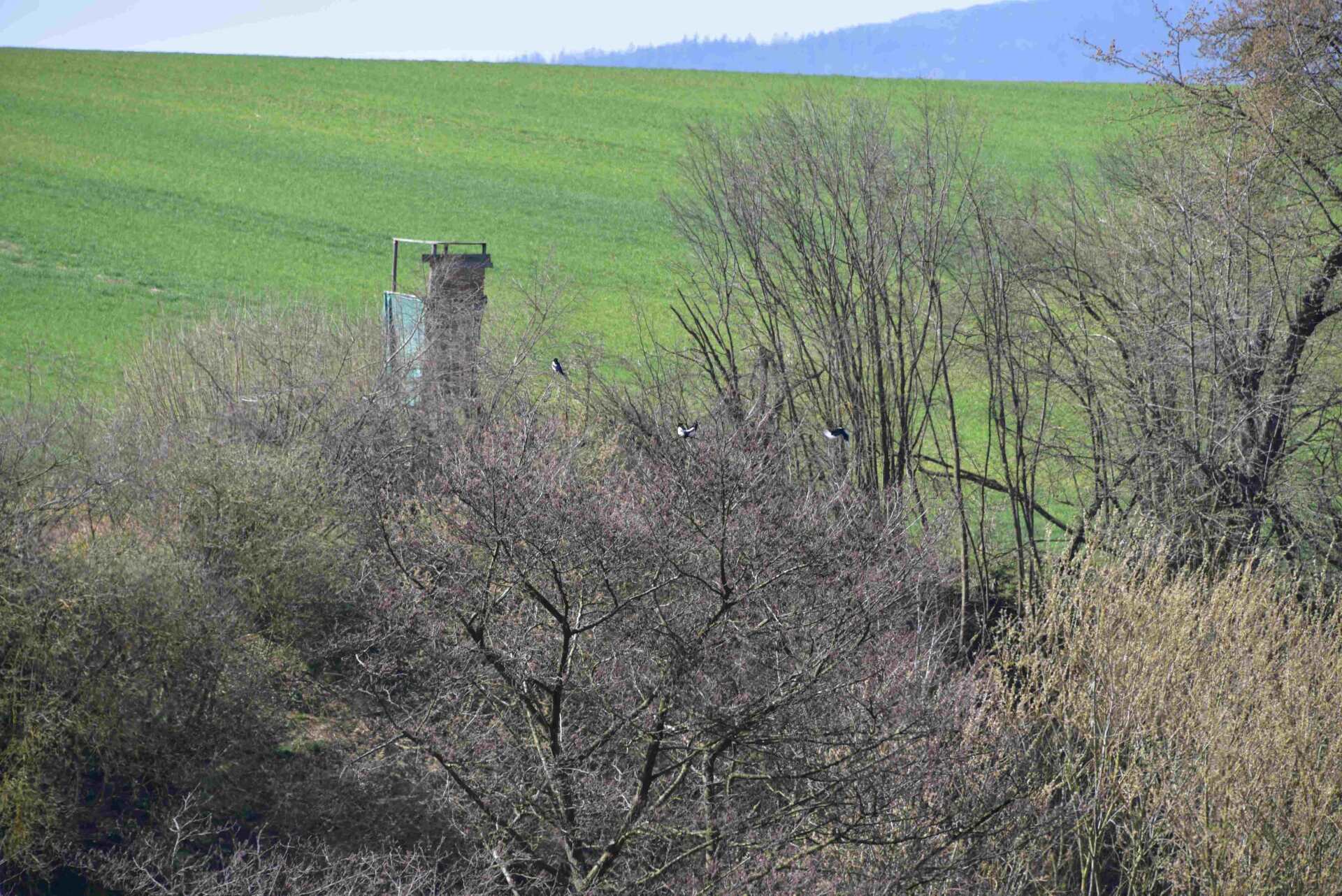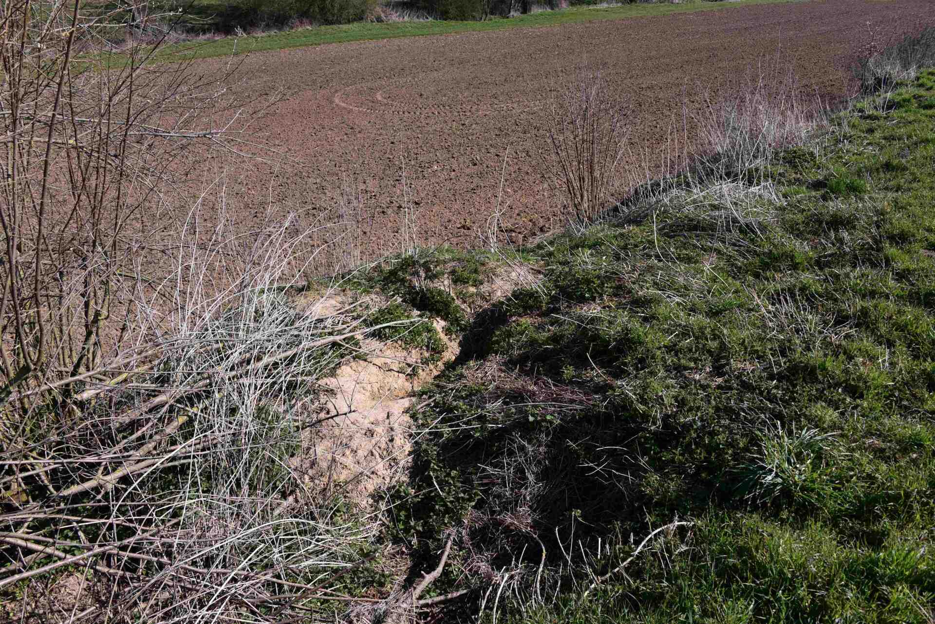 Oben,im Hintergrund der Hang der Rabenkrähen,der Rehe,der Füchse und der Menge an Dachsbautenöffnungen.In diesem Hang ruhen sich die Rehe gerne aus.