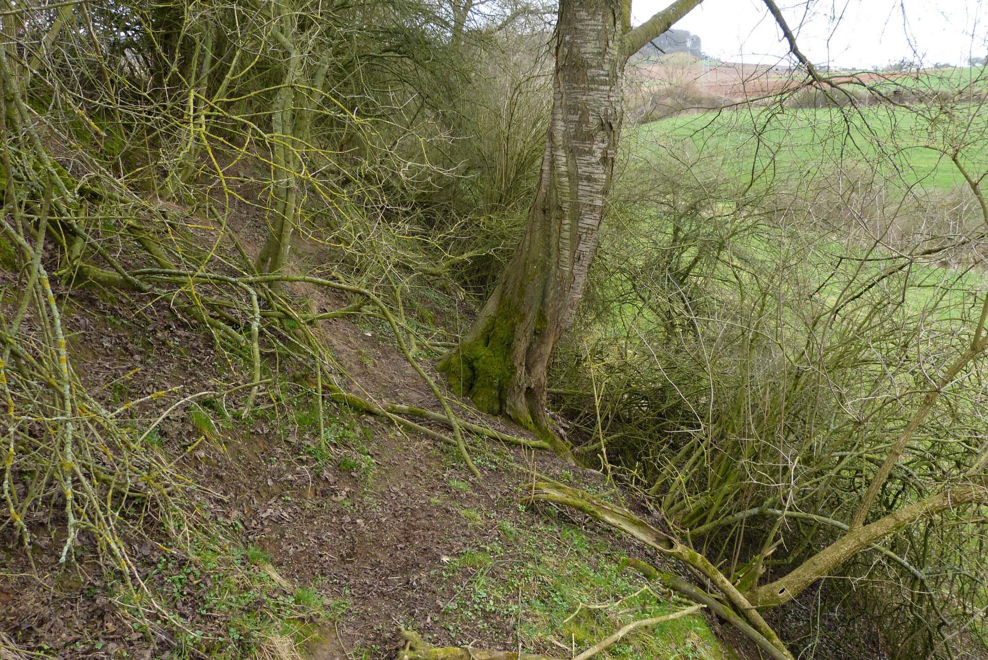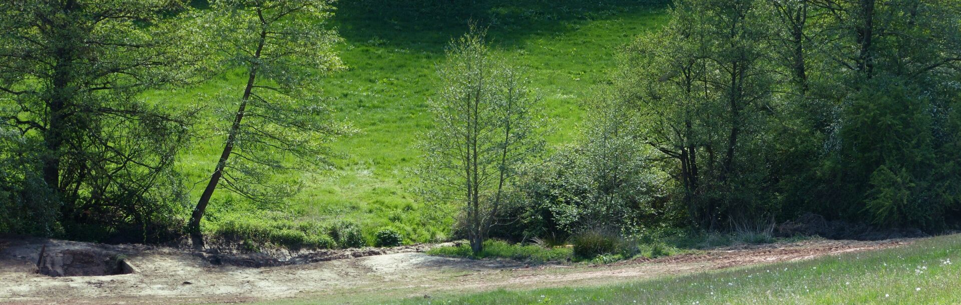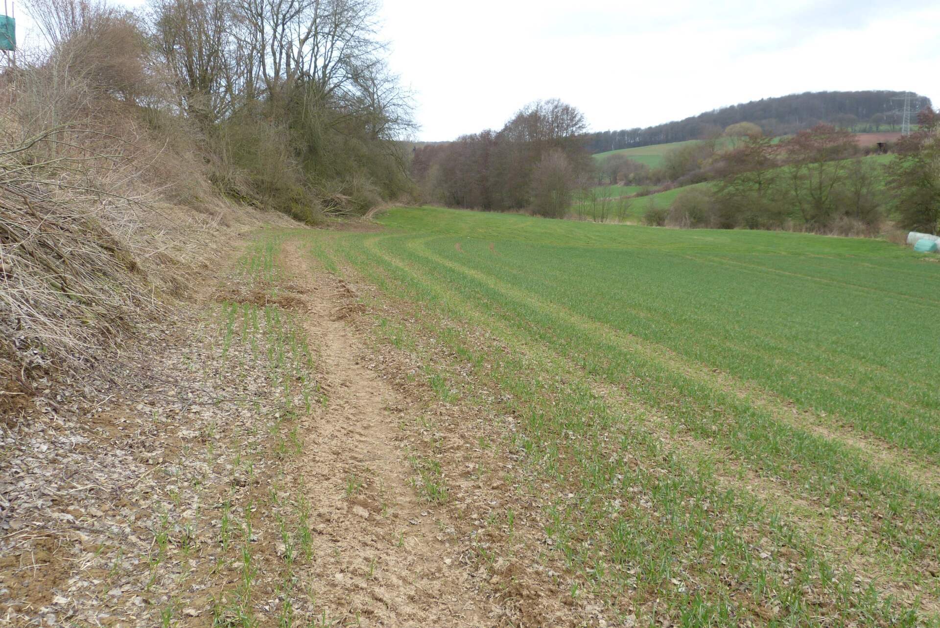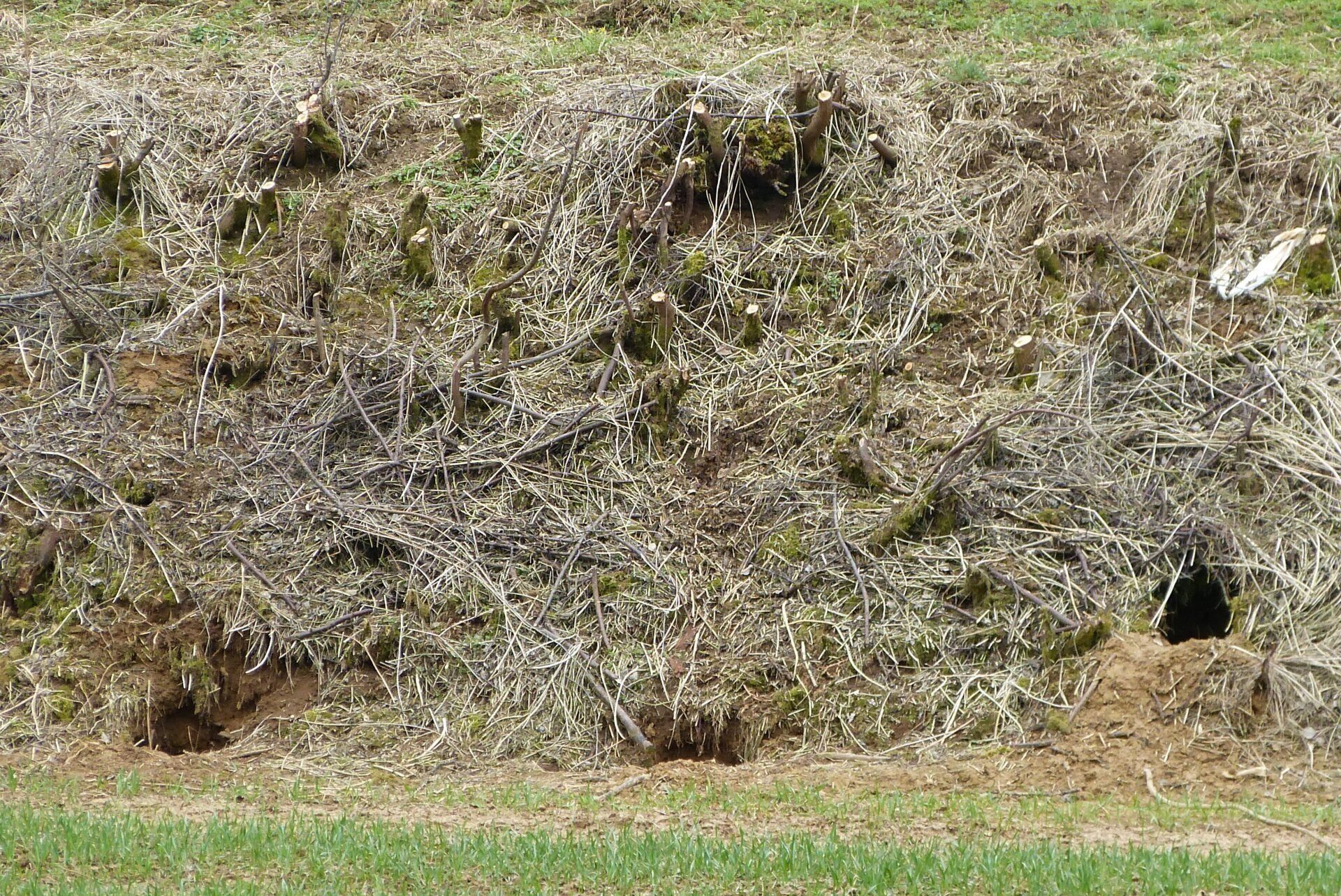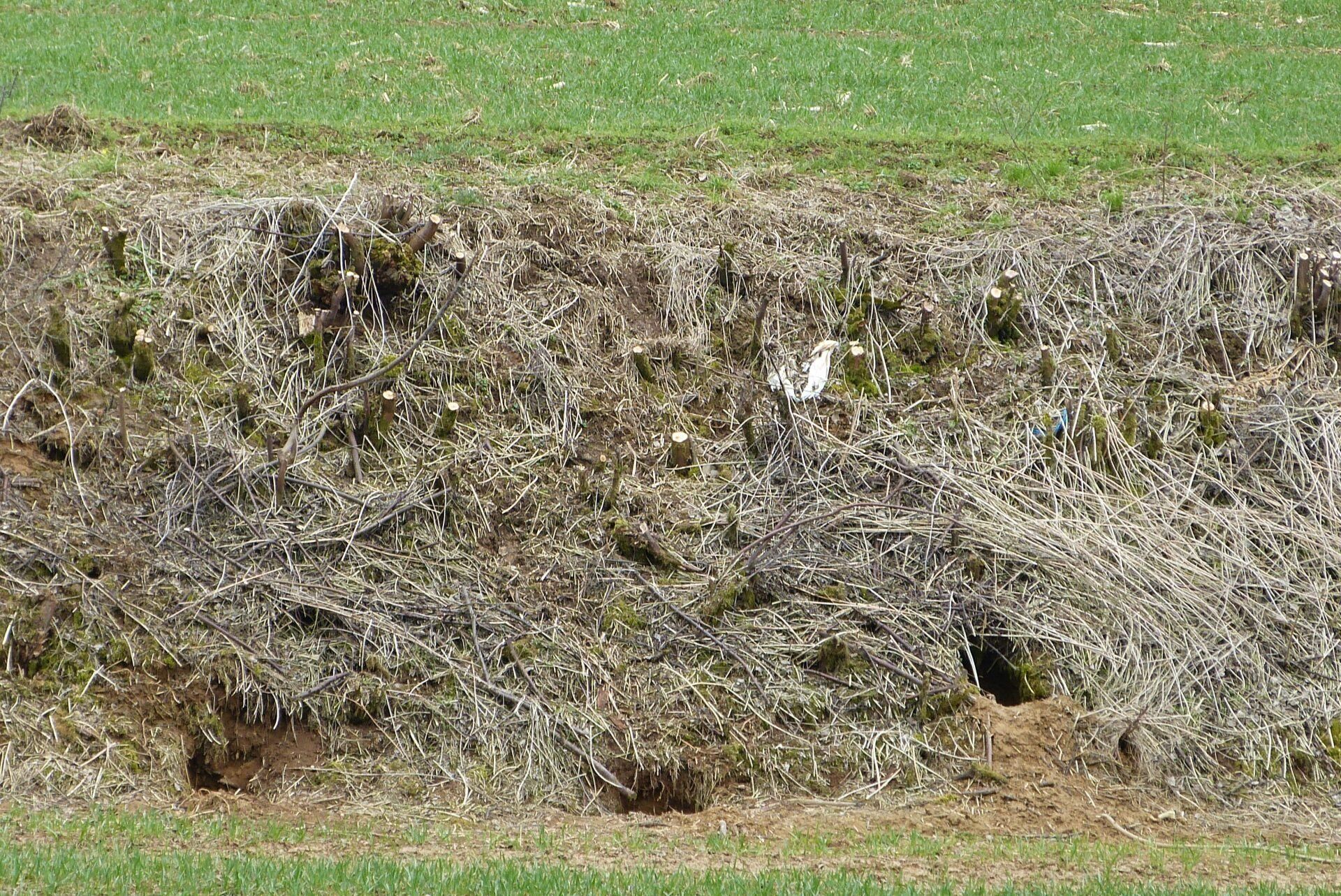Oben,im Hintergrund der Hang der Rabenkrähen,der Rehe,der Füchse und der Menge an Dachsbautenöffnungen.In diesem Hang ruhen sich die Rehe gerne aus.