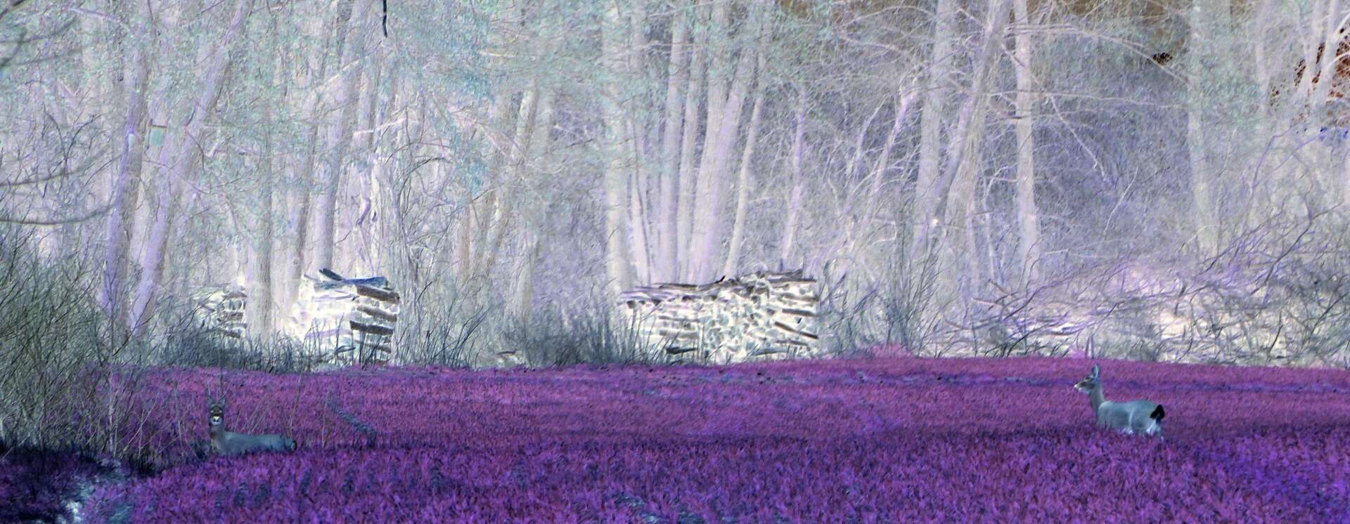 アナグマ、キツネ、鹿の斜面とカラスの鳴き声。
