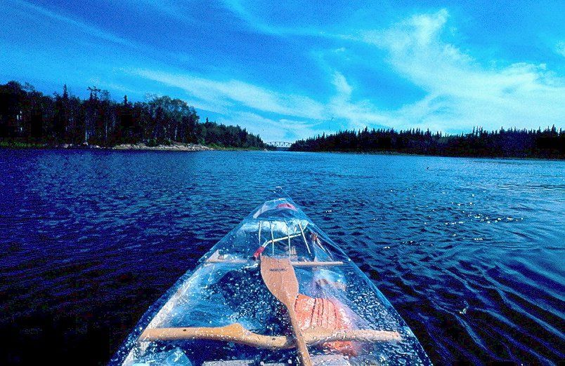 Dann das Kanu, Mensch, sah das Lädiert aus. Ich beklebte es erst mal wieder als ich auf der anderen Portagenseite ankam. Etwas später, ich paddelte Barfuss, kam auch die Sonne wieder hervor. Dann die nächsten Fälle Twinnfalls, auch da musste geschleppt werden, als ich dort ankam, legten auch einige andere Kanus an, kräftige Männer, sie sahen in was für einer Verfassung ich war, das war nicht die Verfassung die sich Demokraten gerne geben auch wenn sie noch Raubmenschen geblieben sind - und aus der daraus folgenden Logik müsste ein jedem klar sein was die Menschliche Gesellschaft vorerst noch zu erwarten hat in Bezug zu wirklichem Recht und wirklicher Demokratie und wirklicher Verfassung. Einer der großen Fleischmänner trug mein Kanu. Ich war diesem kräftigen Kanadier sehr Dankbar.