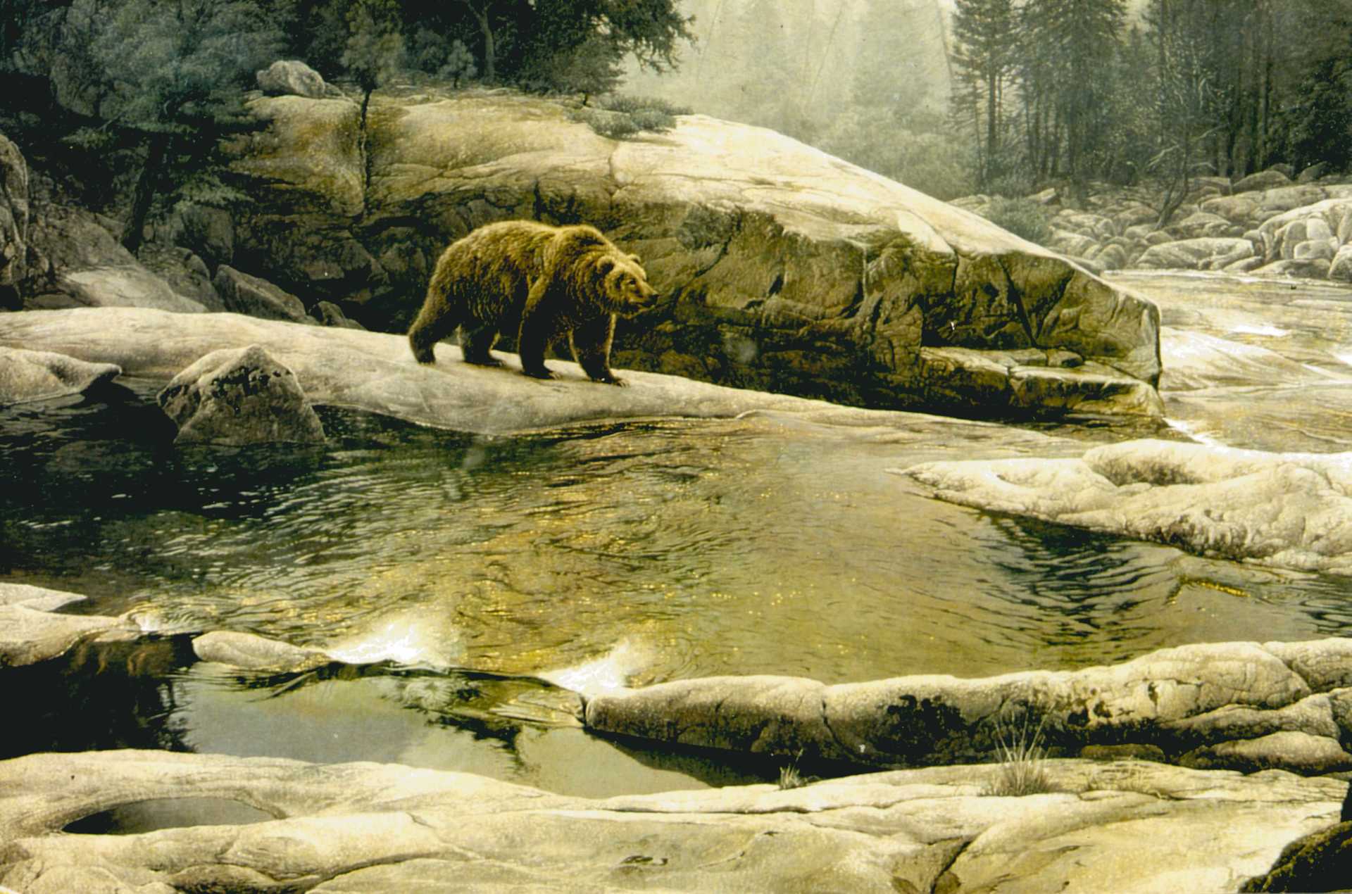 Ein zimtroter Schwarzbär kam aus dem Weidenufer hervor. Er war riesig für einen Schwarzbären. Ein Weibchen, eine Mutter, neben ihr ein winziges junges, ganz schwarzes Bärchen. Die Mutter schaute zu mir herüber. Ich genoss die Situation. Was würde sie tun.