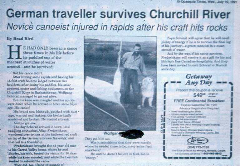 Der obige Brad Bird würde dann später diesen Artikel über meine Churchill River Karambolage schreiben,aber Ich würde ihn dazu inspirieren,ein Jahar später seine Journalisten Tätigkeit in The Pas aufzugeben und eine Kanureise von The Pas runter Bis zum Golf von Mexiko zu machen.Auf den großen Flüssen Nordamerikas.Auf den großen Flüssen Nordamerikas.Mississippis Krokodile anlächeln oder so etwas ähnliches …………..