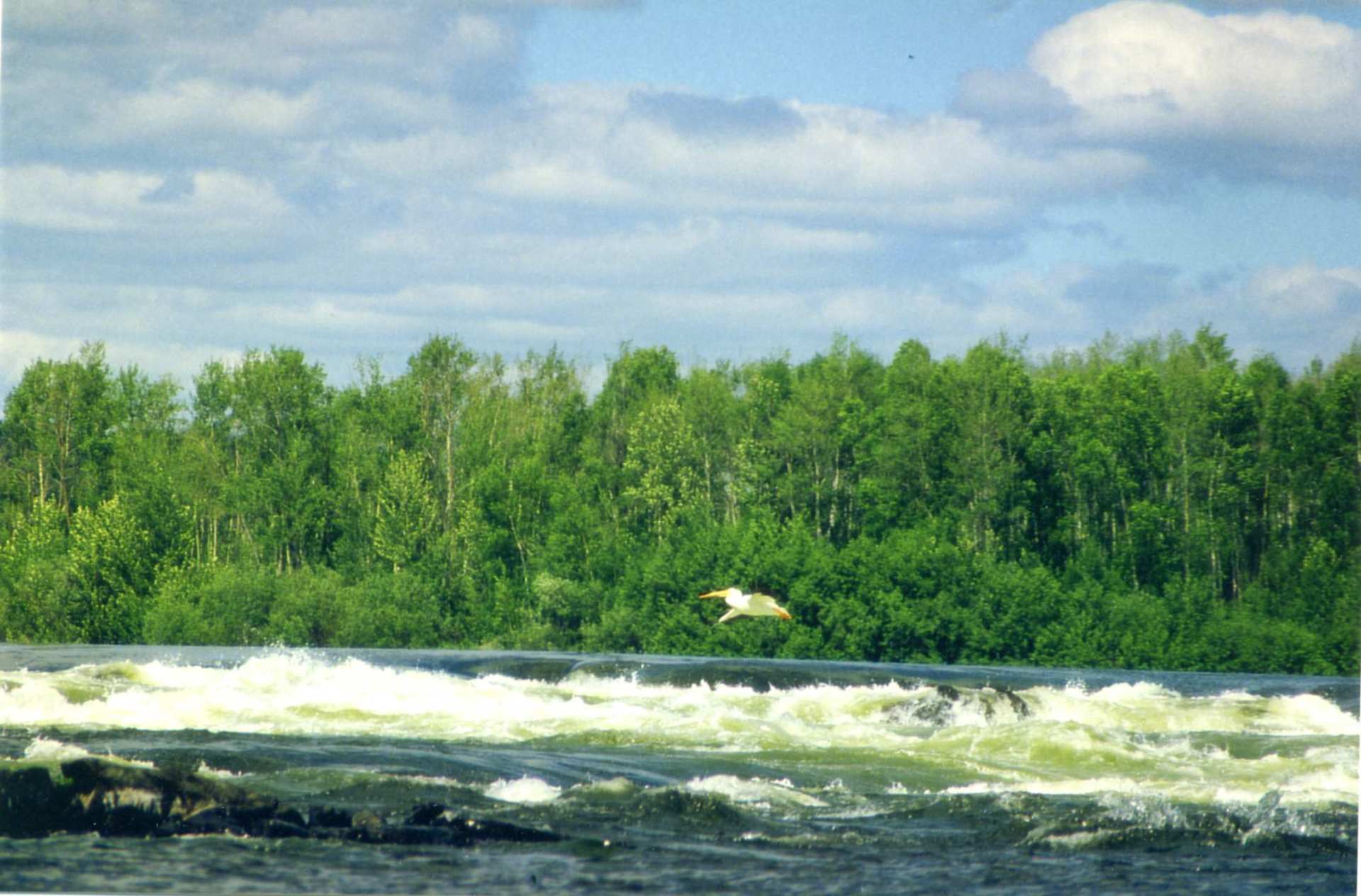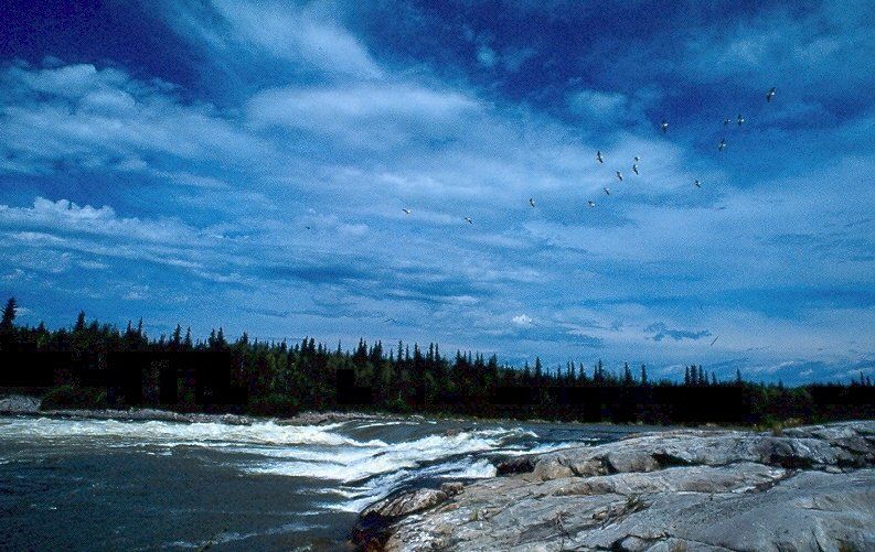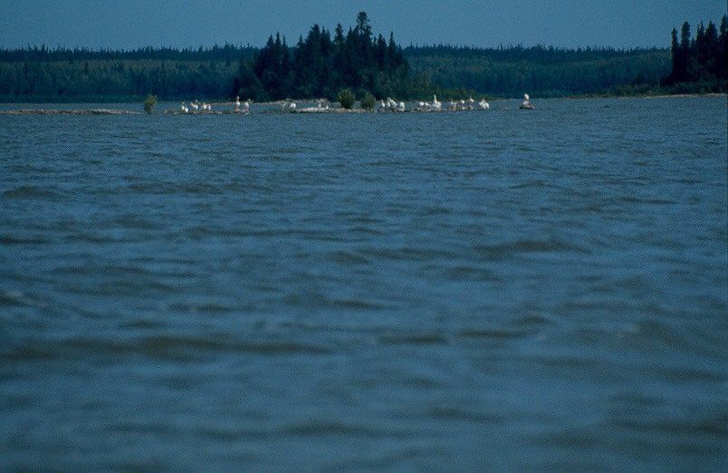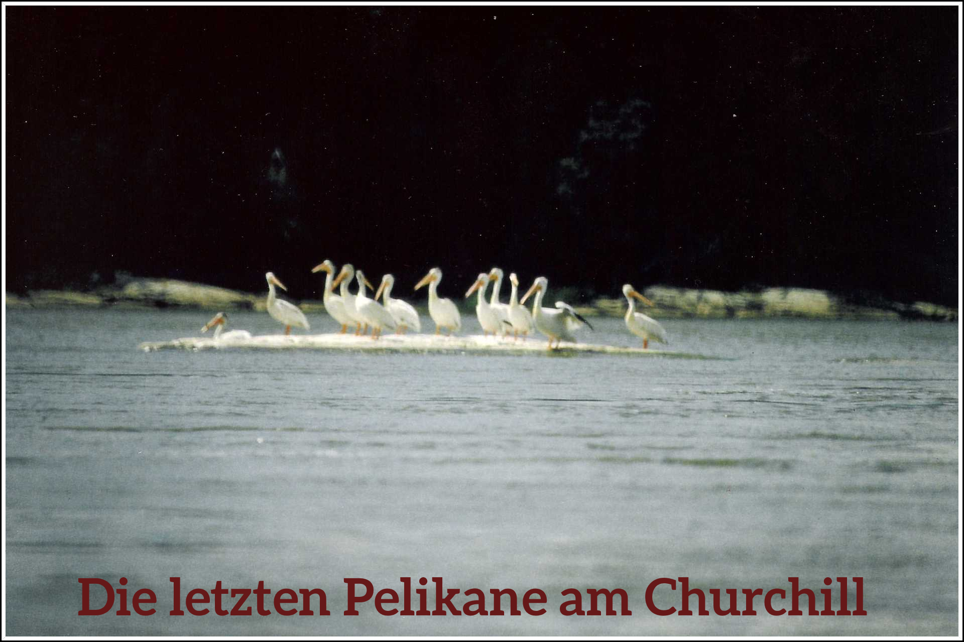 Das waren die letzten Pelikane am Churchill River die östlichste Verbreitung, die Twin Falls. Sehr gefährliches Gefälle wegen der unerwarteten GigaStrudel die sich plötzlich öffneten, und mich einmal fast reinsaugten mit einem Durchmesser 2x den Durchmesser meines Kanus also über 10 Meter.