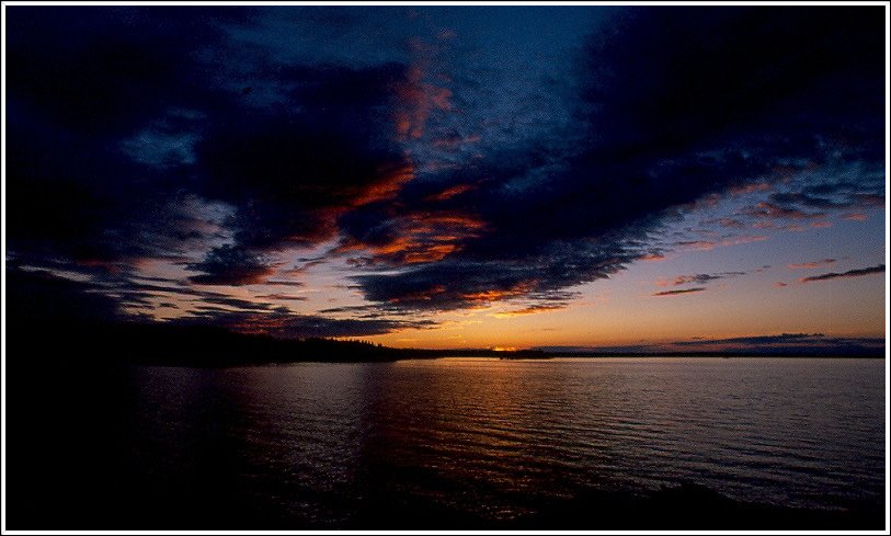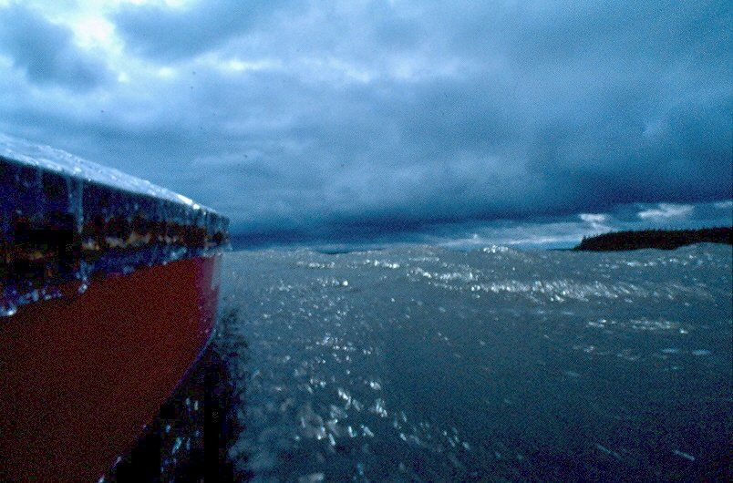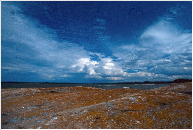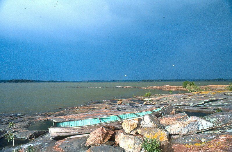 Ich bin auf dem Granville See und nenne die Insel die Möweninsel denn es wimmelt hier von Möwen mit ihren Jungen und vielen Graureihern die auch in den Baumwipfeln nisten und Nachwuchs haben und ich bin Störenfried nicht Sigurd ,nein,Störenfried. Und alle JungMöwen flüchten zur nächsten Insel , paddelnd,während ihre Eltern Angriffe fliegen gegen mich.Und diese MonsterDunkelheit kommt näher mit Kugelblitzen und Thors HammerBlitzen.Ich bin endlich weg vom Wasser.