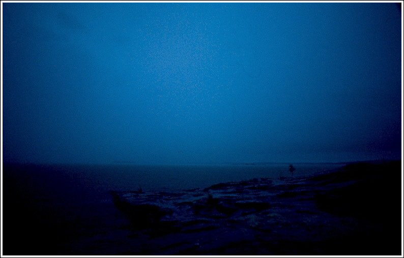 Das war der Höhepunkt der Dunkelheit und des Getöses. Ich lag manchmal flach im Zelt und dann wieder raste ich zum Waldrand und stand zwischen den Bäumen. Es war mächtig und diese Schöpfung hatte bloß mal eben gefurzt oder beim Lächeln sich verschluckt.
