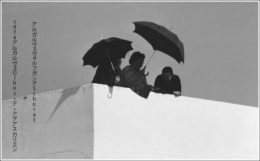 Down here close to the beach-with dark rainclouds-giving only occasional glimpses to a hot sun! Just finished my first message in a bottle to be thrown into the water by outgoing tide-message read: help-were caught in the midst of a „lisboa“ revolution-no banks are open and were out of cash, therefore i open up a new account-help the blind and don’t forget the poor! Send all donations to my parents in germany: W.Schorat (5628) Heiligenhaus Nonnenbrucherstraße 20 west-germany! Please throw bottle back into water after signing you’re name and adress-if found before Mediterranean or french Atlantic.