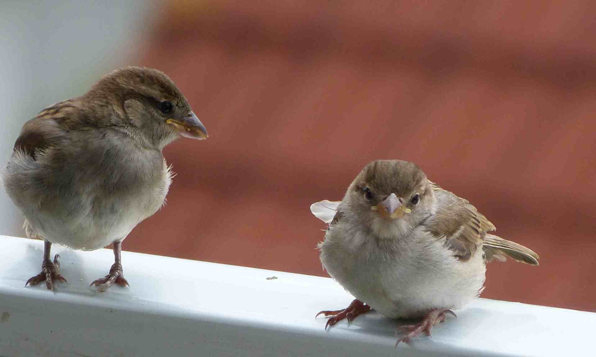 Ab und an kamen Bekannte zu ihm in sein Balkon Apartment,sagten Hallo und hielten untereinander beobachtende Ruhegespräche.Einer seiner Lieblingsplätze war der Rand des Blumenwasserbeckens.Von dort aus gab es weite Blicke in die andere Welt da hinten und da unten.Auch sein möglicher Vater schaute des öfteren vorbei,trank Wasser oder schnäbelte Sonnenblumenkerne,Weizensamen,Erdnüsse geschälte,und andere Sämereien.Auch einige andere Jungspatzen schauten vorbei, mit denen er schwatzte rein spätzisch.Aber meistens schauten sie sich bloß an.Eine Spatzenanglotzerei war es dann.