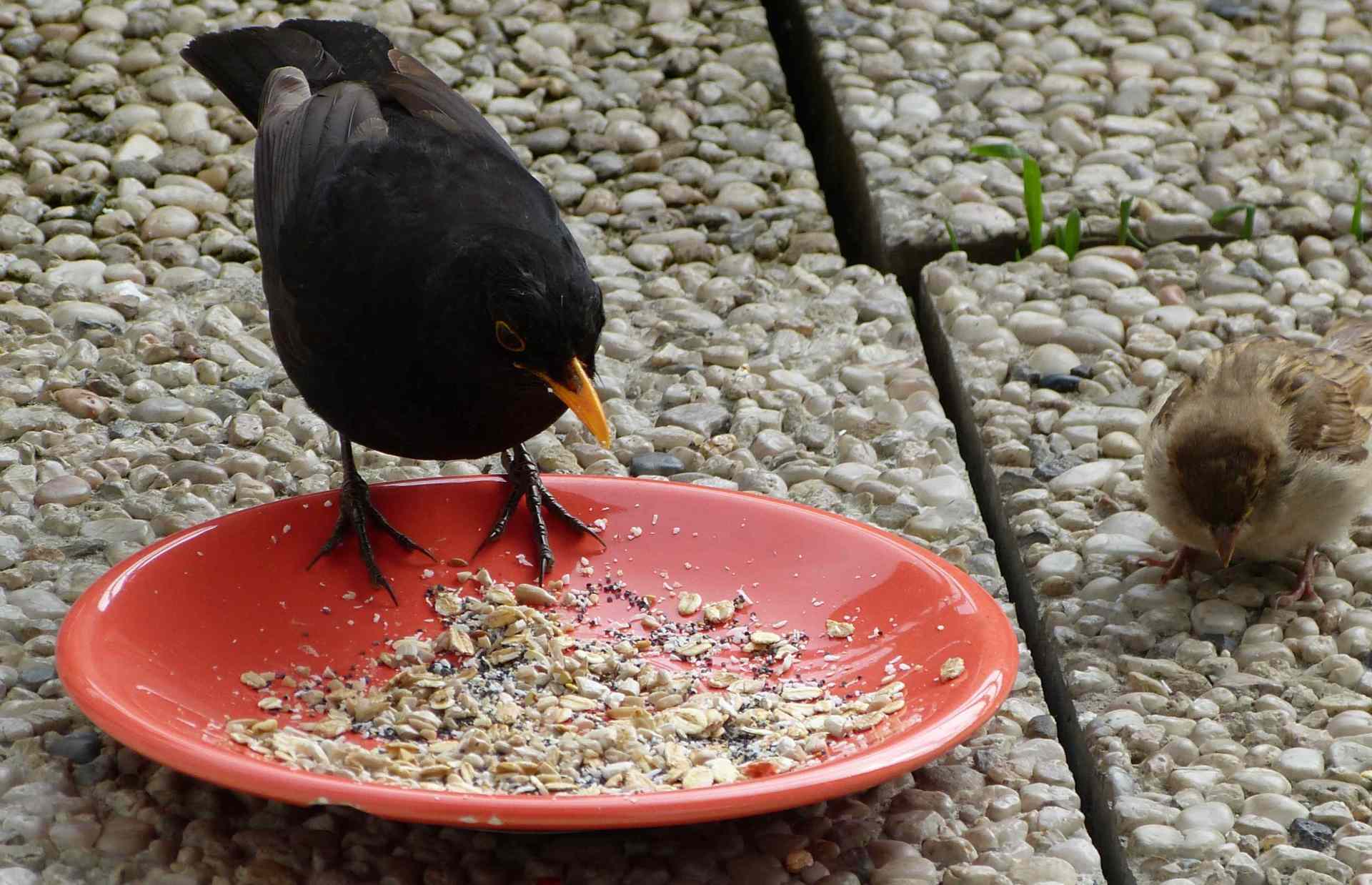 Auch wenn seine Verwandtschaft zum roten Teller kam und da herumpickte ,zwitscherte und lachte,dauerte es weitere Stunden bis der kleine Spatz endlich erkannte das es so nicht weiter gehen kann und wohl ein KörnerGeistesBlitz ließ ihn dann erstaunt zuschauen was diese anderen denn da nun wirklich machten und er verstand da gibt es Futterrettung und er pickte langsam