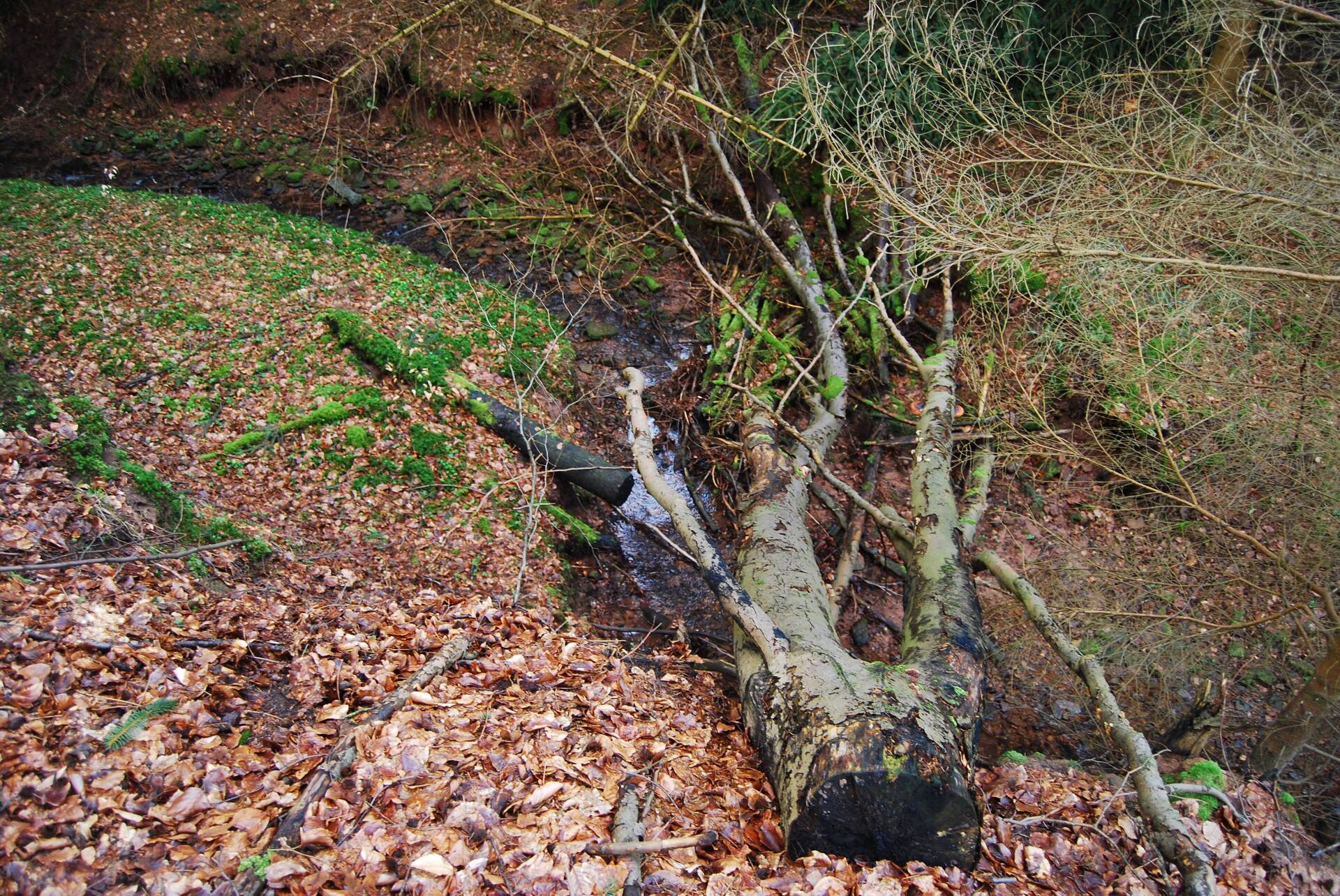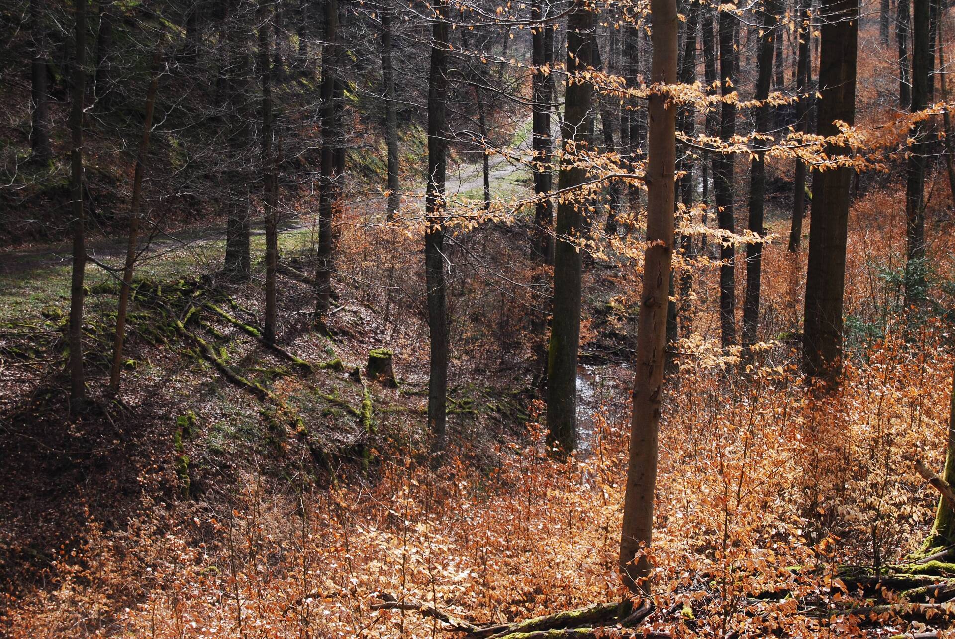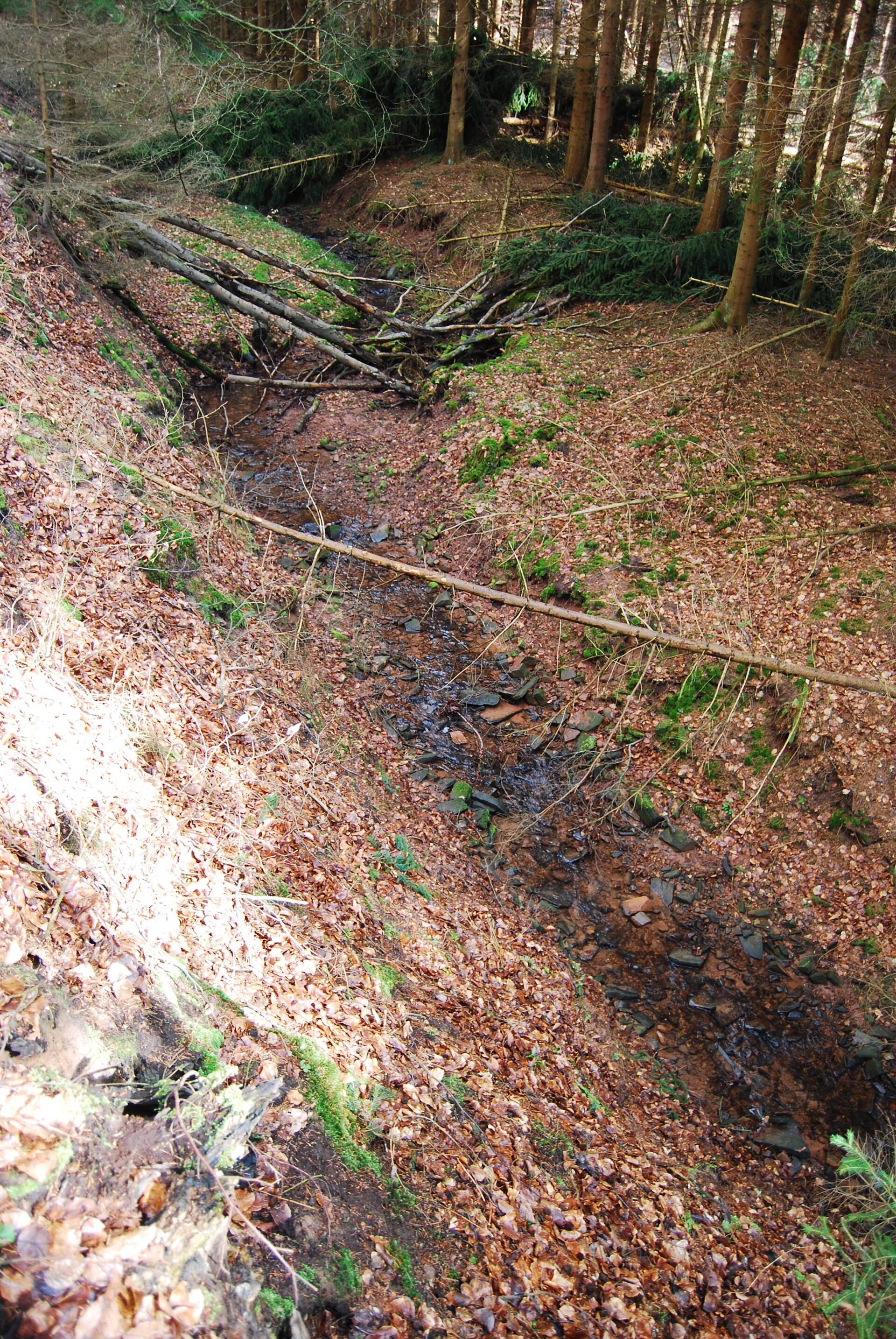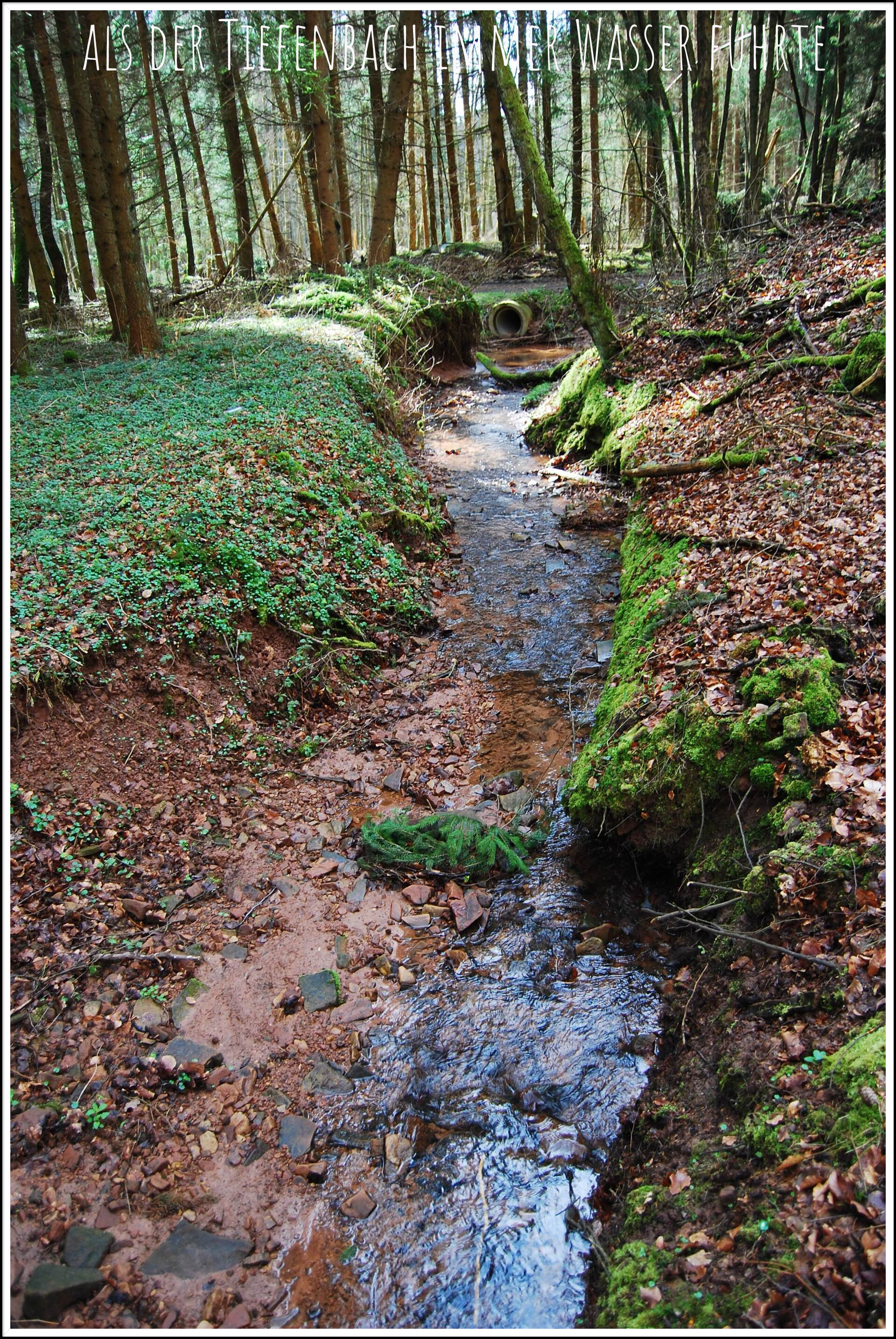 Der Tiefenbach, wenn er nun nochmal fließt,fließt er durch Buchenwald.