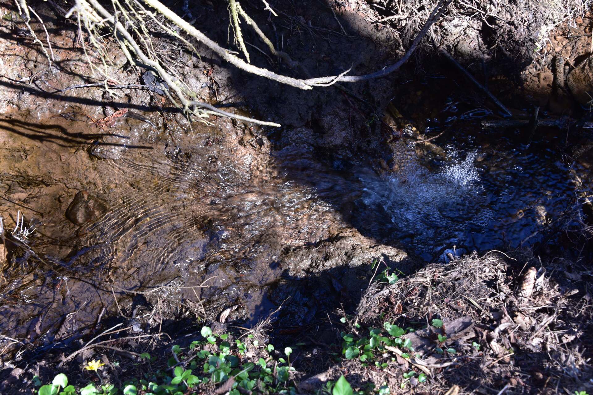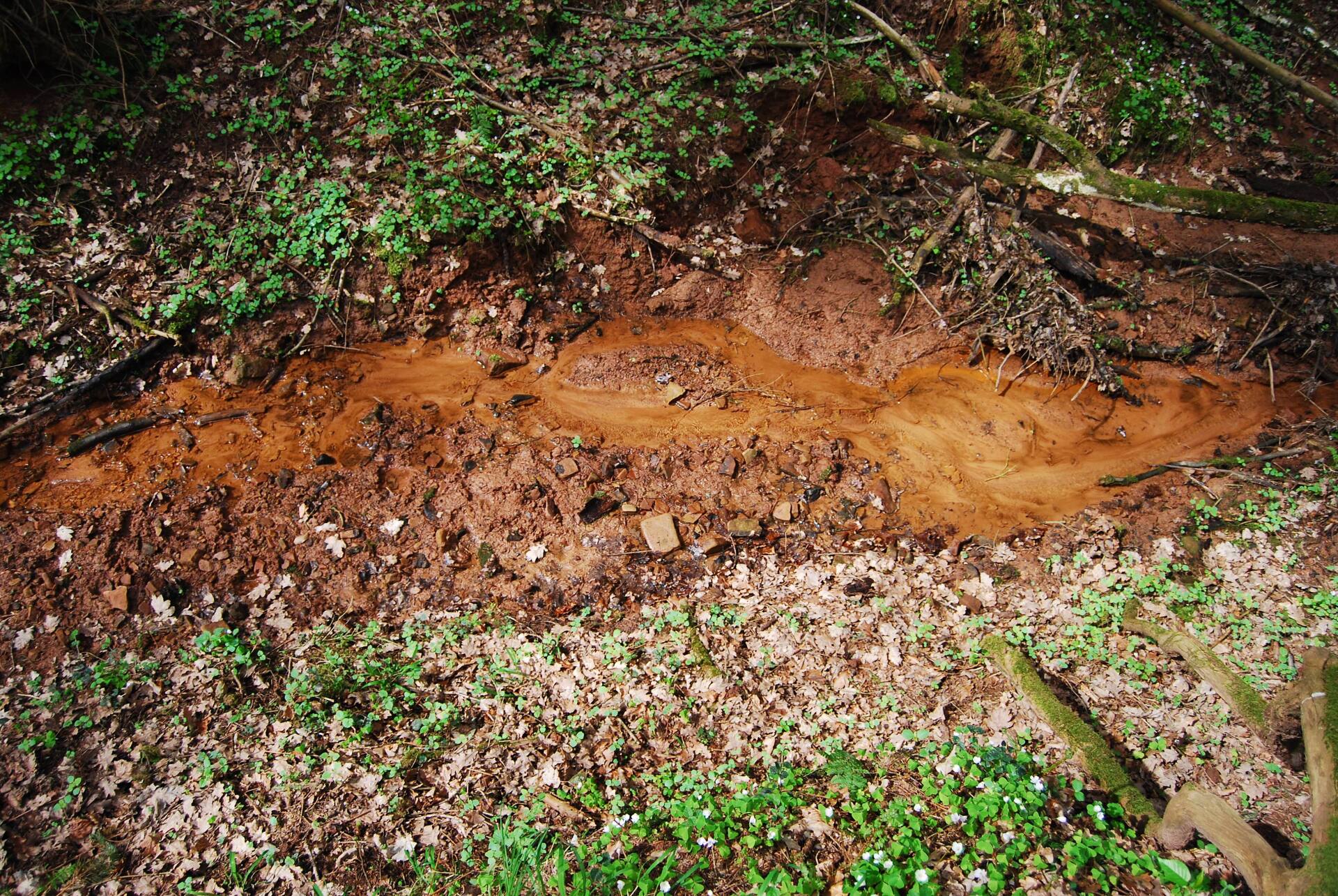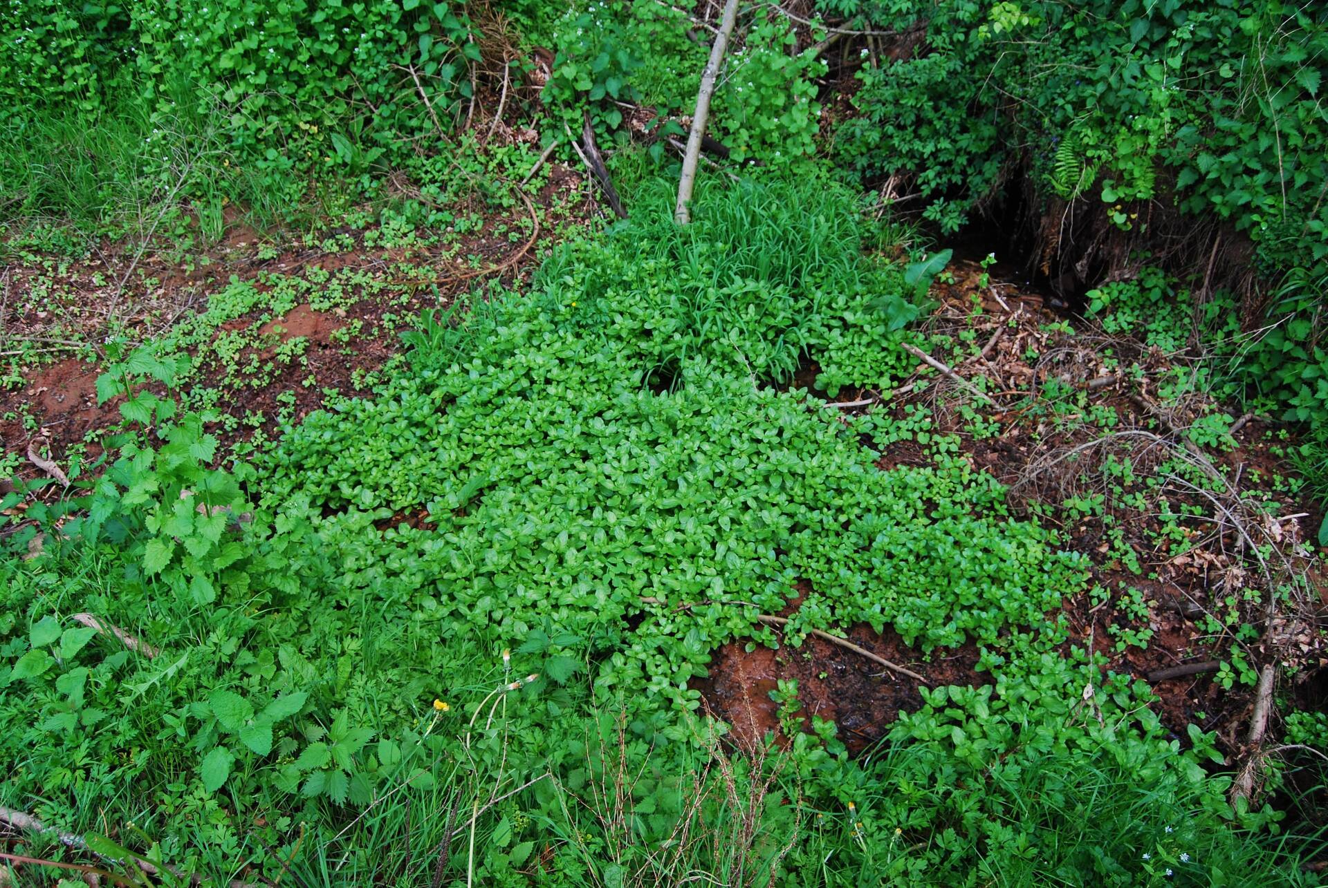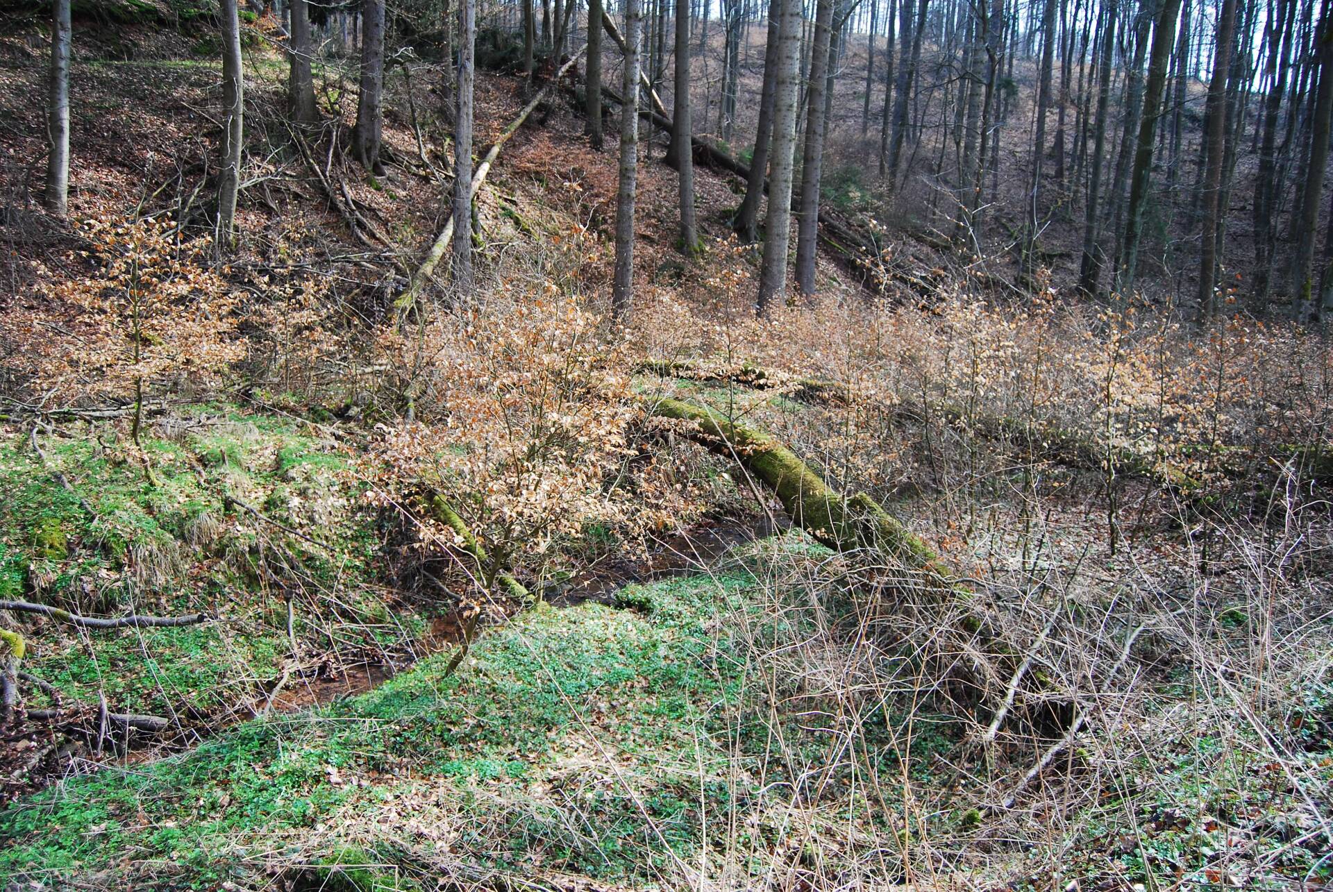 Foto unten NONameBach wiedererscheinen und Fortführung zu einem weiteren Sumpfgebiet in dem auch Feuersalamander wohnen.Der NONameBach führt dann weiter zu den Berghängen wo er die Hänge entwässert