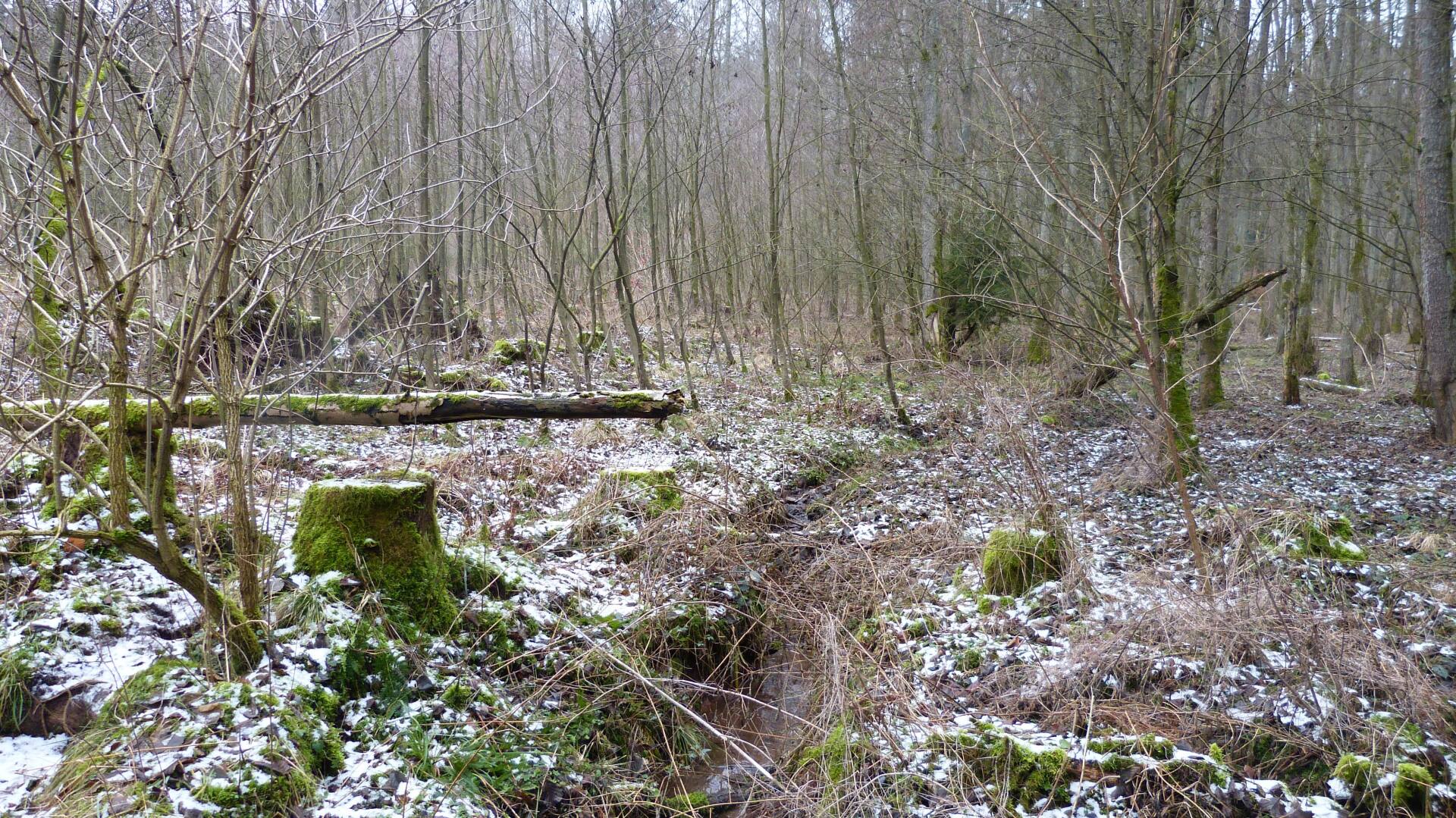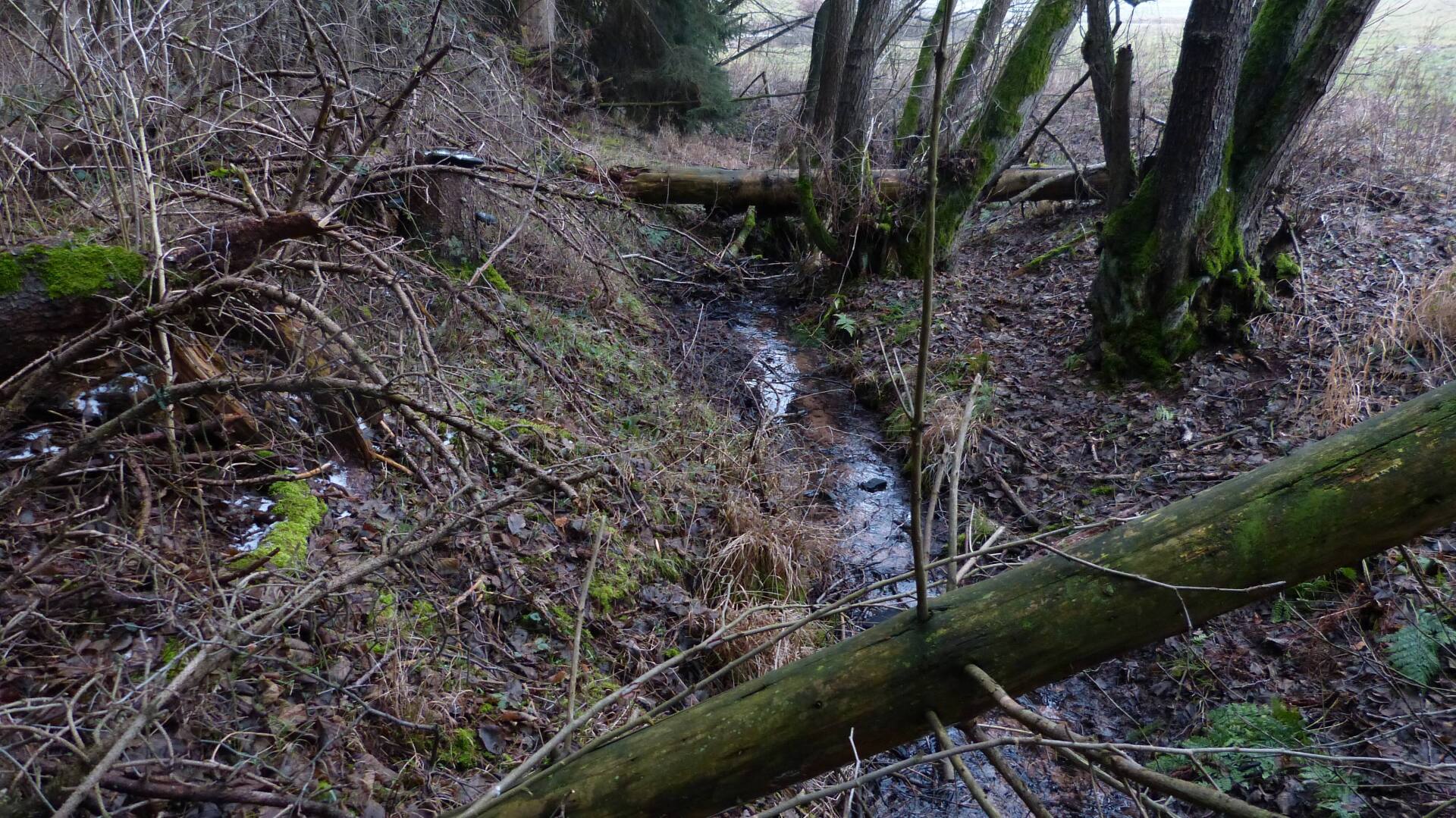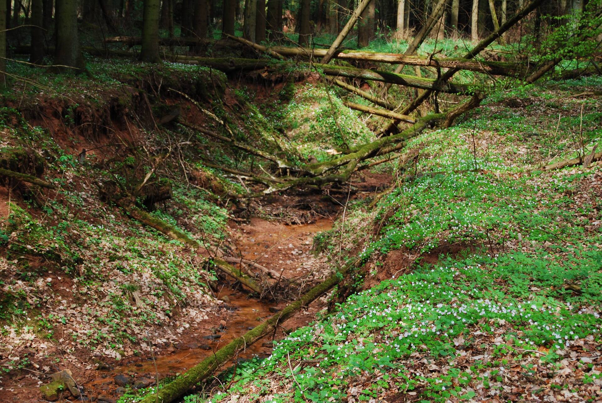 Hier geht es später weiter den Tiefenbach hoch bis zu seiner Entwässerungsquelle in der Schnitzer Eiche Gegend