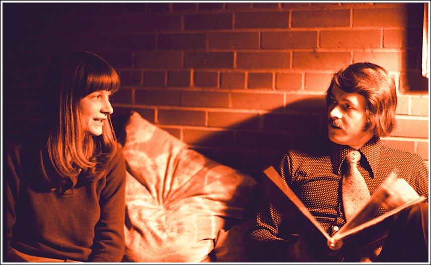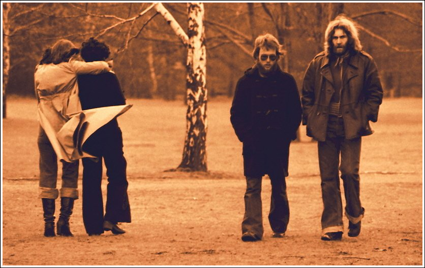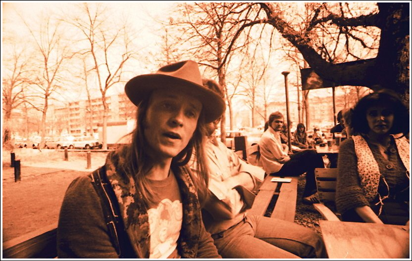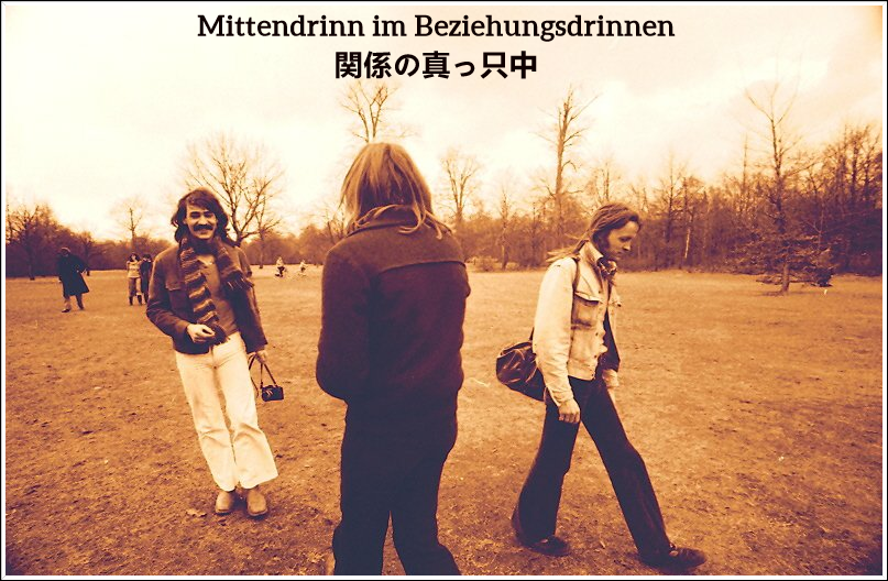 Im November 1975 noch mit den „Dreien“ in Kontakt Manni, Michael, Anette, die ja drei Türen weiter auf der Holsteinischen Straße wohnten, da schrieb ich weiter im Tagebuch: I’m not to pleased with the progress of us people, entangled in our own unimportant imagination’s, me still not accepting the realities of my thoughts, or are they scaring the naturality out of me, unable to relax, unable to cope with my own feelings, unable to express these feelings to myself, far away from expressing anything to others (Ich war damals wohl total overloaded mit der Situation es war ein Schrottschlotterzusammenbruch meiner bisherigen Glaubensstrukturen) is there a cure for the triangle blues, yes, action-inaction.