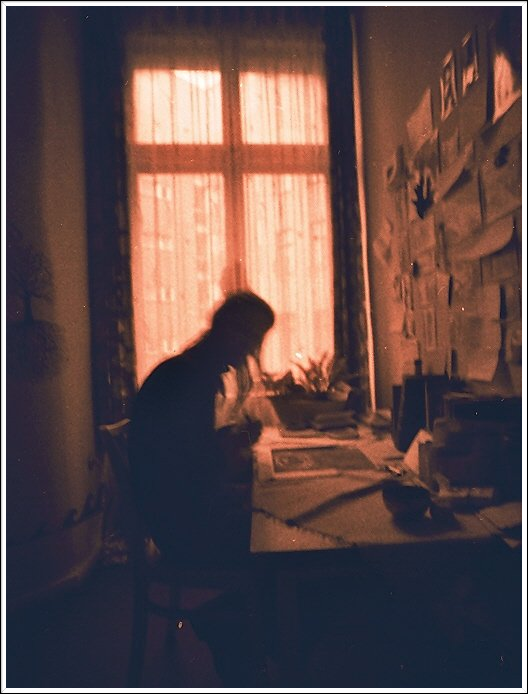 Ja es war eine mentale verrückte Zeit damals da für mich. Weil alles zerbrach und ich selbst zum vorschein kommen wollte und nicht diese Jahrmillionen Gewohnheiten Gewohnheiten Gewohnheiten in allem. Es gibt große Mengen an Tagebücher die hier herumliegen aus denen ich mich nun bediene. In diesem vom November 1975 gab es nur den Tages Eintrag vom 13 November und dann folgen seitenlange Monologe und Beschreibungen ja es war eine interessante UhrZeit damals da in WestBerlin von 1975 bis 1982.