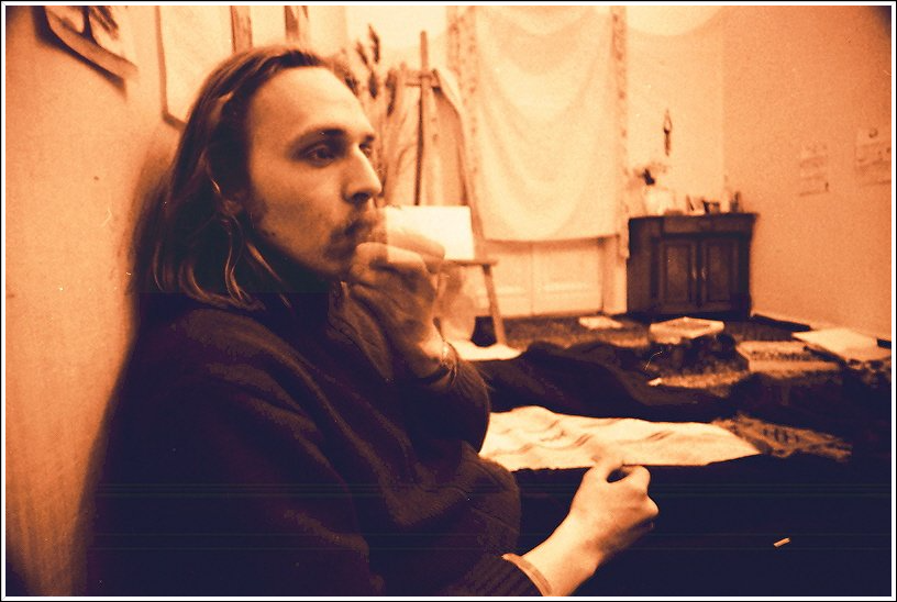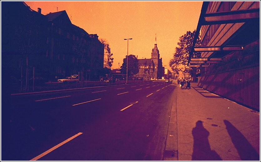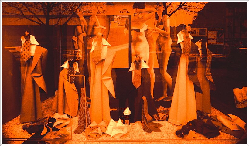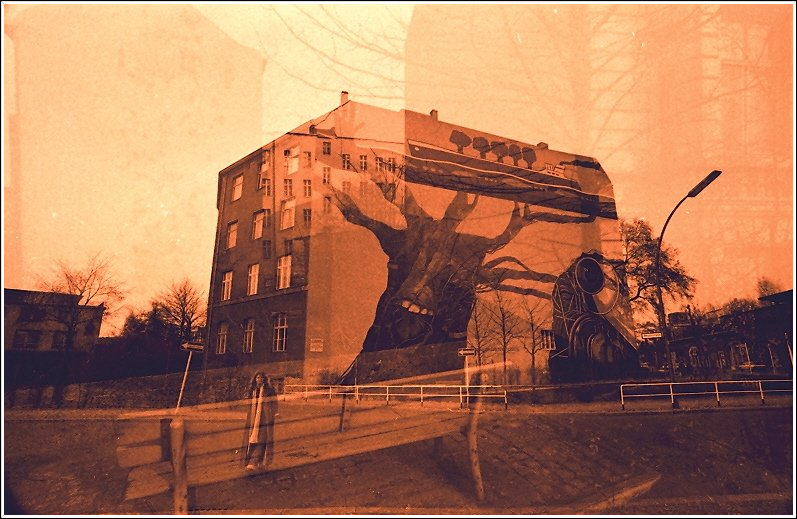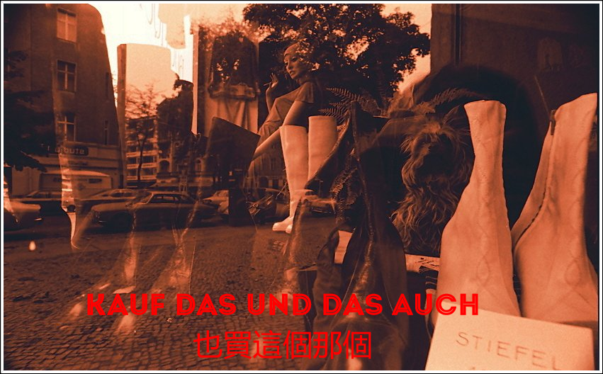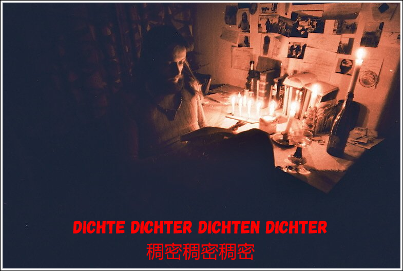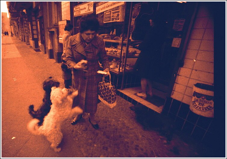 But just a short while ago, us two going to reichelts shopping wino and kassler, paying with the correct chance, turning around facing the way out, facing Michael’s rearview, where I kept slightly hidden, Fran beeeing undecided in what to do, going outside where the red light waiting time got as close to him, she feeling a strong surge of weakness coming up, dreaming her life face, squirming in desolation confusion, not knowing, its all in your head I whispered into her ear, while the light changes to green, and Michael walks across the street into an Tabaco store, and we follow the path also, walking, waiting in front of the fish store starring into life’s carps fungus eyes, all the time I was having a reaction of weakness also, but that was quickly overcome bye realizing where I stand, and now Fran asked me again, but strangely first, do it again, what, do what again, say again what you just told me, its all in you’re head Fran, and there was fire somewhere, preparing, waiting for Michael to come past us, cause he had to, and so it happened, his head popped betweeen our two heads now, hi—howdy—looking into frans eyes, he asked her how she was---and that she felt like a bummer was part of her answer, a short decisive moment, icy expressions, and both embraced and kissed kissable areas on the kissing body, realizing a strong vibe, and I felt this with my vision brainsensorexistence!