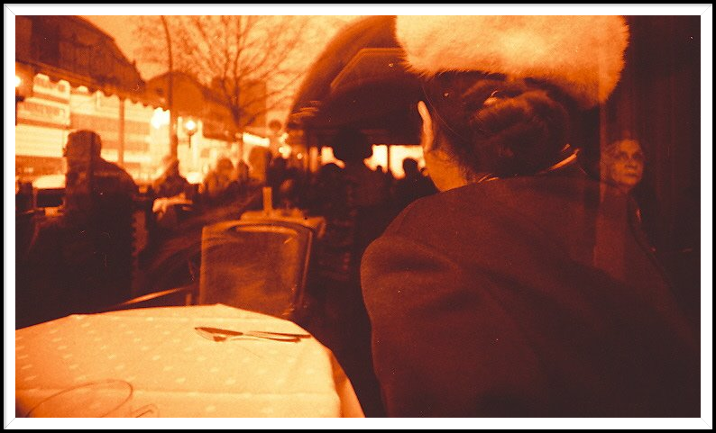 Last night after Manni left and Fran and myself drove off to see “Do it again Sam” and then after the movie went for a drink after Fran suggested so, us two had a confrontation in the bar, about me not hooking on to Fran’s at the moment inspiring urge to overcome fear , and me answering to her positives most of the time with----no-----also she complained that I capsuled myself off into may own way of looking at her, not sharing the happiness with her, probably a side effect of some change in our own history together.