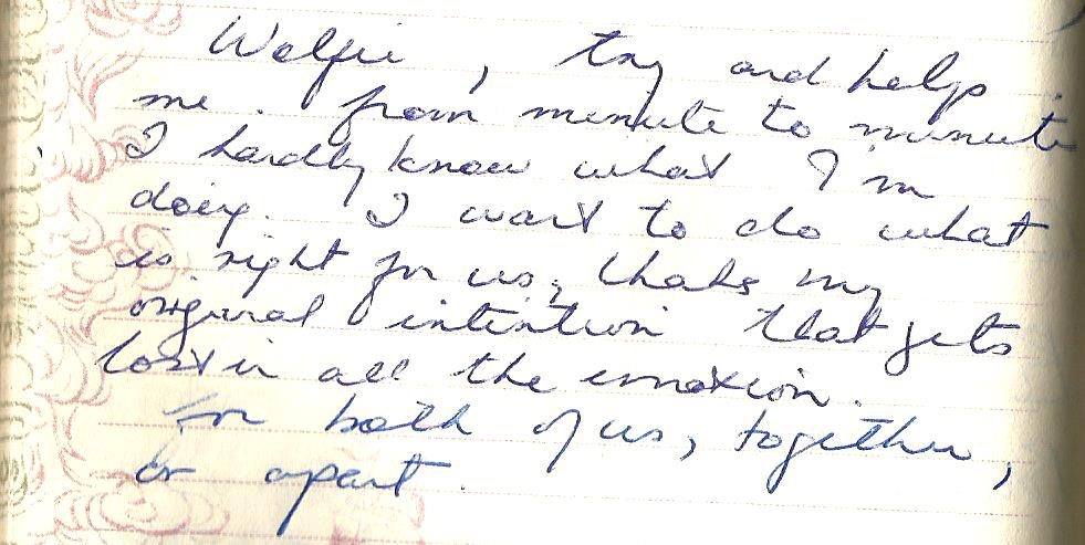 I’m wearing out Fran with ma instable cracks—me not being alone, needing a guidance approach. I’m worse then my mother, and that is doing nobody any good. I may not like the situation and ca do without fine, but I cannot in my thinking separate Fran from this situation---- so I am in the power of something else and can only follow!